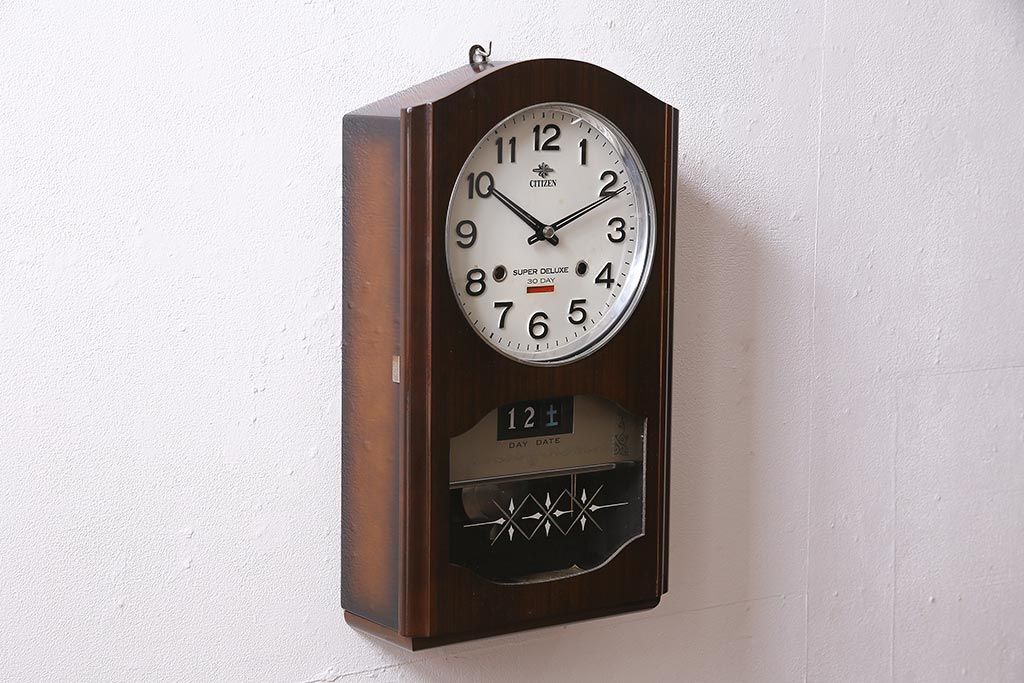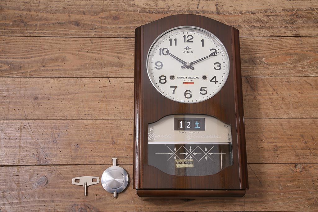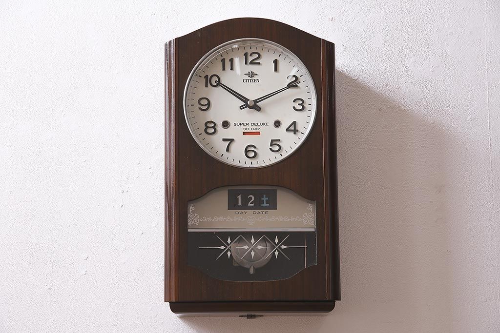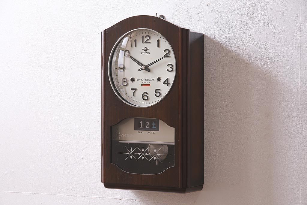 アンティーク時計 昭和初期 CITIZEN(シチズン) 30DAY カレンダー付 ゼンマイ式 レトロモダンな壁掛け時計(振り子時計、柱時計)(R-045765)