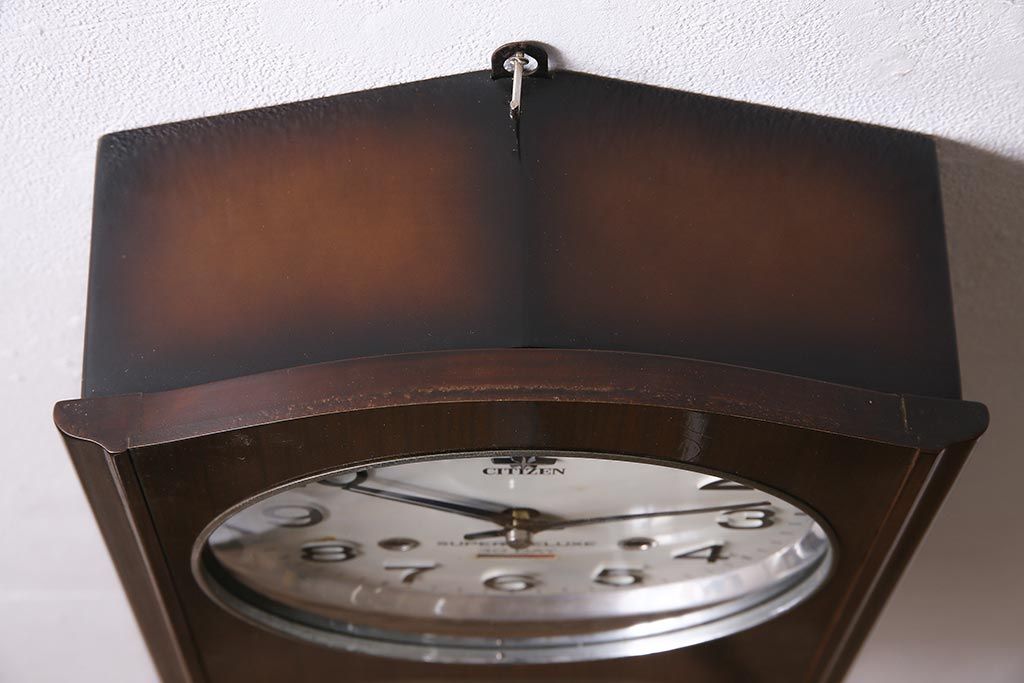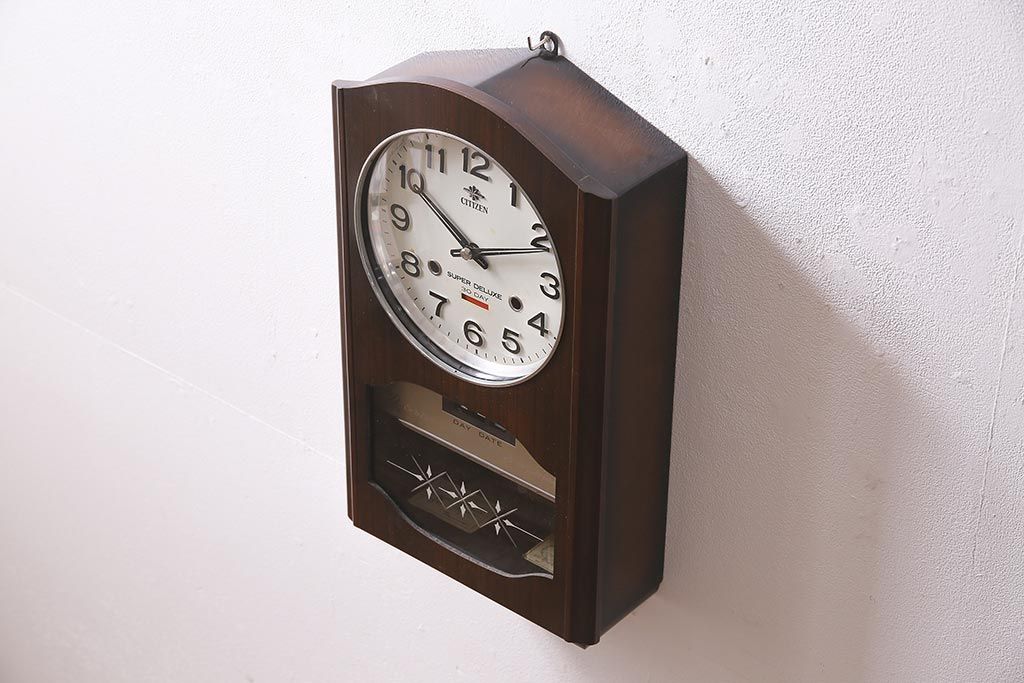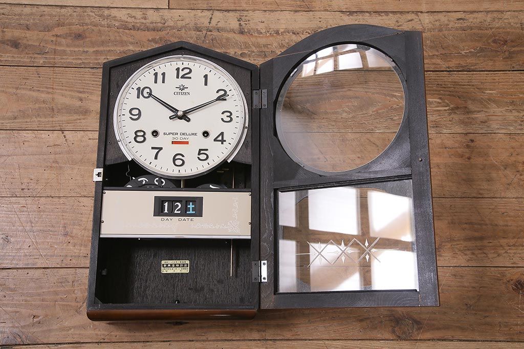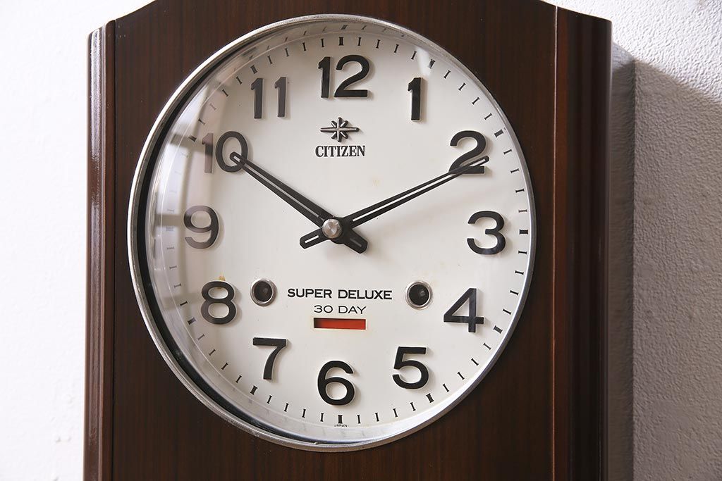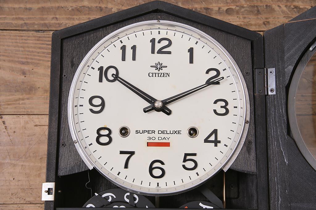 アンティーク時計 昭和初期 CITIZEN(シチズン) 30DAY カレンダー付 ゼンマイ式 レトロモダンな壁掛け時計(振り子時計、柱時計)(R-045765)