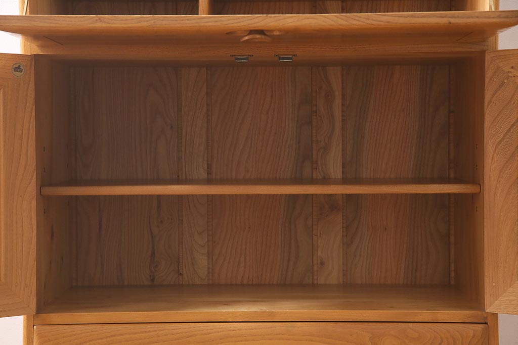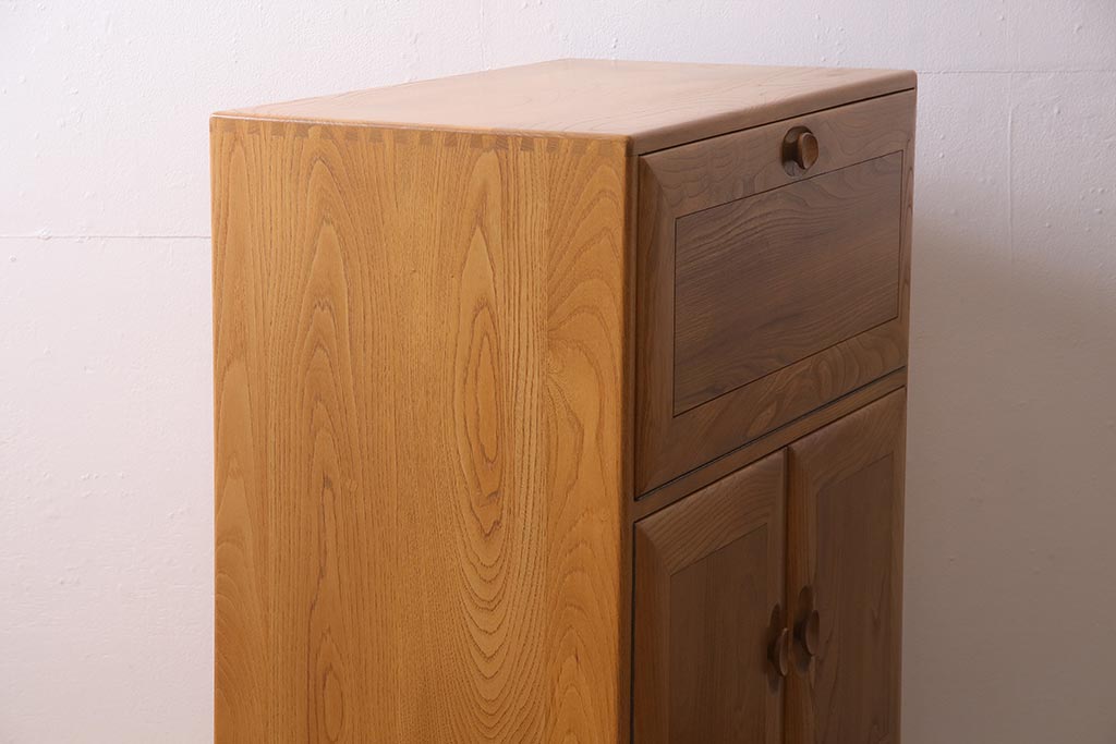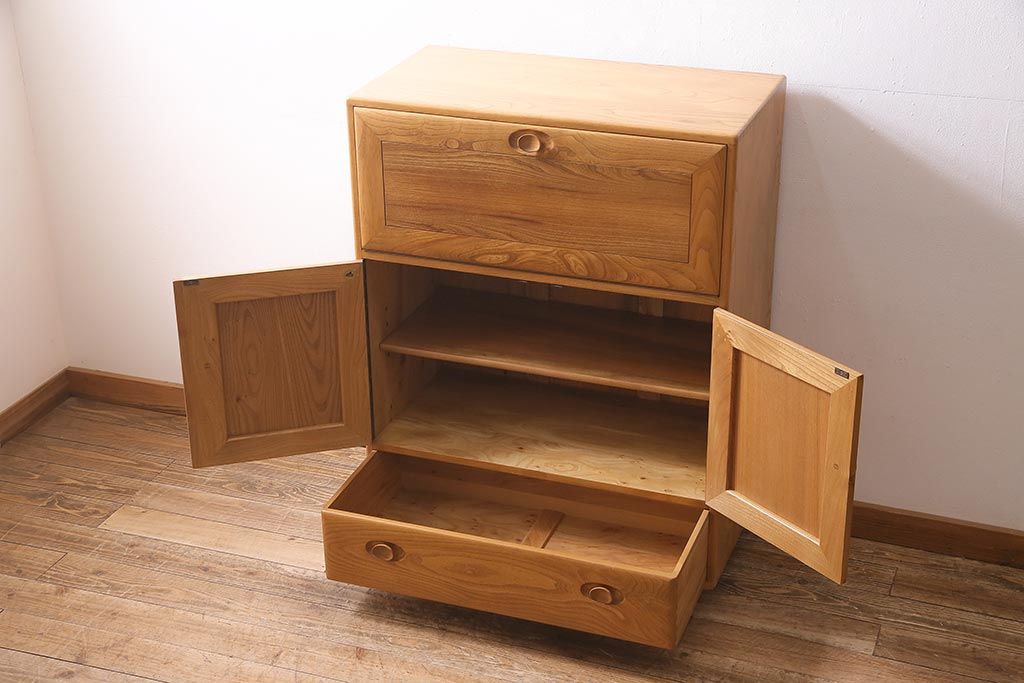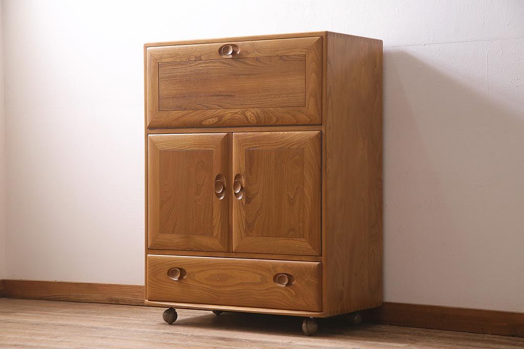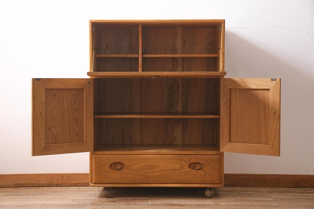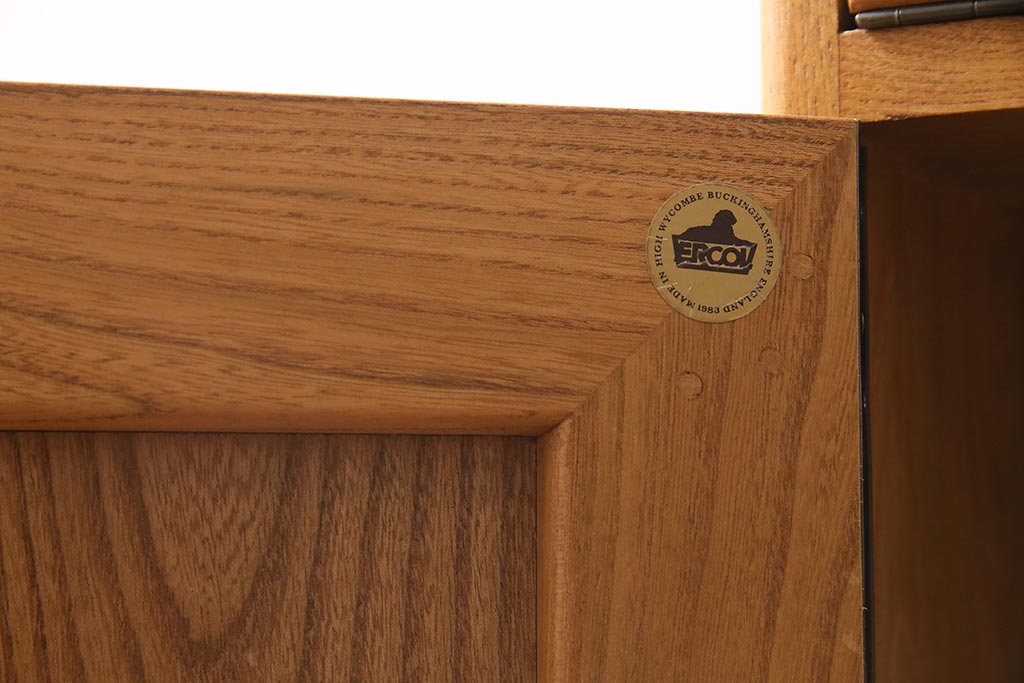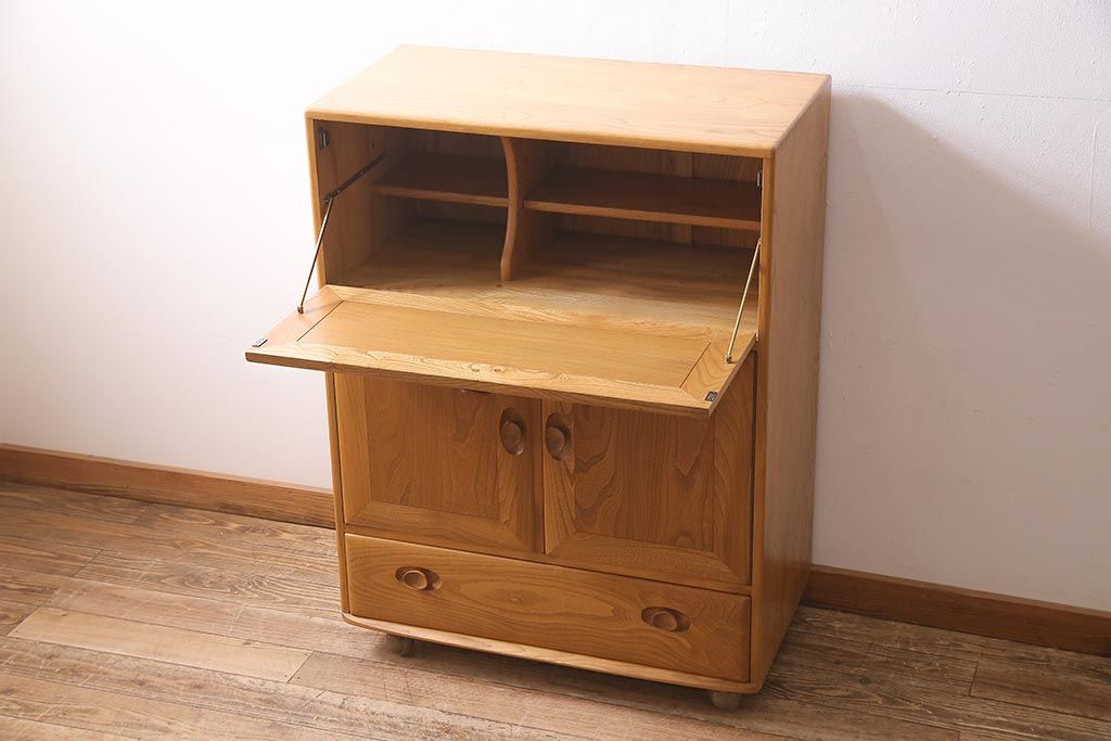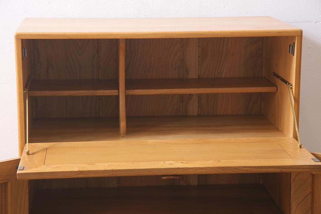 ラフジュ工房> デスク> ライティングビューロー・簿記机 > ヴィンテージ家具 イギリス家具 ERCOL(アーコール) 柔らかな雰囲気を醸し出す北欧スタイルのキャビネット(収納棚、サイドボード、戸棚、ビューロー、ビンテージ)(R-045716)
