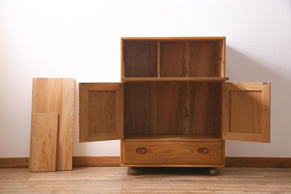 ラフジュ工房> キャビネット・戸棚> サイドキャビネット > ヴィンテージ家具 イギリス家具 ERCOL(アーコール) 柔らかな雰囲気を醸し出す北欧スタイルのキャビネット(収納棚、サイドボード、戸棚、ビューロー、ビンテージ)(R-045716)