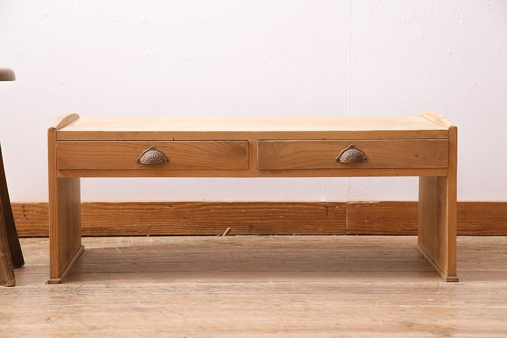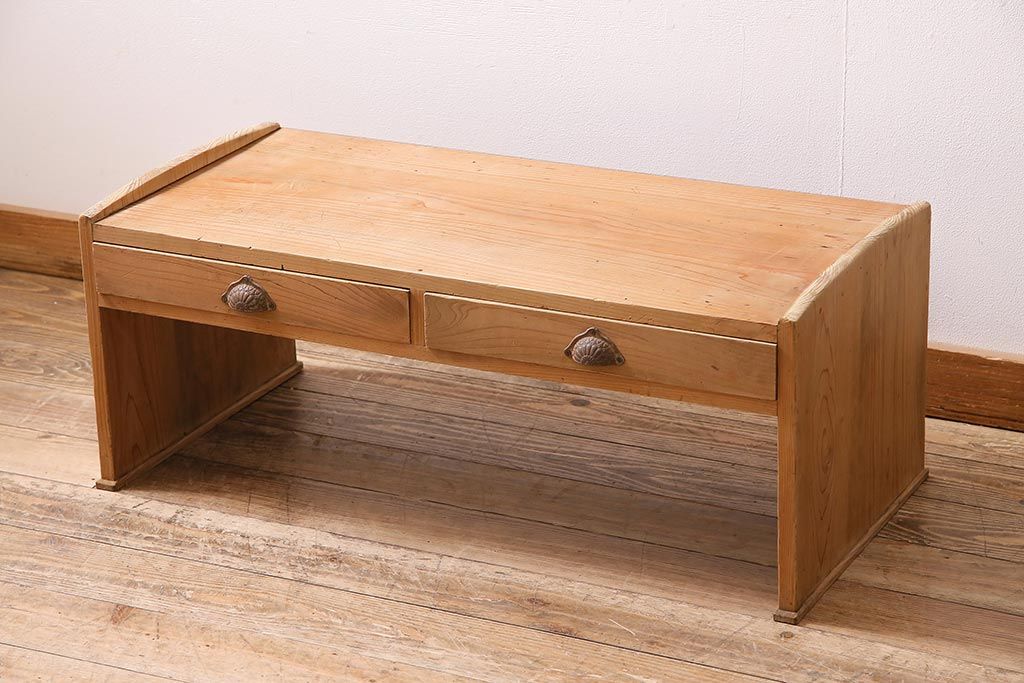ストリップド(剥離)家具 > アンティーク家具 昭和初期 ストリップド(剥離) ヒノキ材 明るい木色がさわやかな文机(ローテーブル)(R-045777)