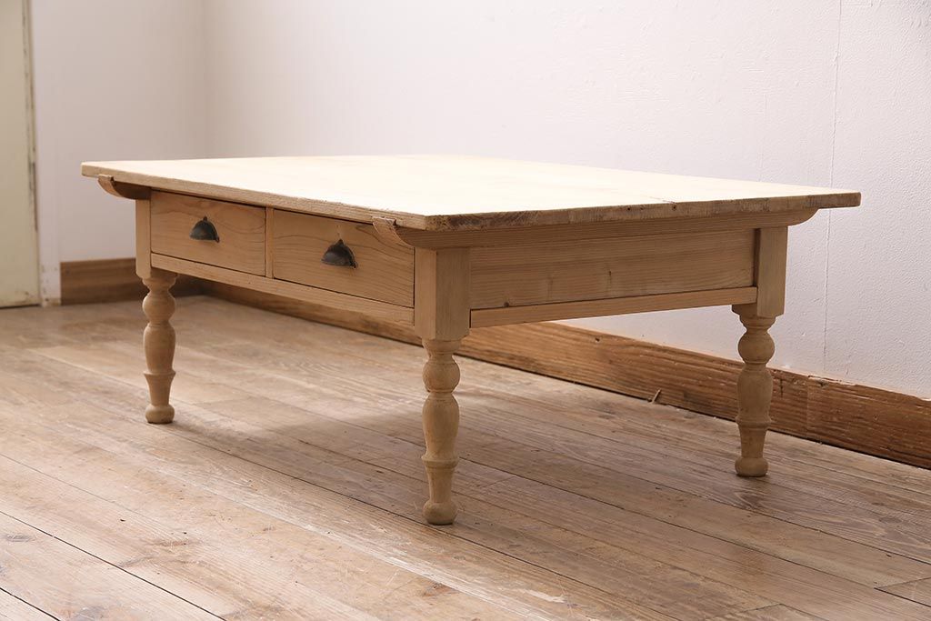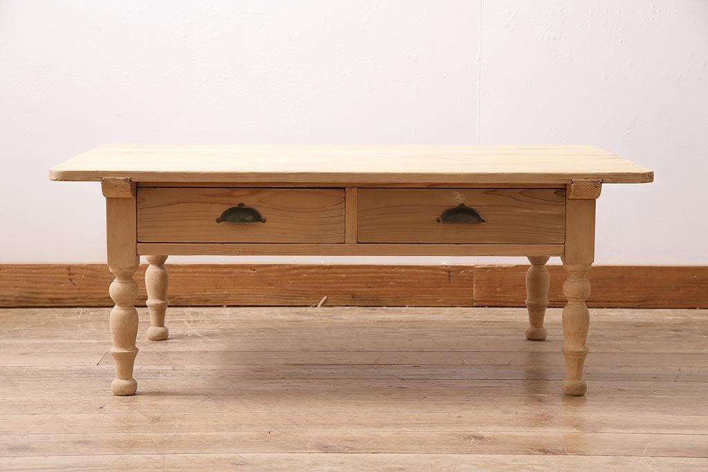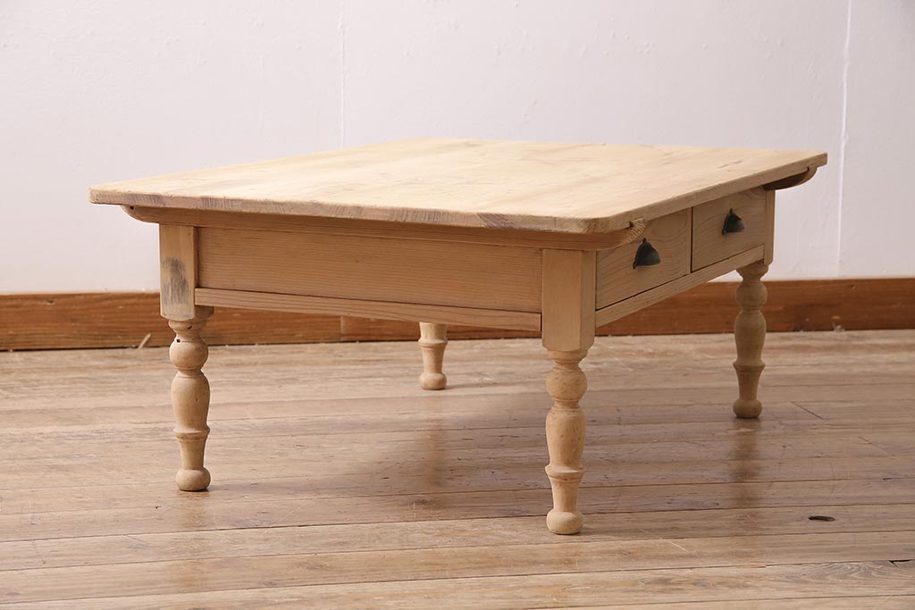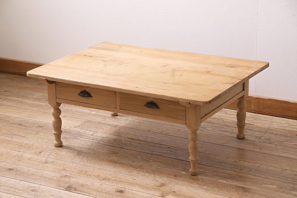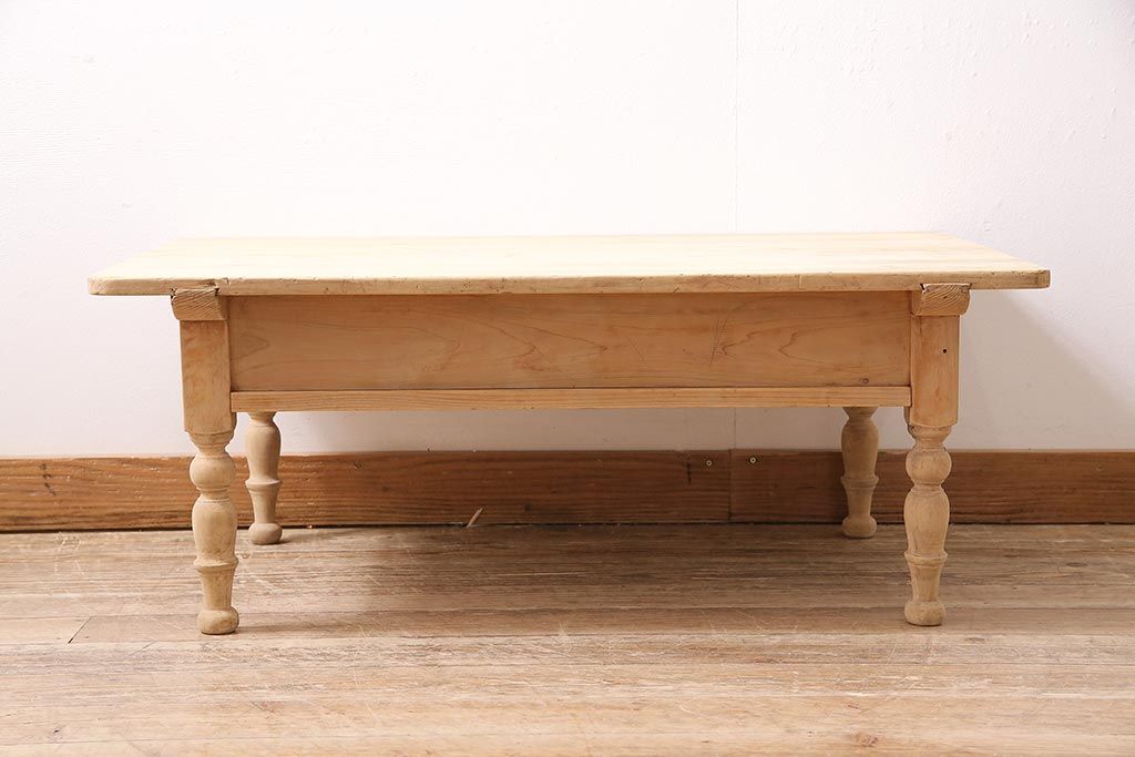 アンティーク家具 昭和初期 ストリップド(剥離) ヒノキ材 和洋折衷な文机(ローテーブル)(R-037205)