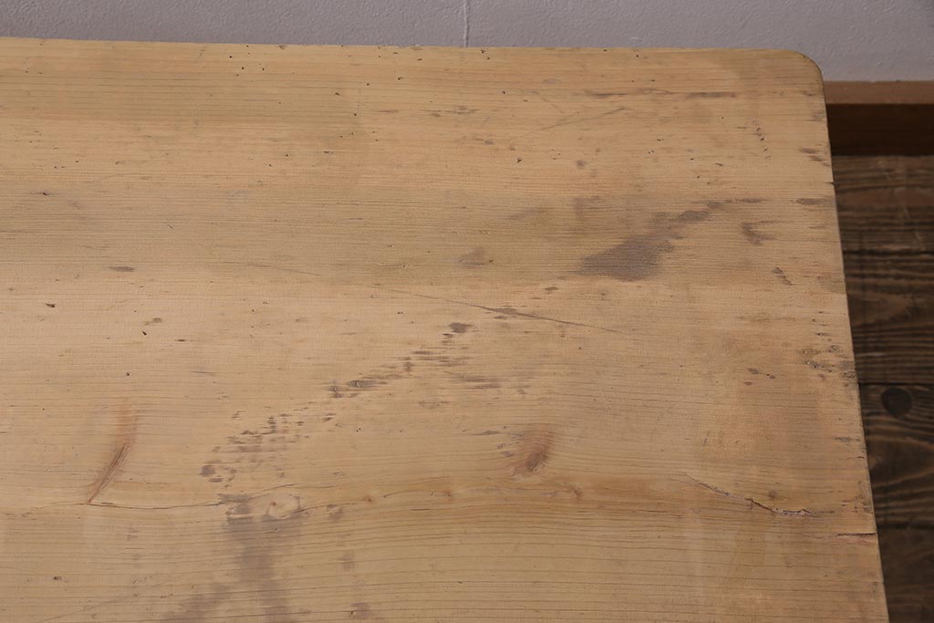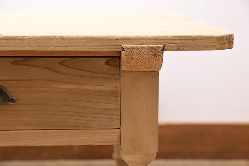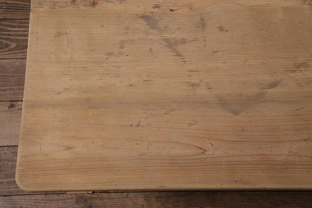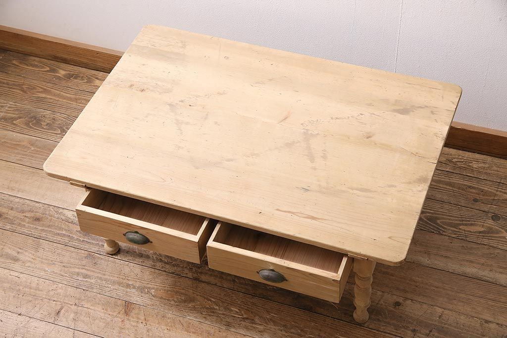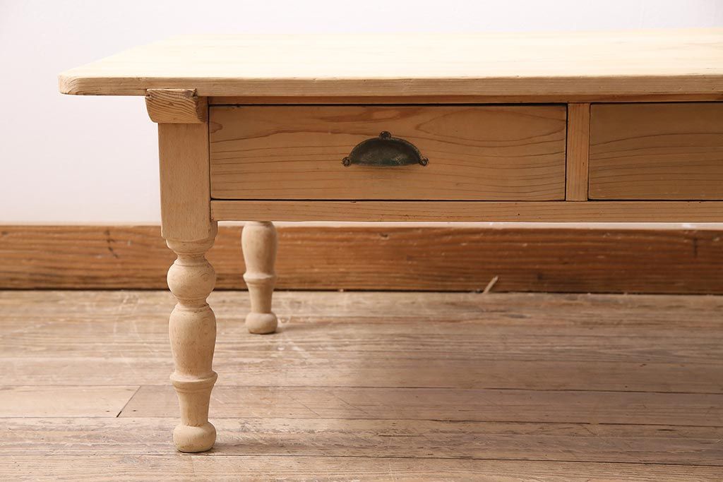 アンティーク家具 昭和初期 ストリップド(剥離) ヒノキ材 和洋折衷な文机(ローテーブル)(R-037205)