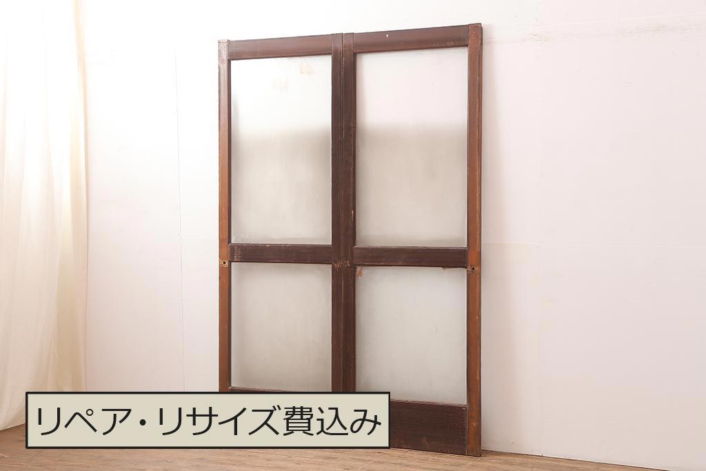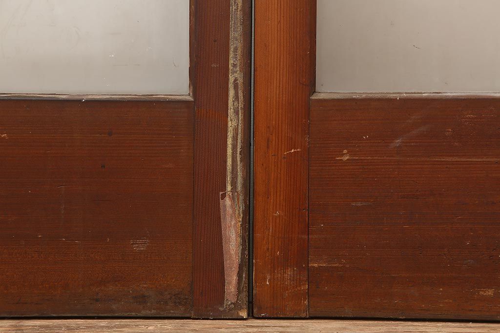 レトロ建具 昭和中期 シンプルなデザインで合わせやすいガラス戸2枚セット(引き戸)(R-045843)