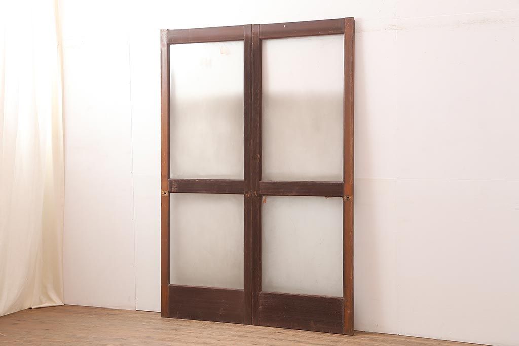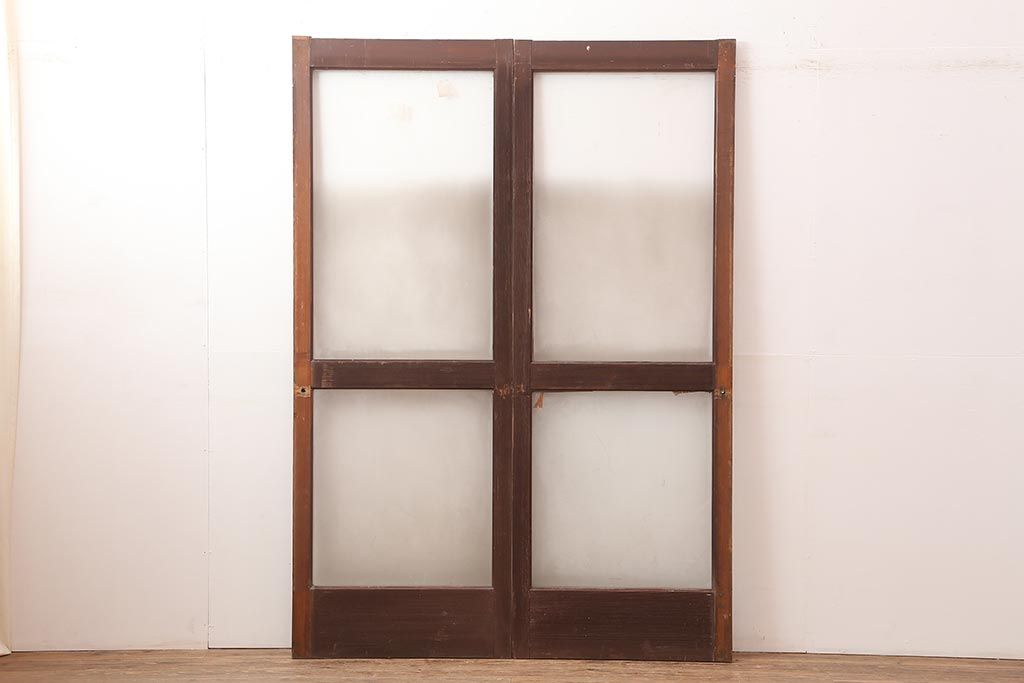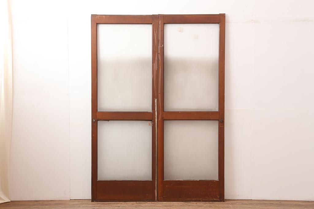 ラフジュ工房> ドア・建具> 2枚・3枚セット > レトロ建具 昭和中期 シンプルなデザインで合わせやすいガラス戸2枚セット(引き戸)(R-045843)