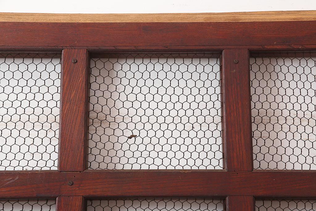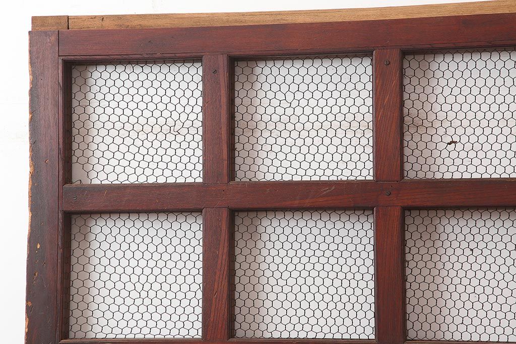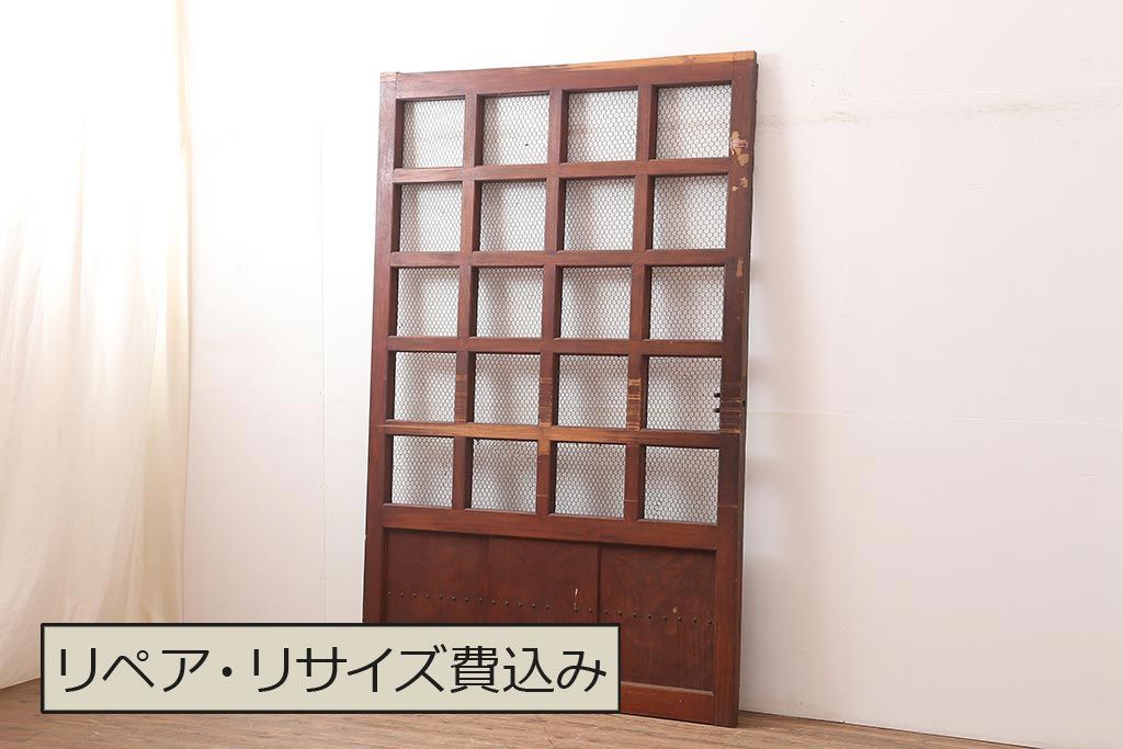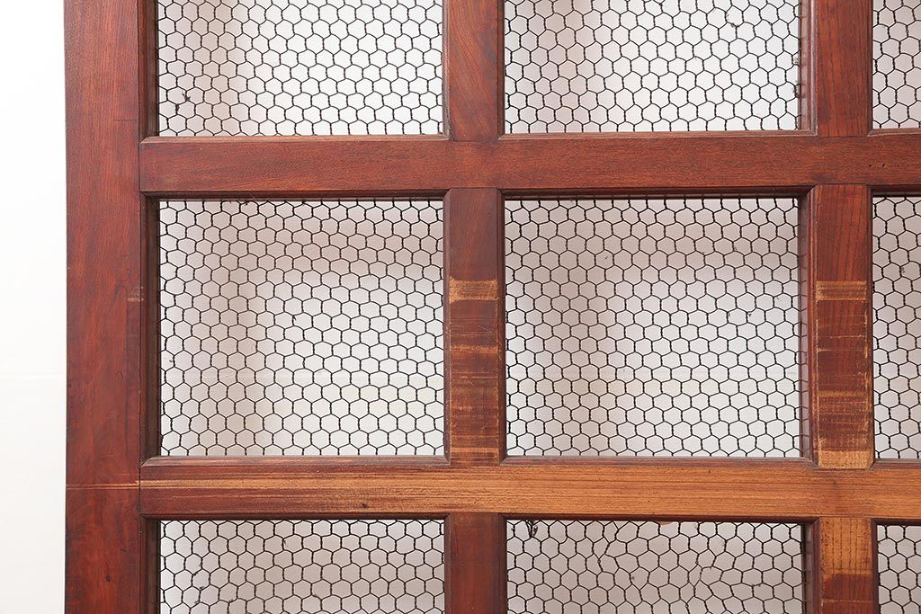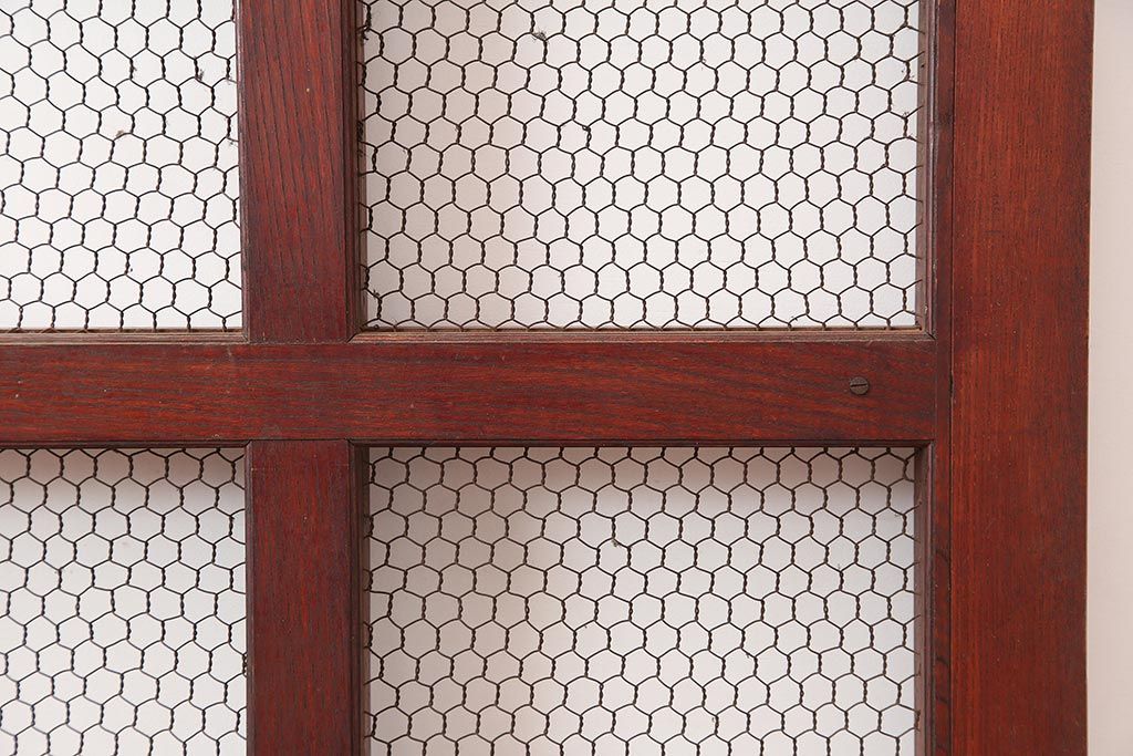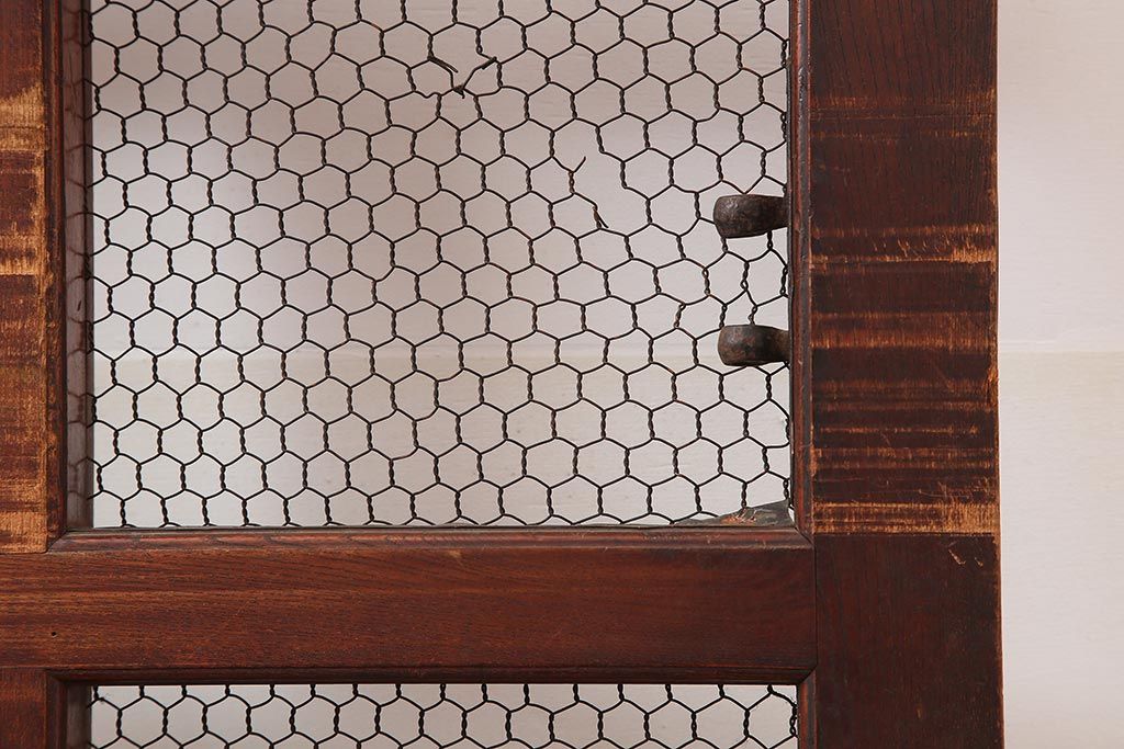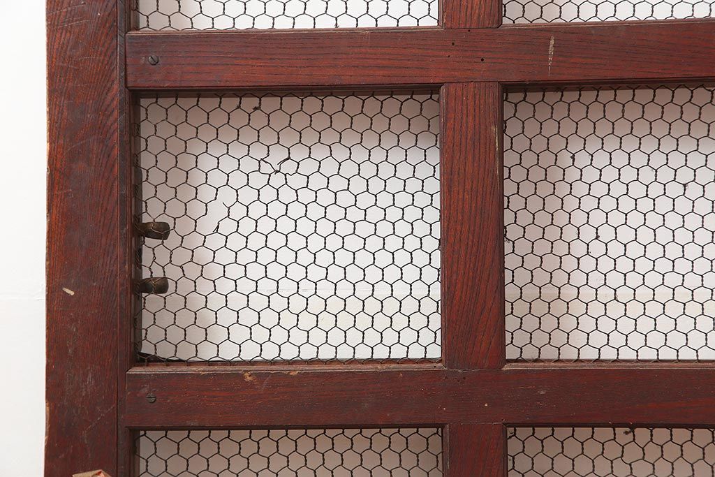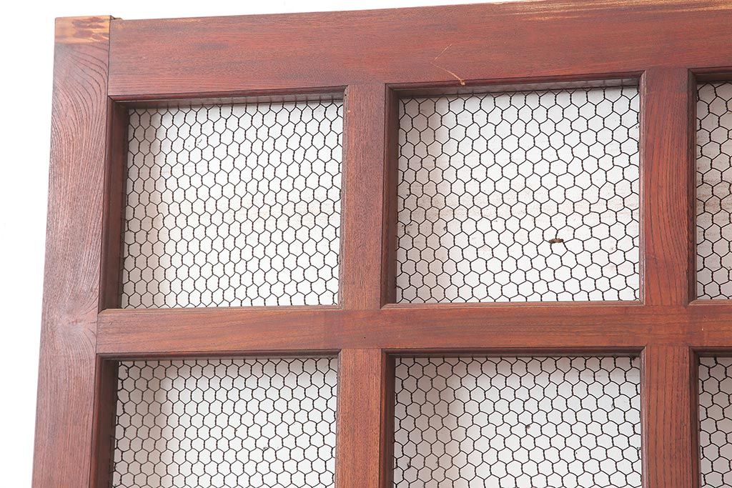 アンティーク建具 大正期 総ケヤキ材 亀甲金網 和の風格漂う蔵戸(きつね格子、狐格子、引き戸、建具、玄関戸、格子戸、マス目、升目)(R-045844)