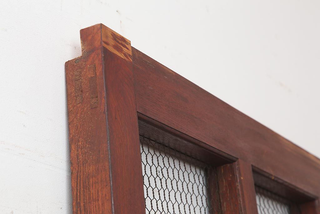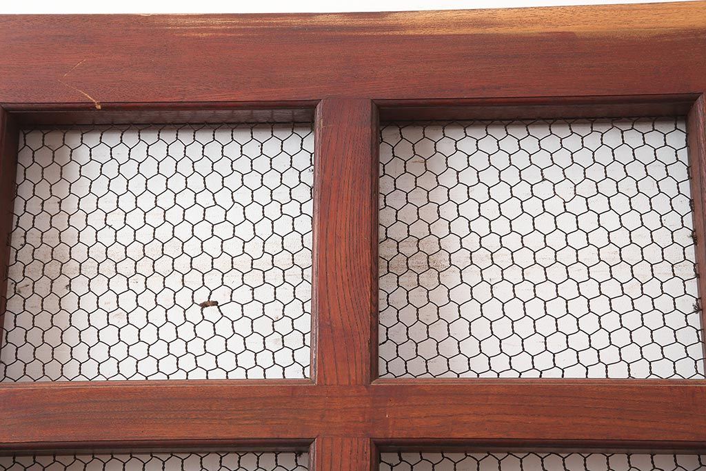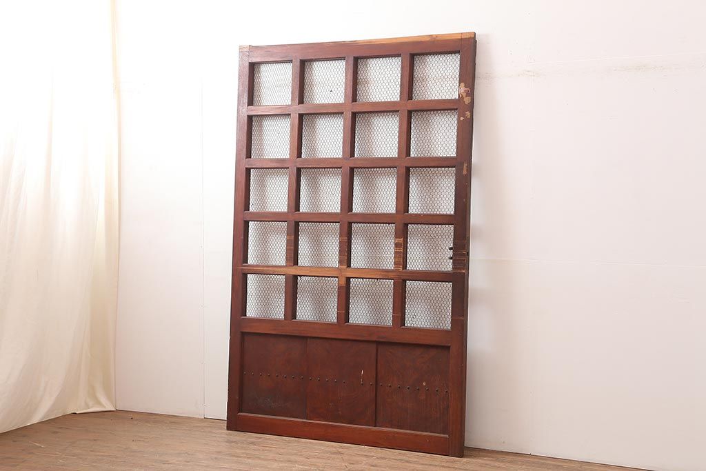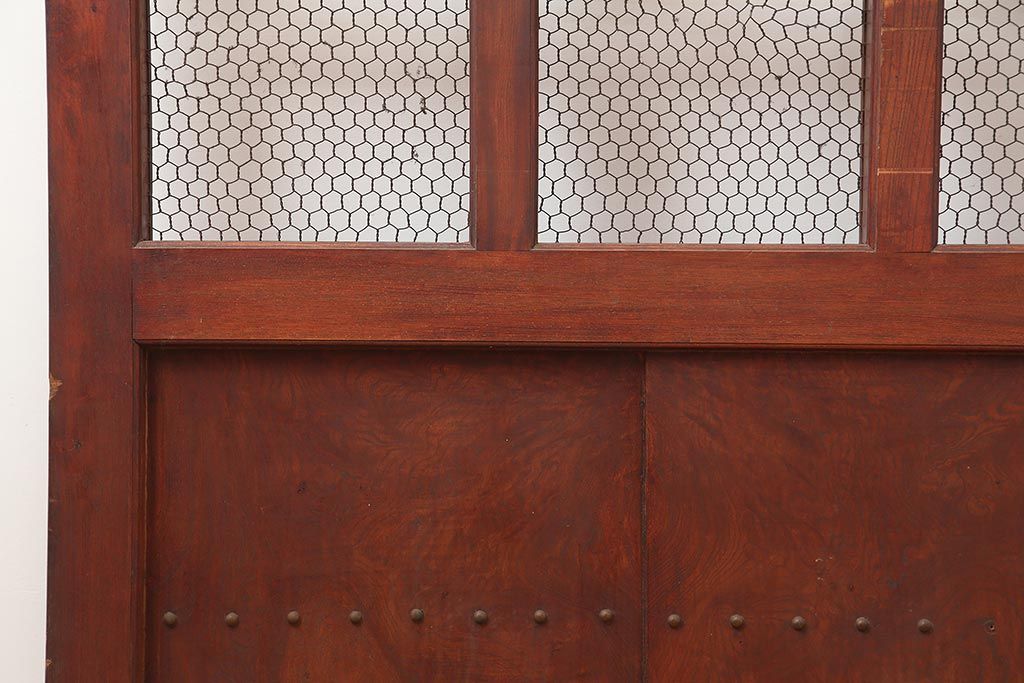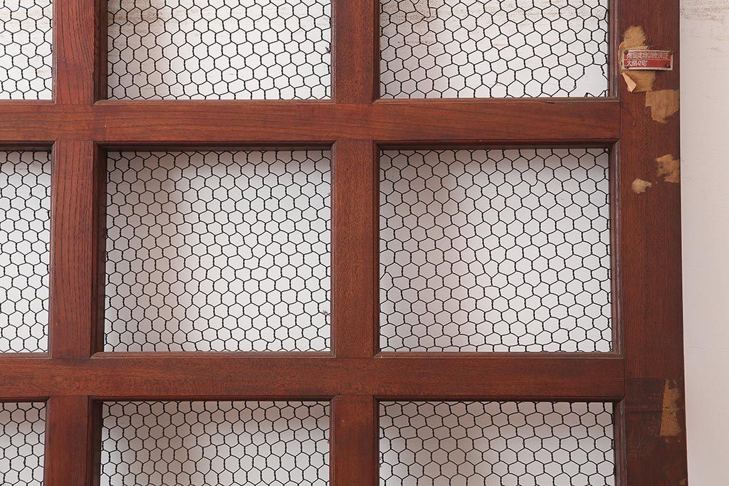 ラフジュ工房> ドア・建具> 蔵戸 > アンティーク建具 大正期 総ケヤキ材 亀甲金網 和の風格漂う蔵戸(きつね格子、狐格子、引き戸、建具、玄関戸、格子戸、マス目、升目)(R-045844)