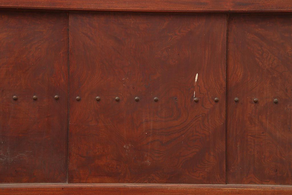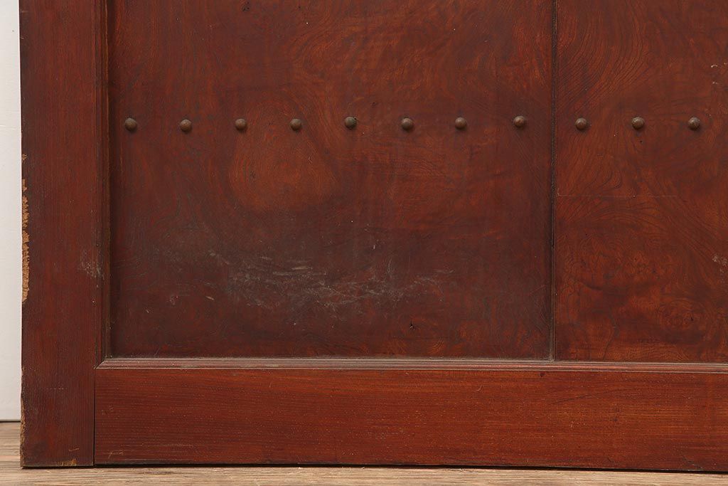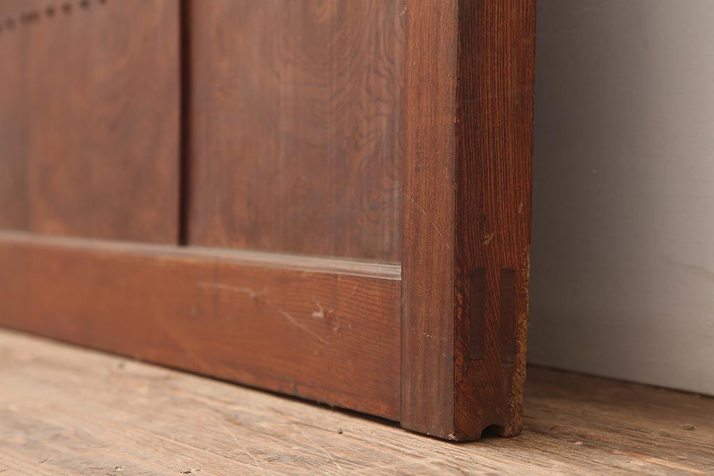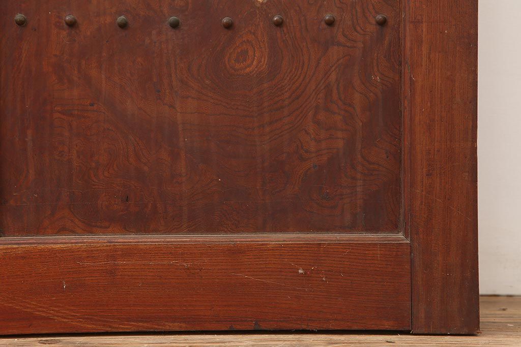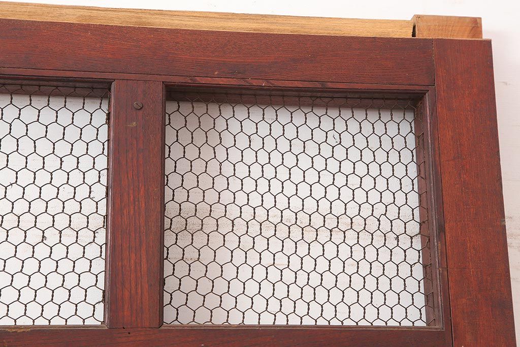 ラフジュ工房> ドア・建具> 蔵戸 > アンティーク建具 大正期 総ケヤキ材 亀甲金網 和の風格漂う蔵戸(きつね格子、狐格子、引き戸、建具、玄関戸、格子戸、マス目、升目)(R-045844)