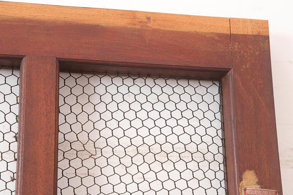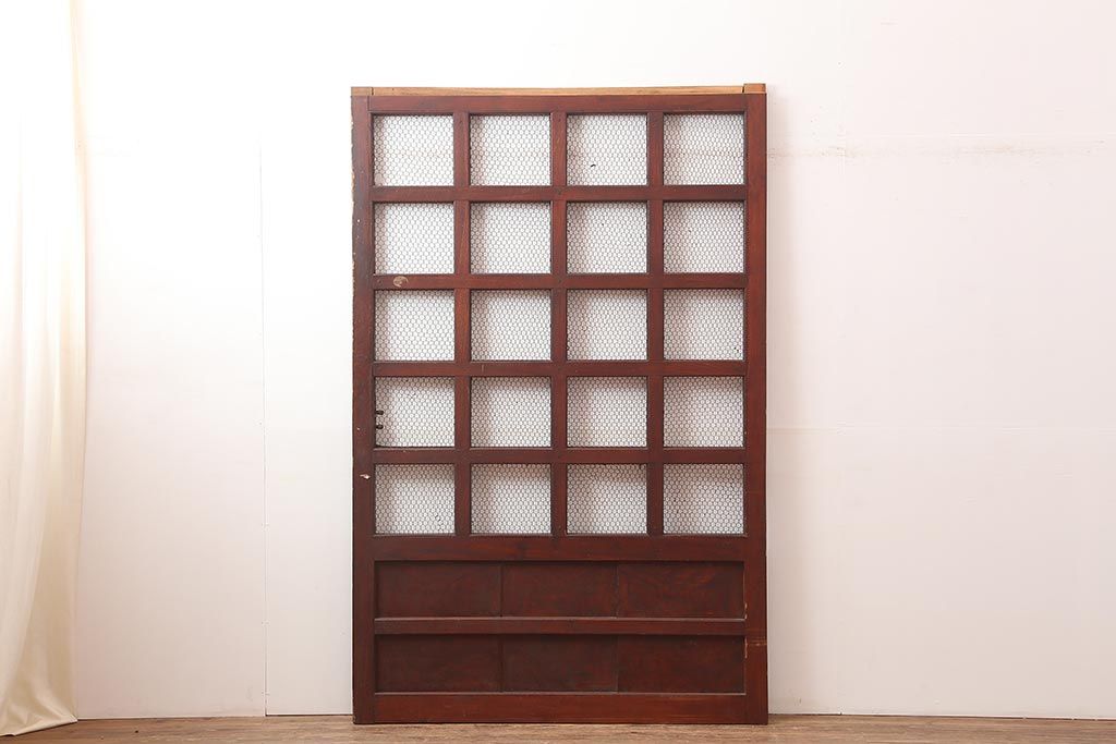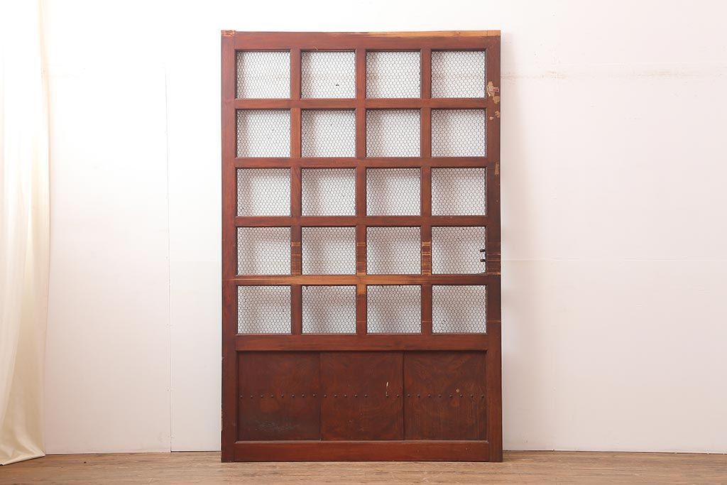 ラフジュ工房> ドア・建具> 玄関ドア・玄関戸 > アンティーク建具 大正期 総ケヤキ材 亀甲金網 和の風格漂う蔵戸(きつね格子、狐格子、引き戸、建具、玄関戸、格子戸、マス目、升目)(R-045844)