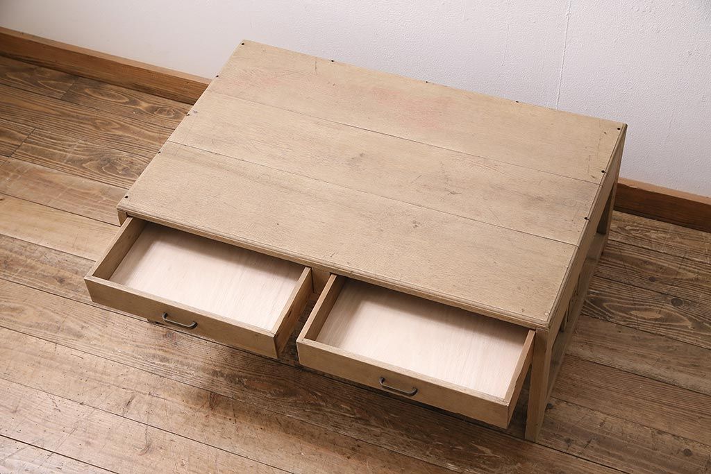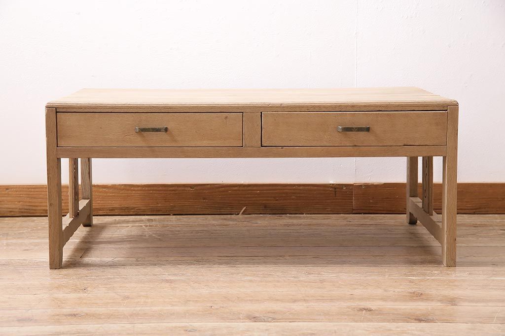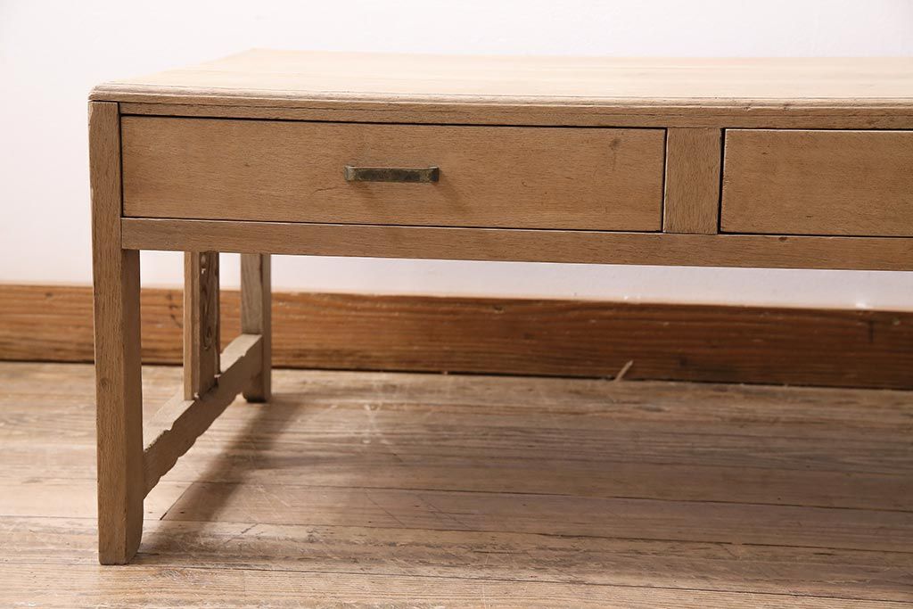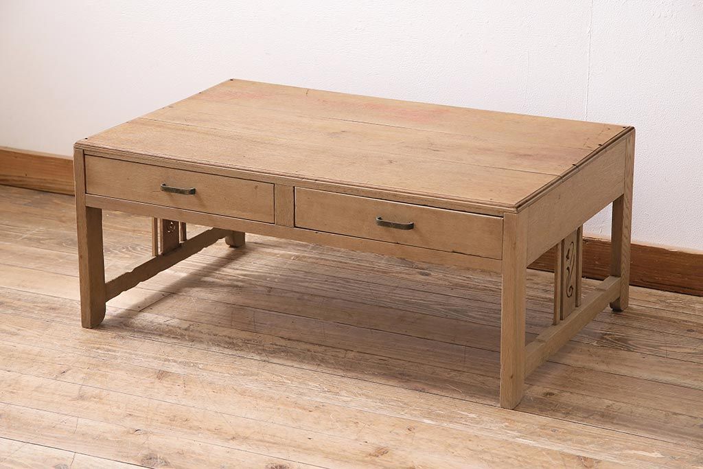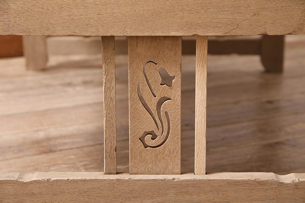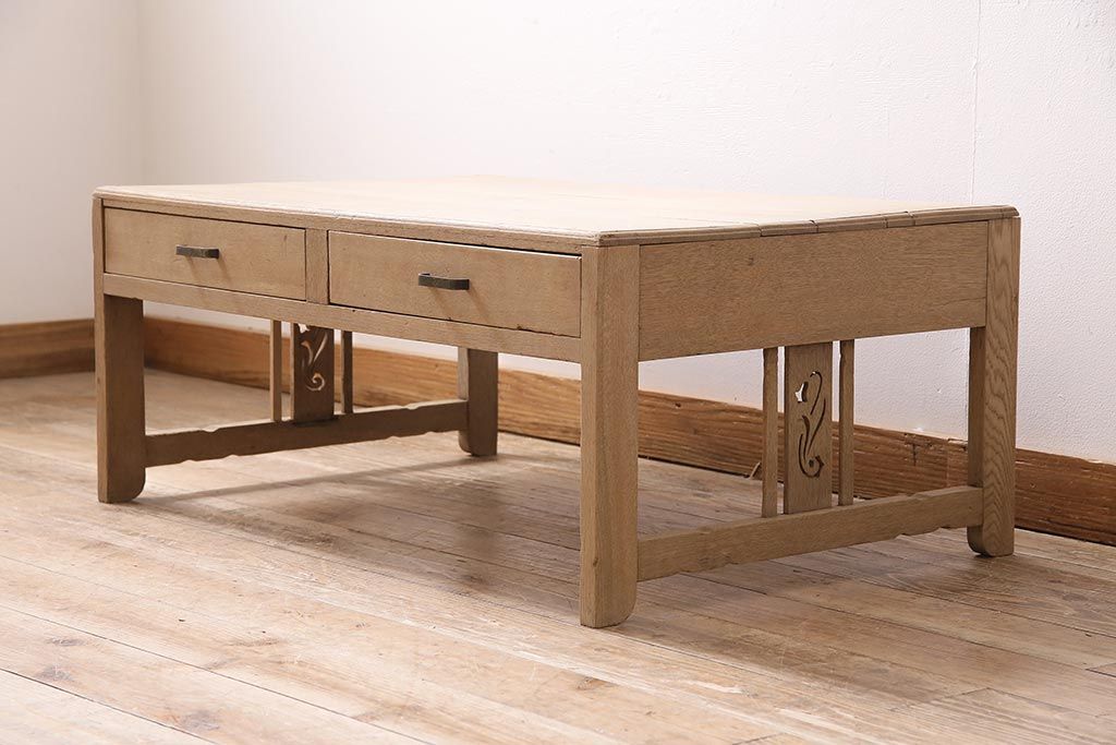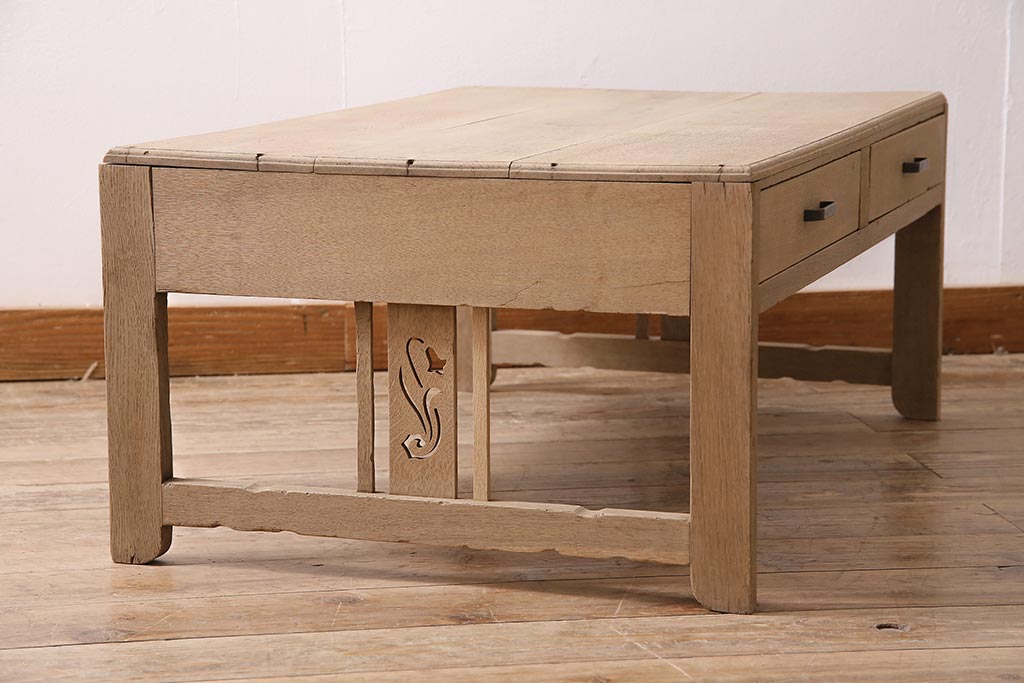 ストリップド(剥離)家具 > アンティーク家具 昭和初期 ストリップド(剥離) ナラ材 花の透かし彫りが可憐な雰囲気の文机(ローテーブル)(R-037206)