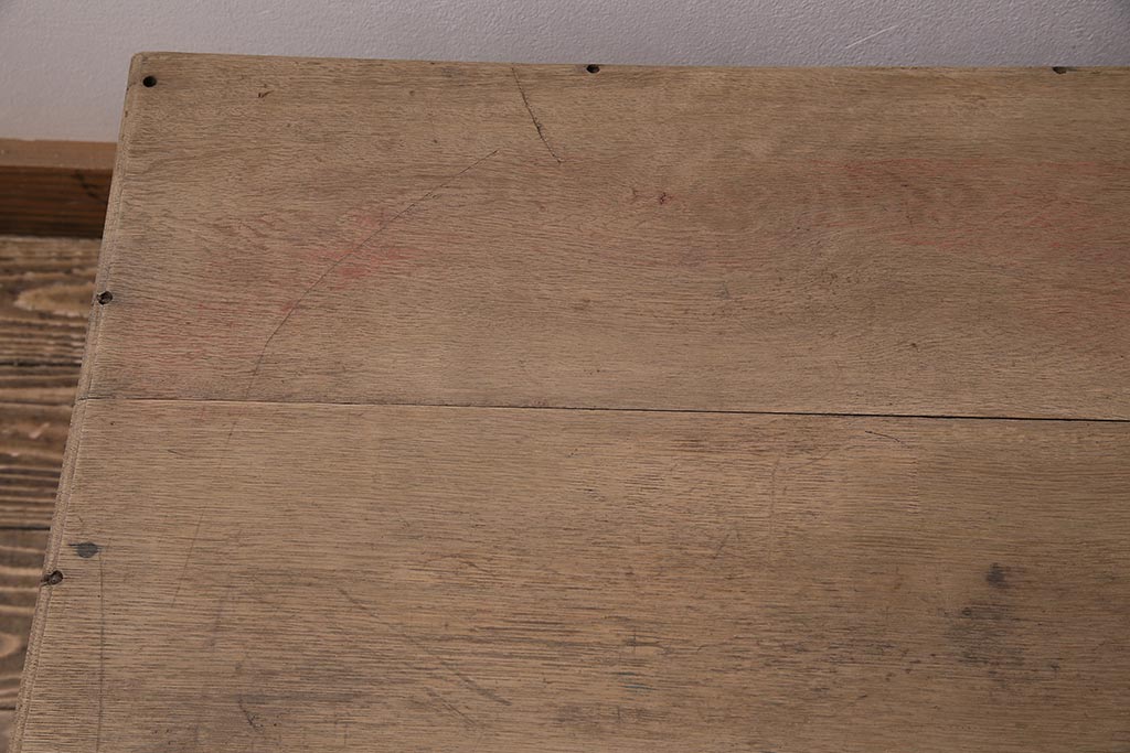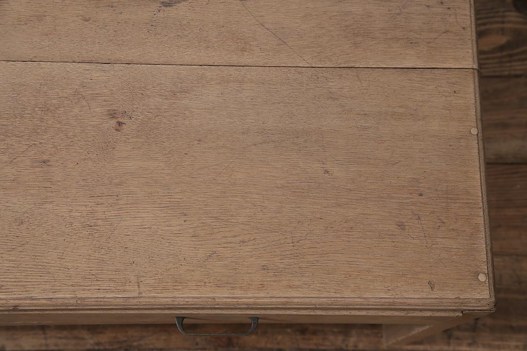 デスク> 文机・座机 > アンティーク家具 昭和初期 ストリップド(剥離) ナラ材 花の透かし彫りが可憐な雰囲気の文机(ローテーブル)(R-037206)