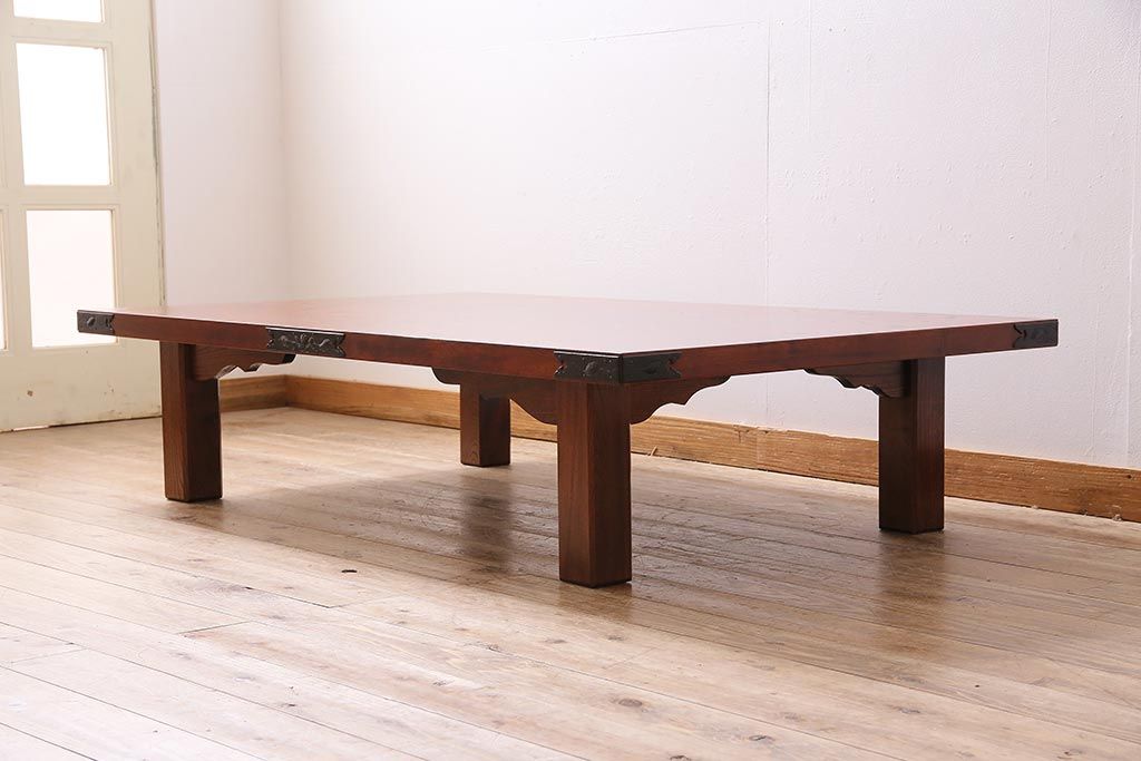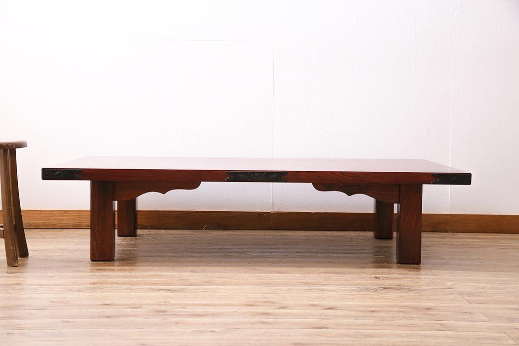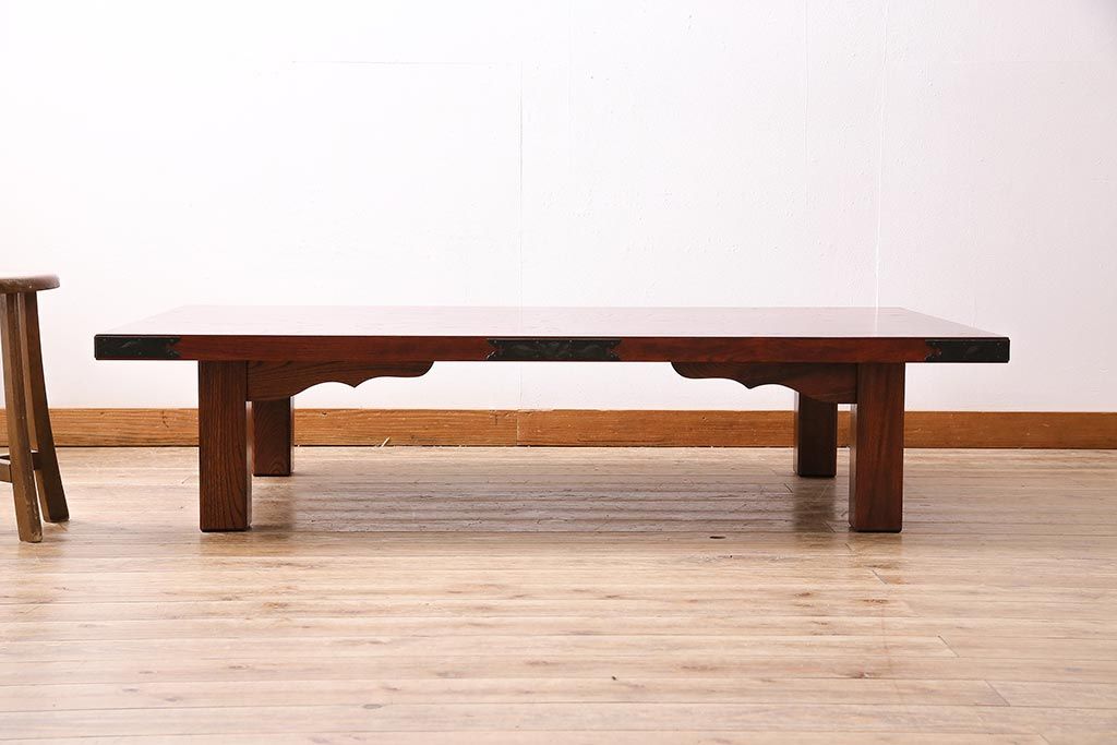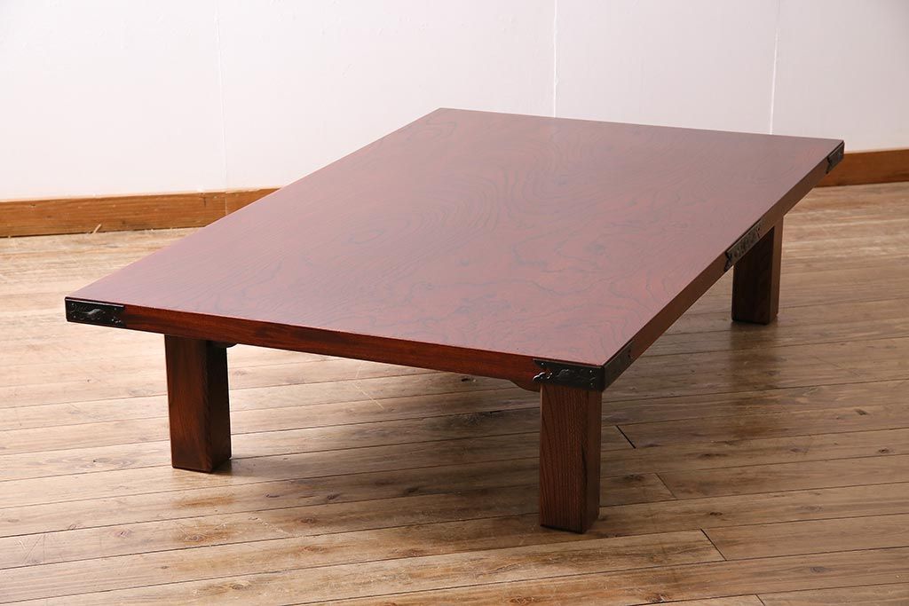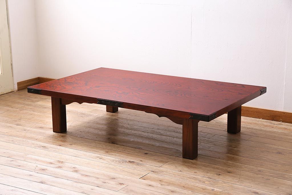 テーブル> センターテーブル・ローテーブル > 中古 伝統民芸家具 岩谷堂箪笥 ケヤキ材 美しい杢目が高級感を放つ座卓(ローテーブル、リビングテーブル)(定価約25万円)(R-045800)