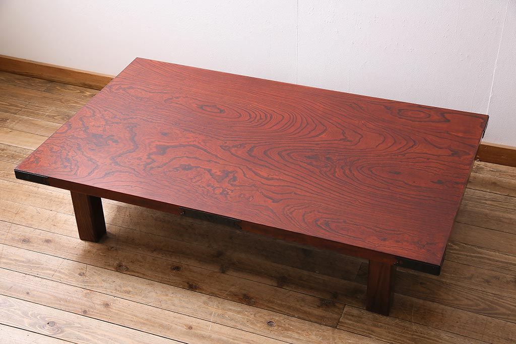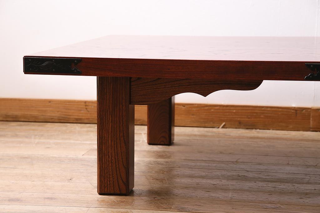 中古 伝統民芸家具 岩谷堂箪笥 ケヤキ材 美しい杢目が高級感を放つ座卓(ローテーブル、リビングテーブル)(定価約25万円)(R-045800)