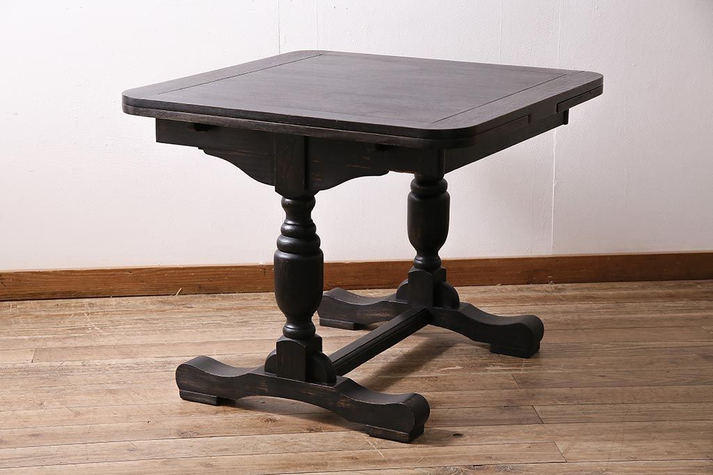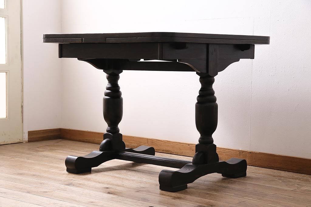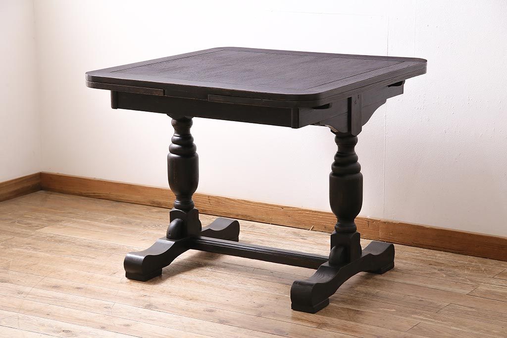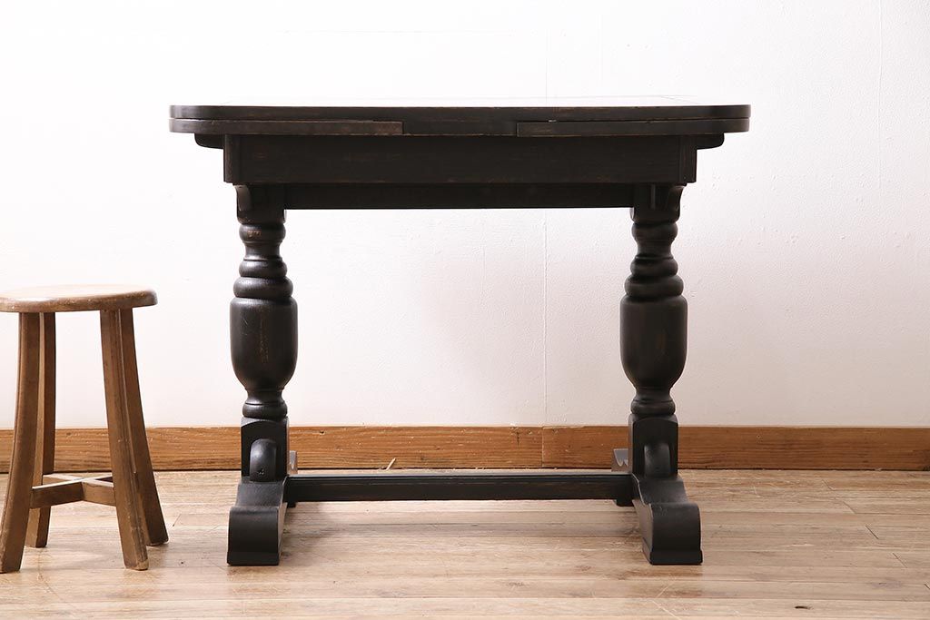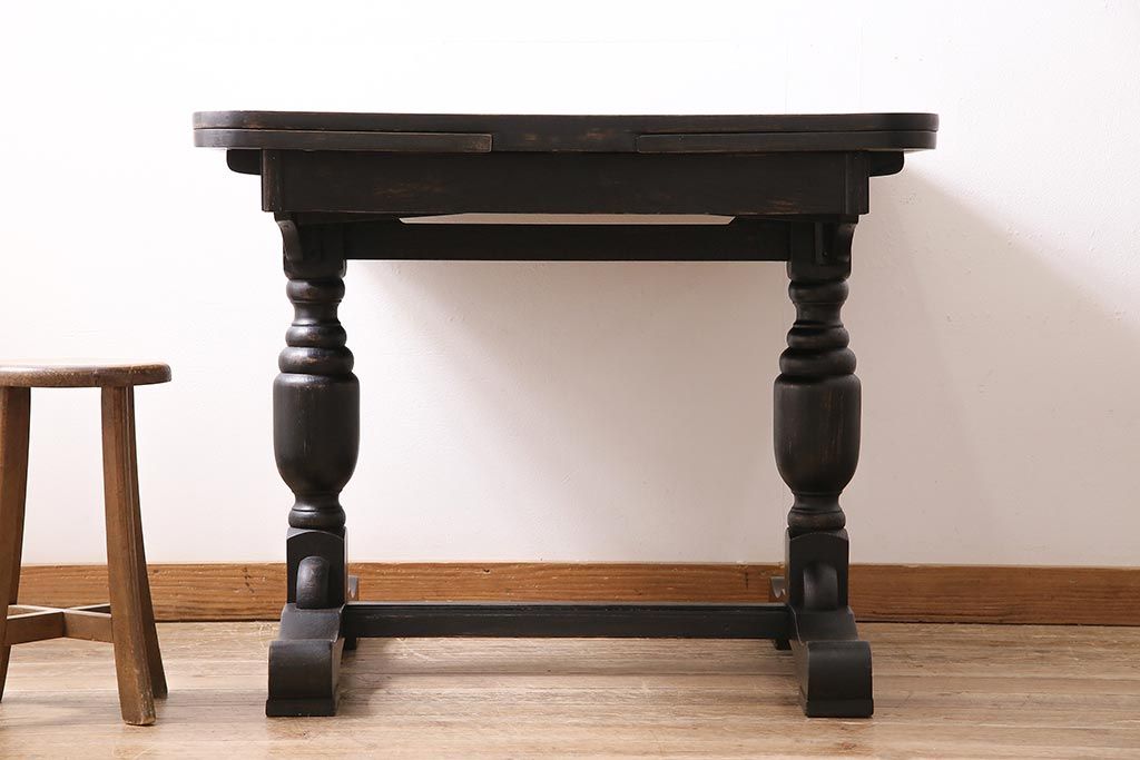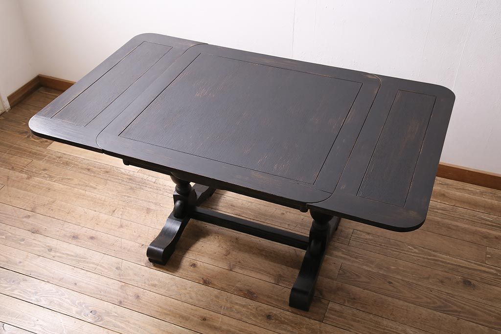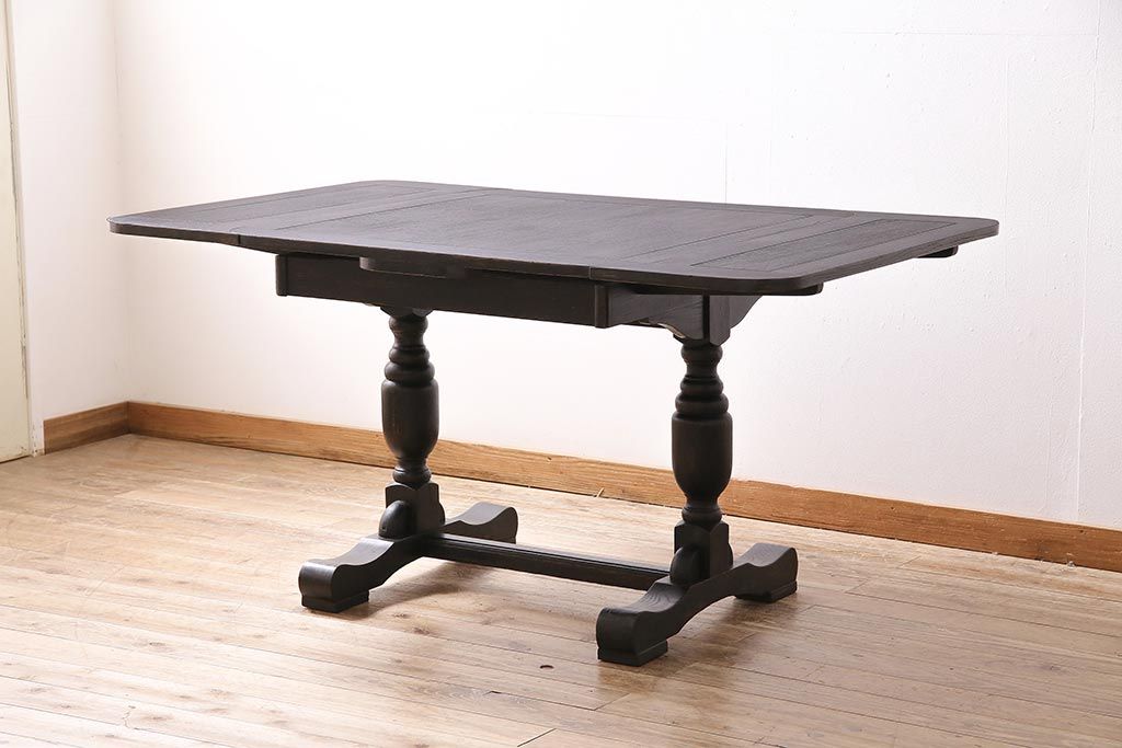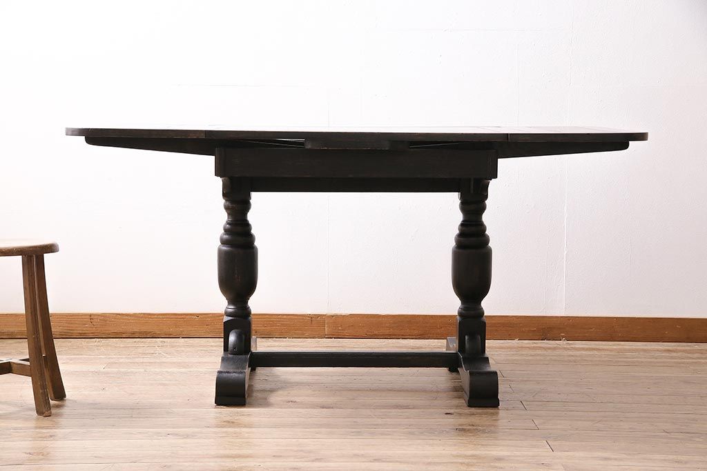テーブル> 4人用ダイニングテーブル > アンティーク家具 イギリスアンティーク 落ち着いた色合いの和洋折衷なドローリーフテーブル(エクステンションテーブル、カフェテーブル、ダイニングテーブル)(R-045630)