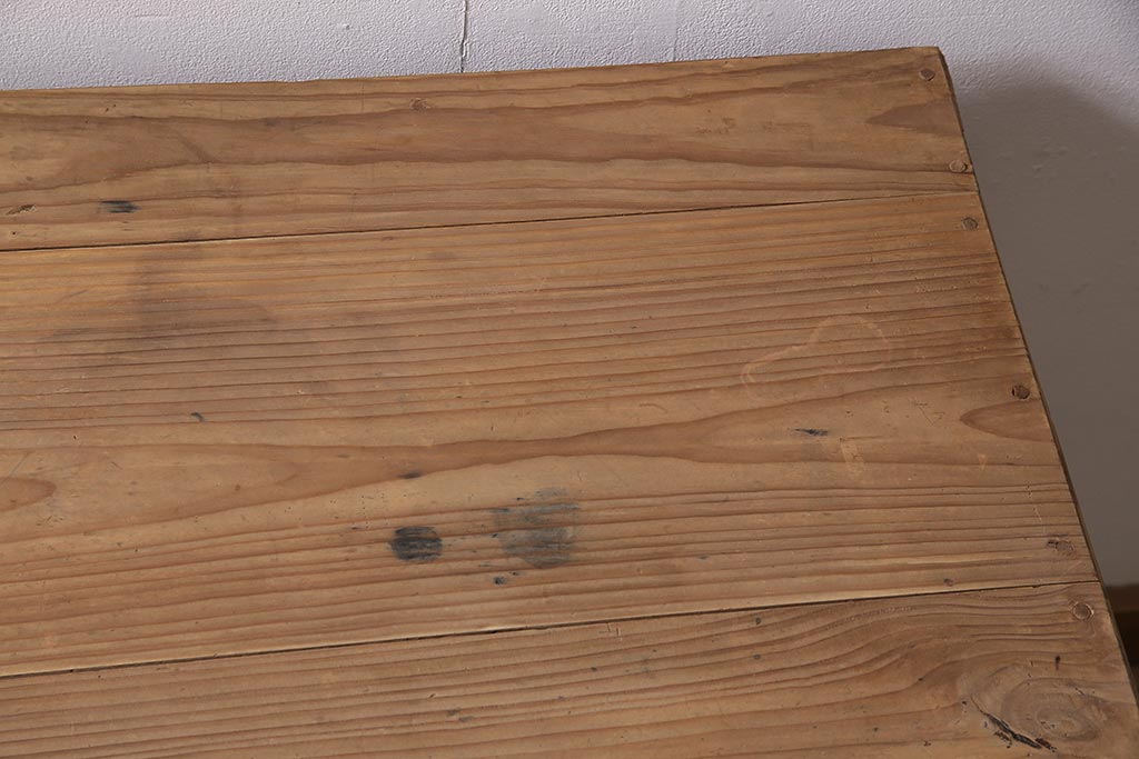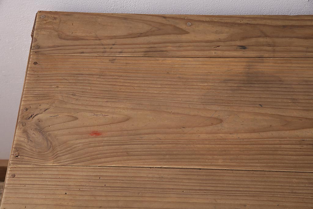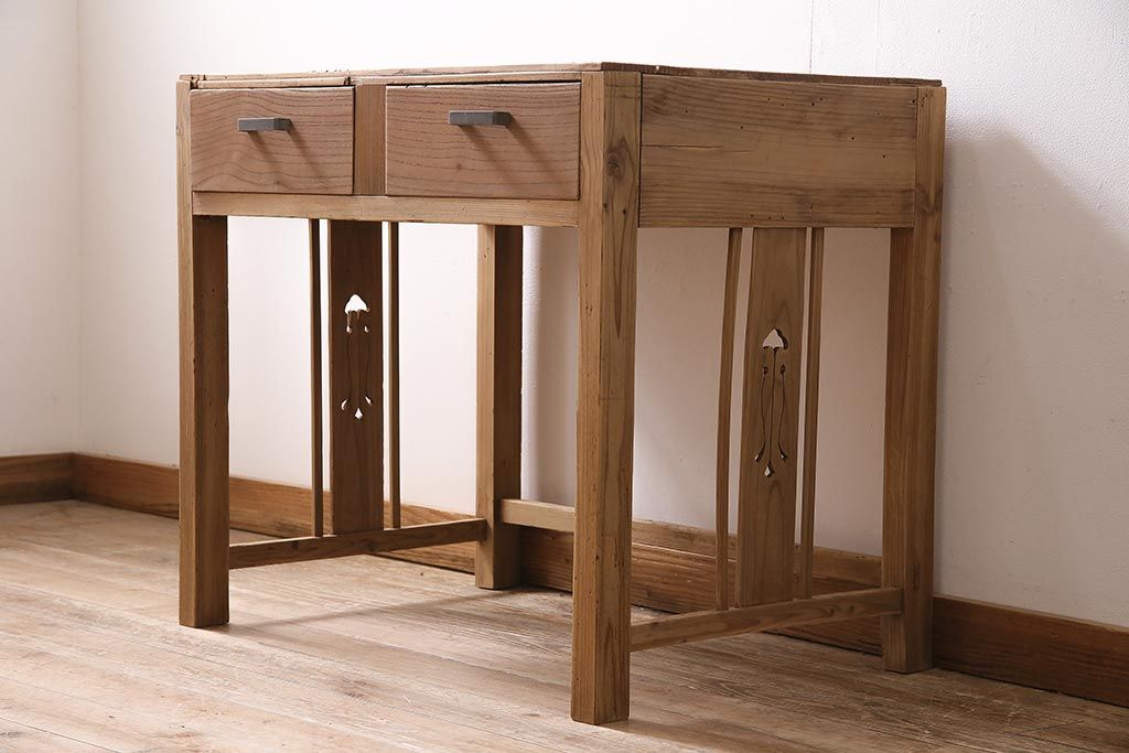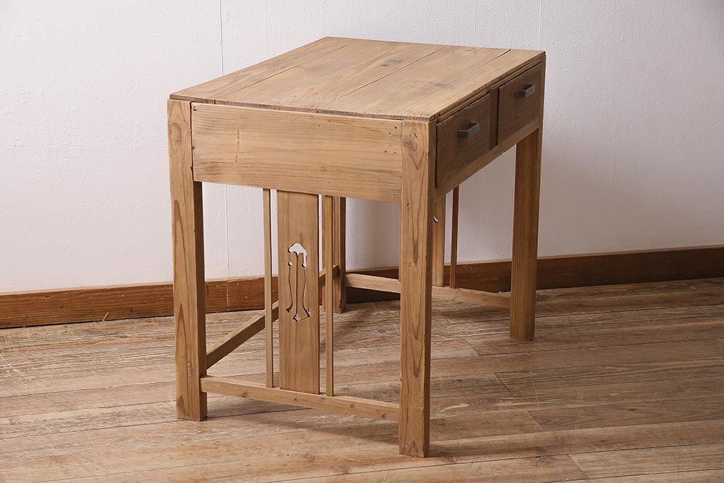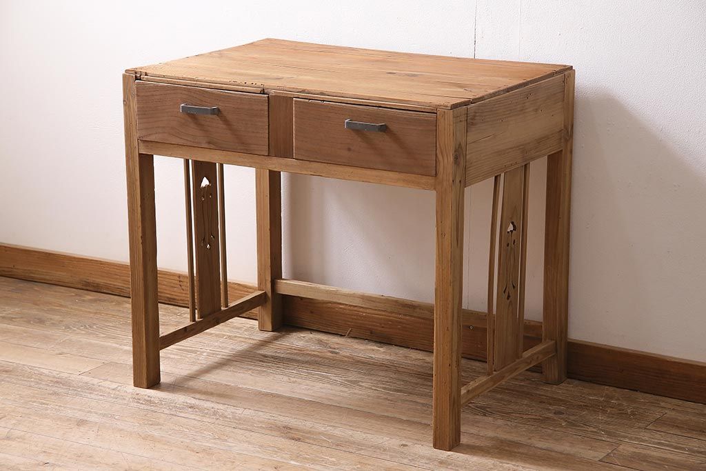デスク> ワークデスク > アンティーク家具 昭和初期 ストリップド(剥離) 引き出し付き 透かし入りのノスタルジックな平机(ワークデスク、机、在宅ワーク、在宅用)(R-040146)