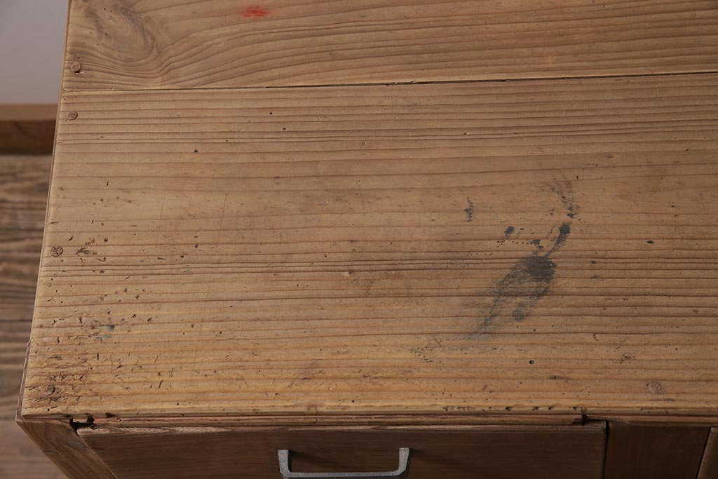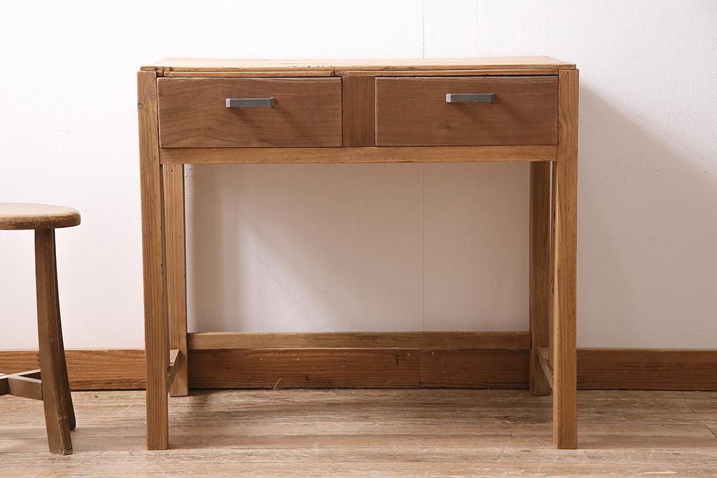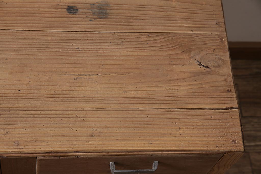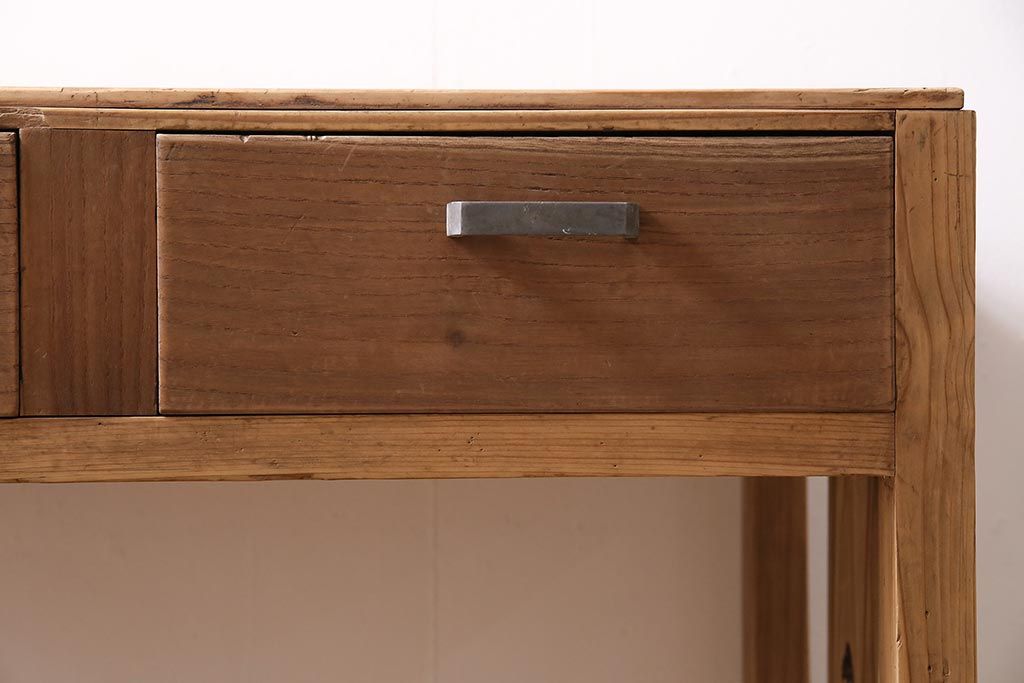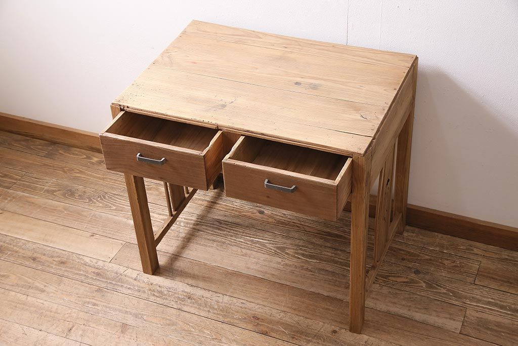 デスク> ワークデスク > アンティーク家具 昭和初期 ストリップド(剥離) 引き出し付き 透かし入りのノスタルジックな平机(ワークデスク、机、在宅ワーク、在宅用)(R-040146)