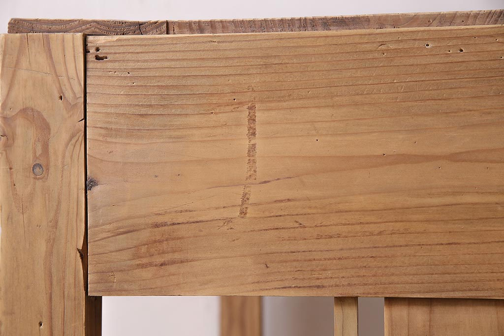 こちらは塗装を剥がしたストリップド(剥離)商品です。多少の隙間や荒れ、傷はあえて残し、木味として楽しめるよう仕上げております。