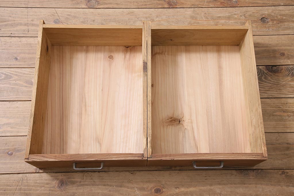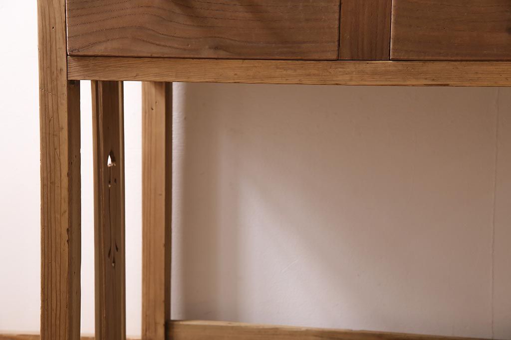 デスク> 平机 > アンティーク家具 昭和初期 ストリップド(剥離) 引き出し付き 透かし入りのノスタルジックな平机(ワークデスク、机、在宅ワーク、在宅用)(R-040146)