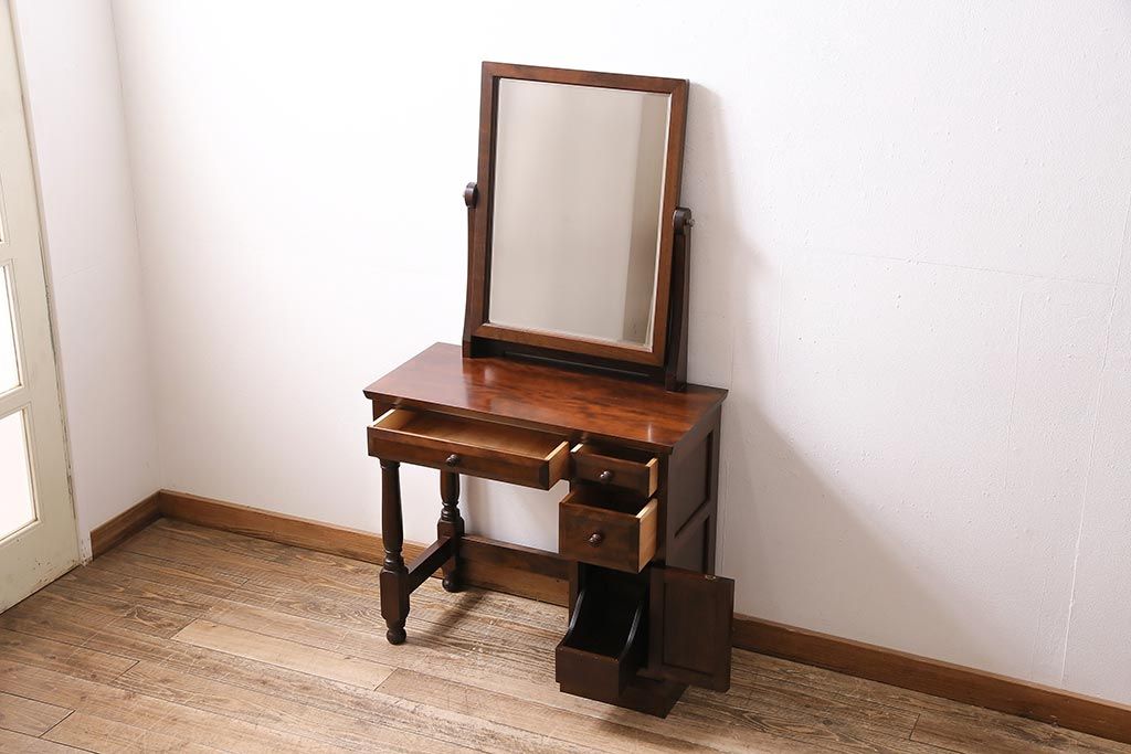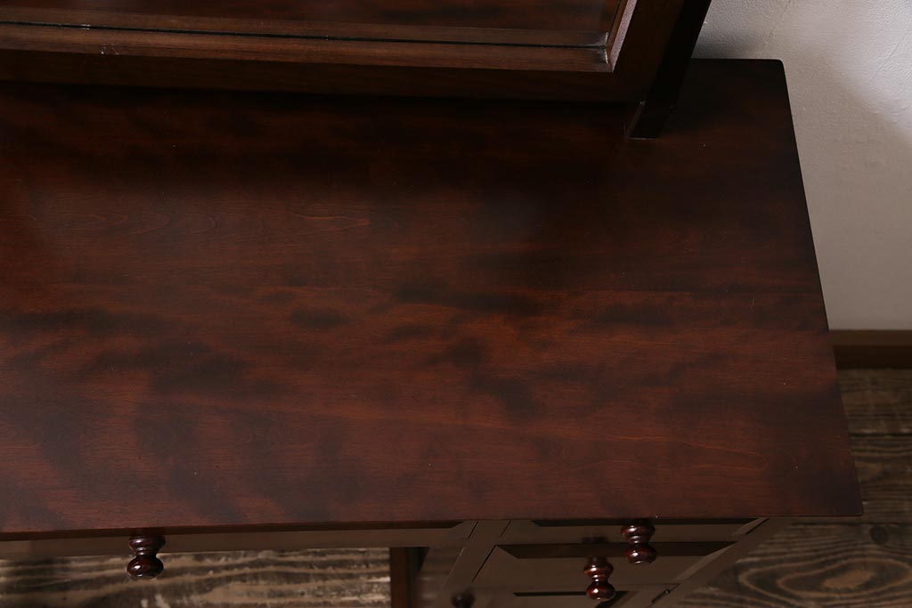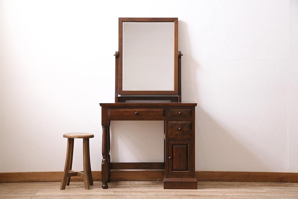 中古 松本民芸家具 特注品 角型ミラー 高級感漂うクラシカルな佇まいが魅力のドレッサー(定価約34万円)(鏡台)(R-045772)
