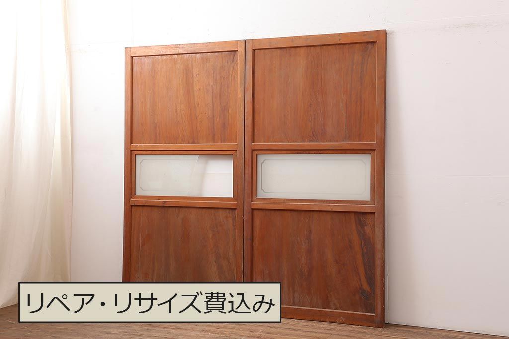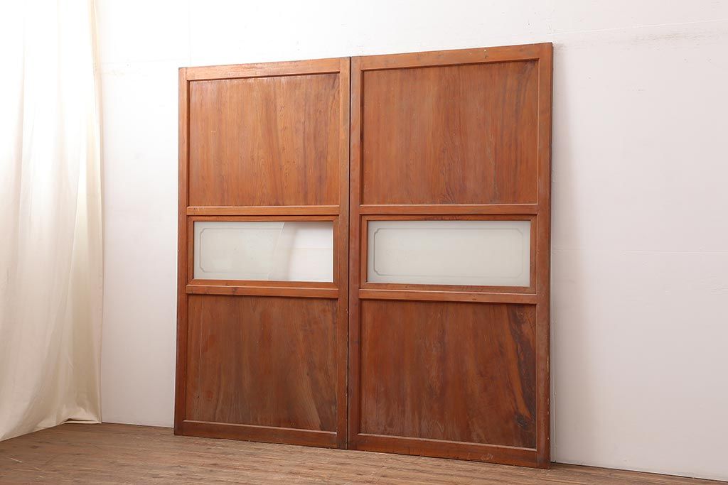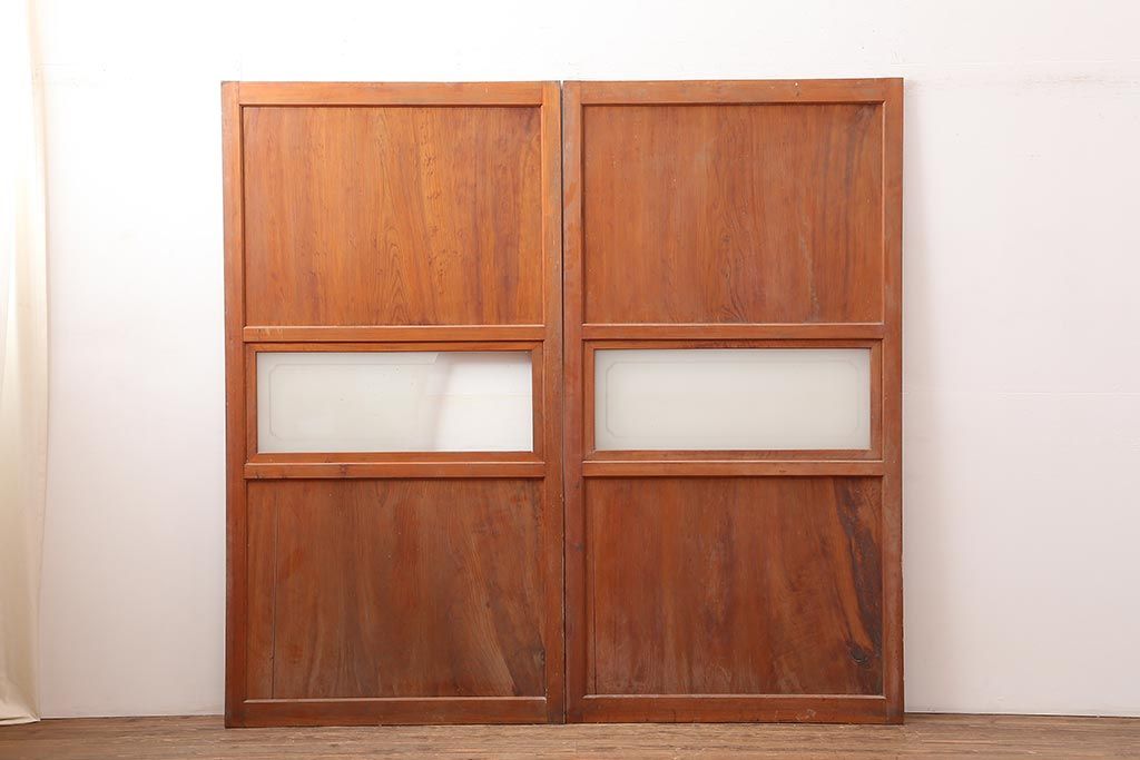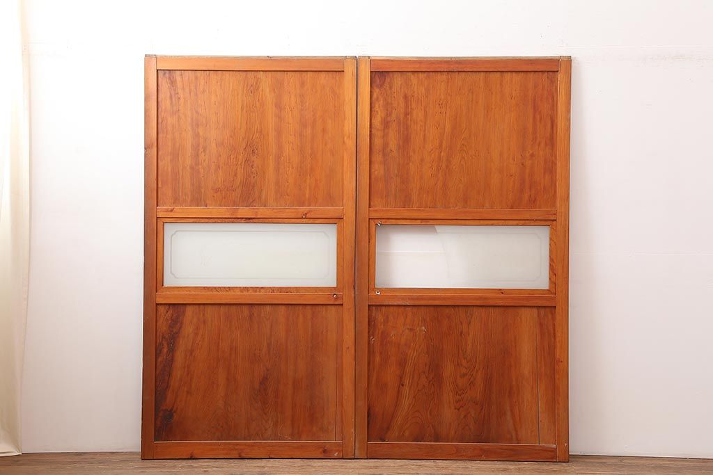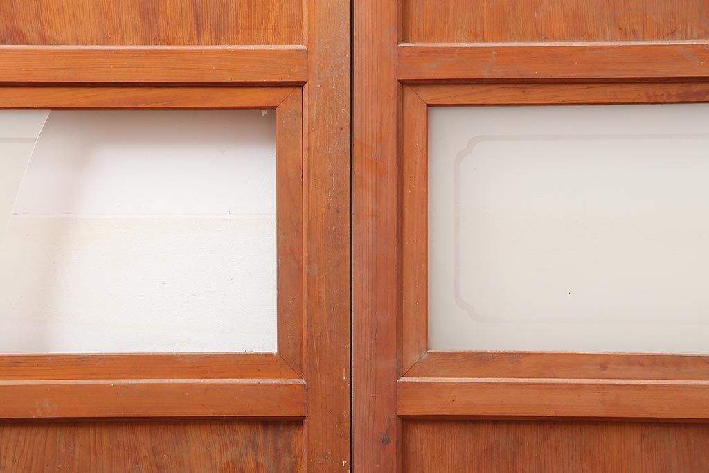 ラフジュ工房> ドア・建具> 2枚・3枚セット > アンティーク建具 昭和中期 春慶塗が魅力のガラス帯戸2枚セット(引き戸、建具)(R-045704)