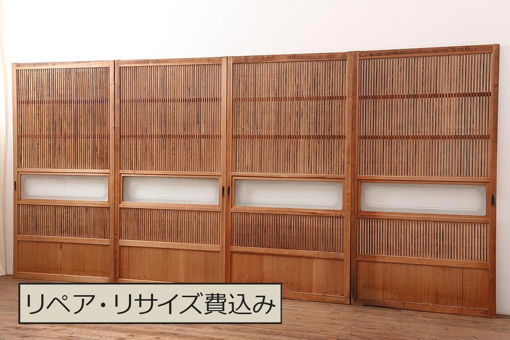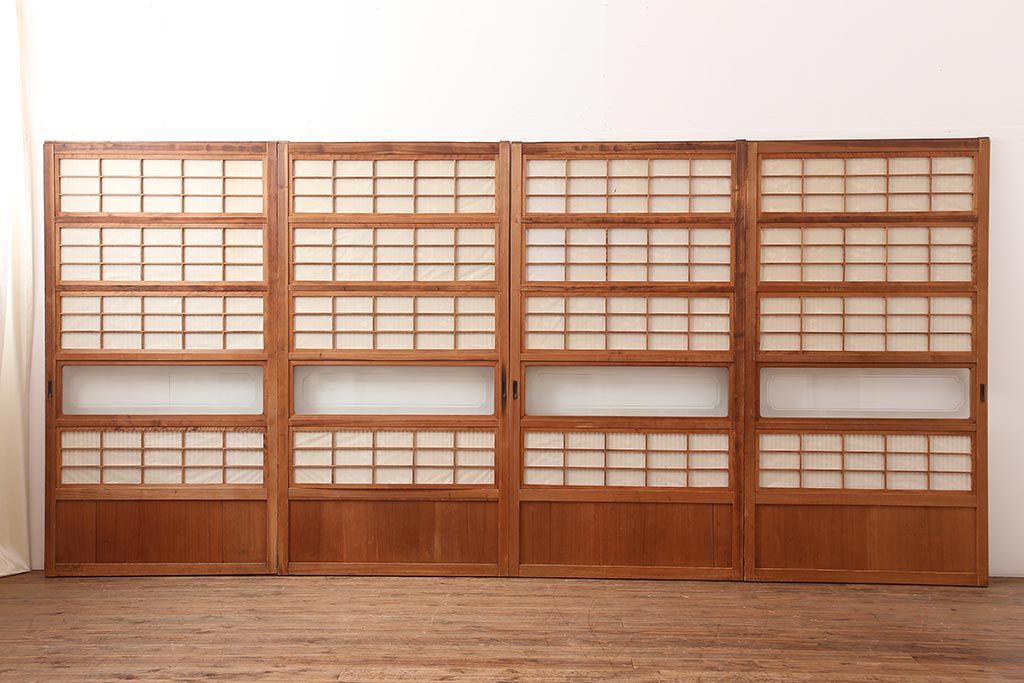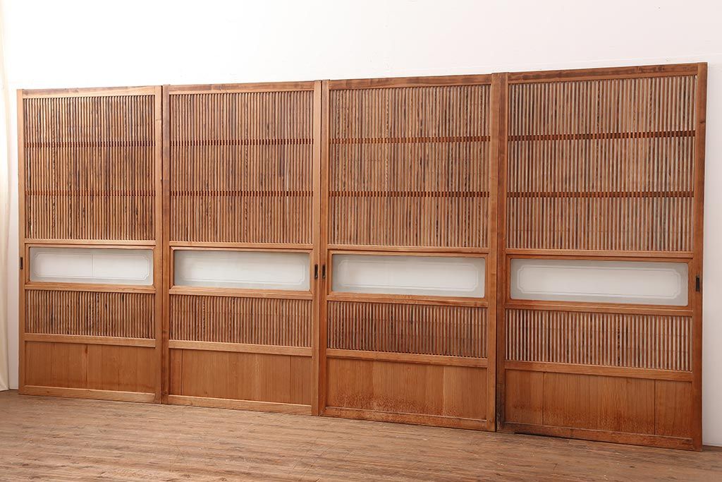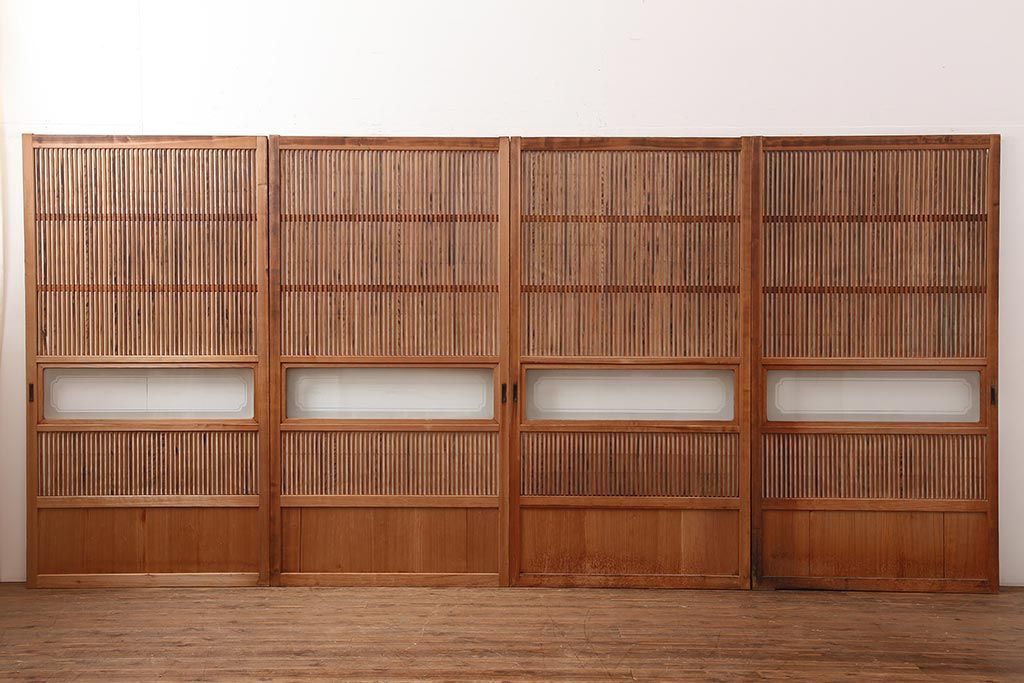 ドア・建具> 4枚〜セット > アンティーク建具 昭和中期 裏障子付き 和風スタイルにおすすめな帯格子戸4枚セット(障子戸、引き戸、建具)(R-045838)