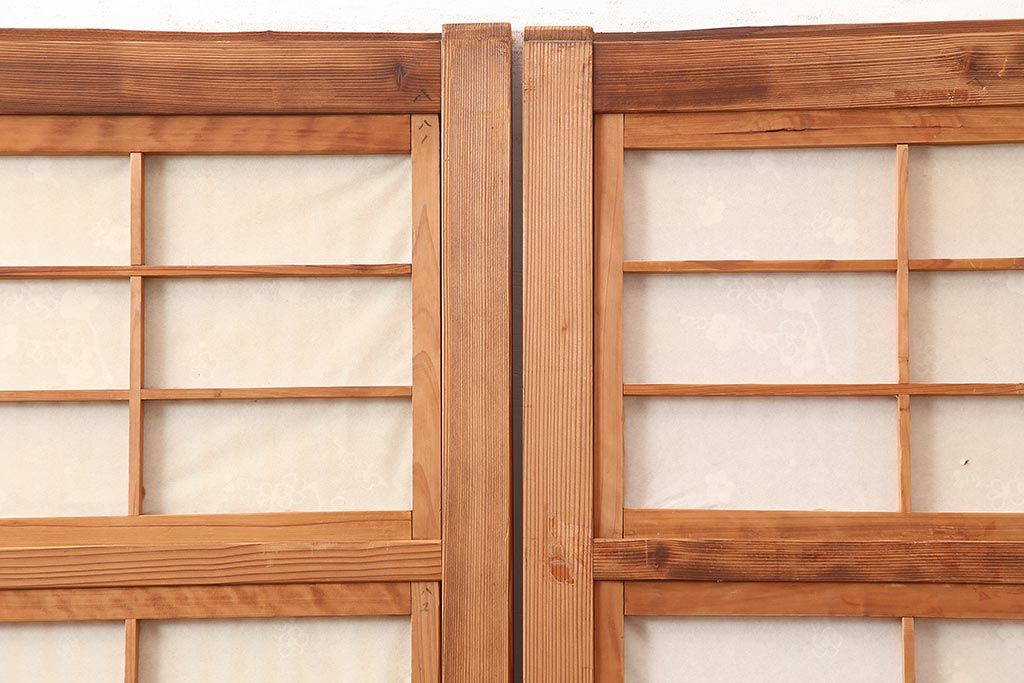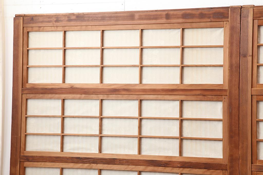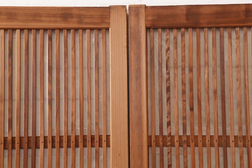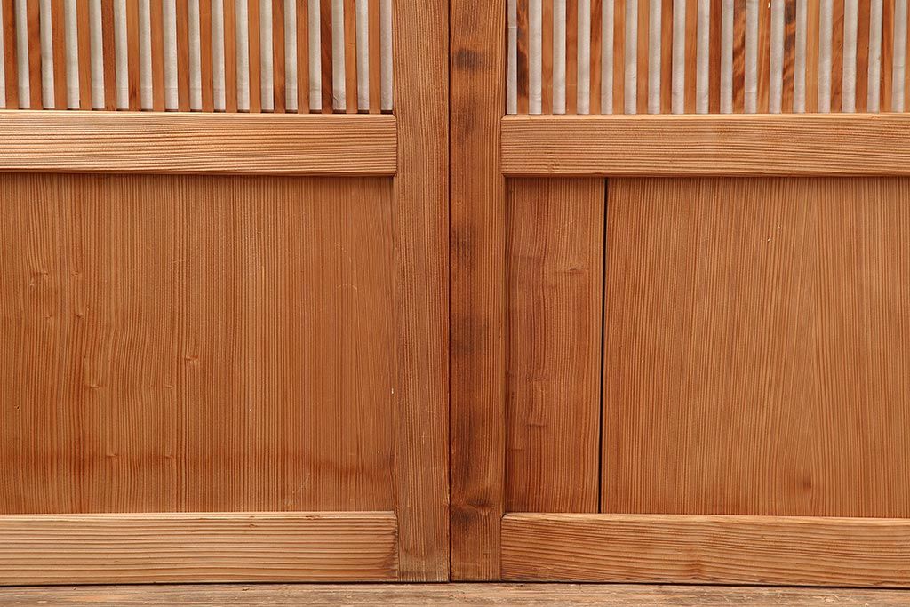 ドア・建具> 板戸・帯戸 > アンティーク建具 昭和中期 裏障子付き 和風スタイルにおすすめな帯格子戸4枚セット(障子戸、引き戸、建具)(R-045838)