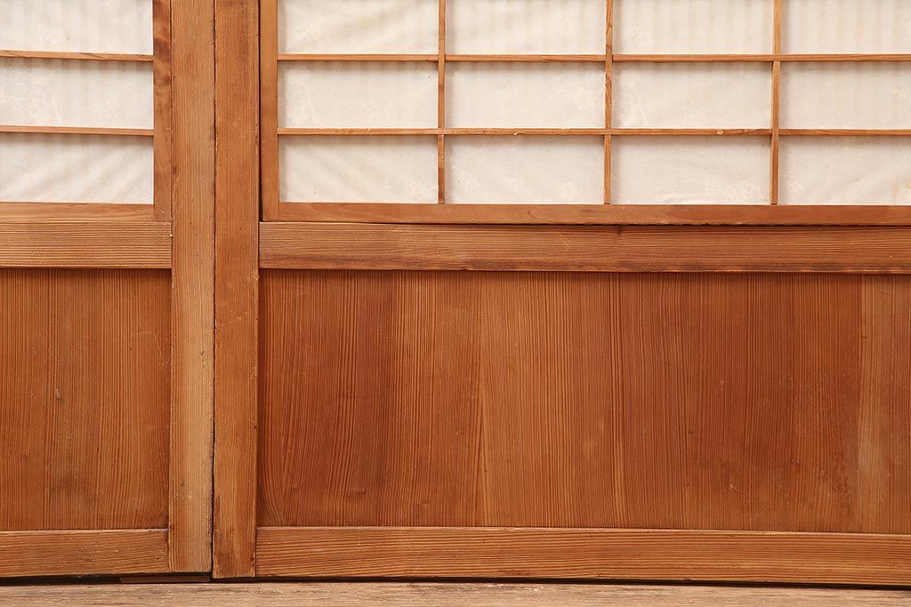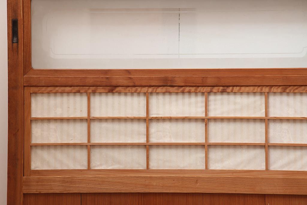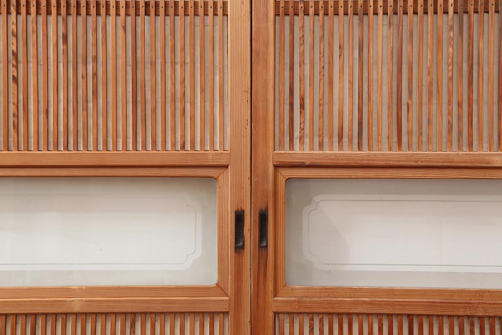 ドア・建具> 引き戸 > アンティーク建具 昭和中期 裏障子付き 和風スタイルにおすすめな帯格子戸4枚セット(障子戸、引き戸、建具)(R-045838)