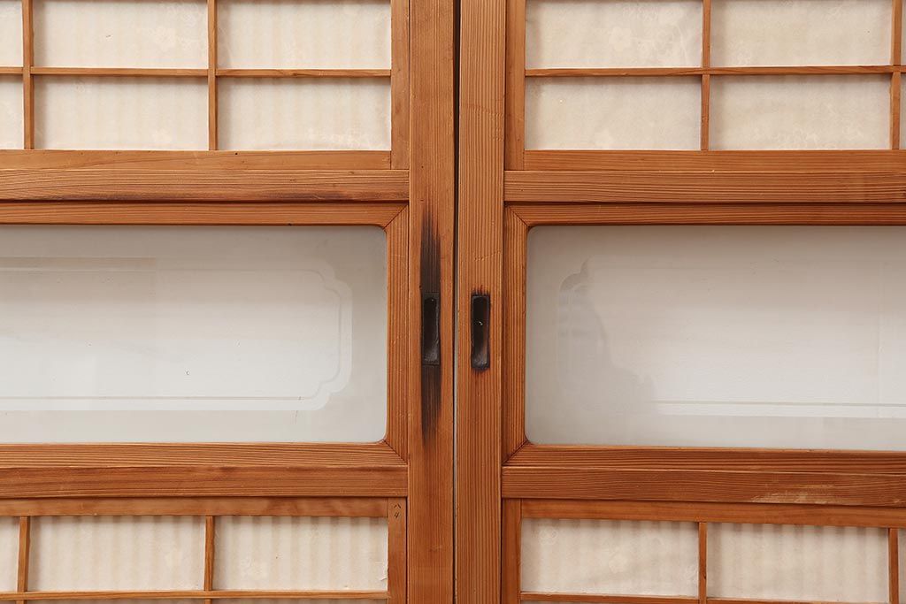 アンティーク建具 昭和中期 裏障子付き 和風スタイルにおすすめな帯格子戸4枚セット(障子戸、引き戸、建具)(R-045838)