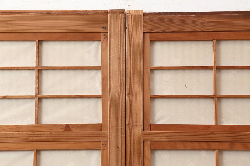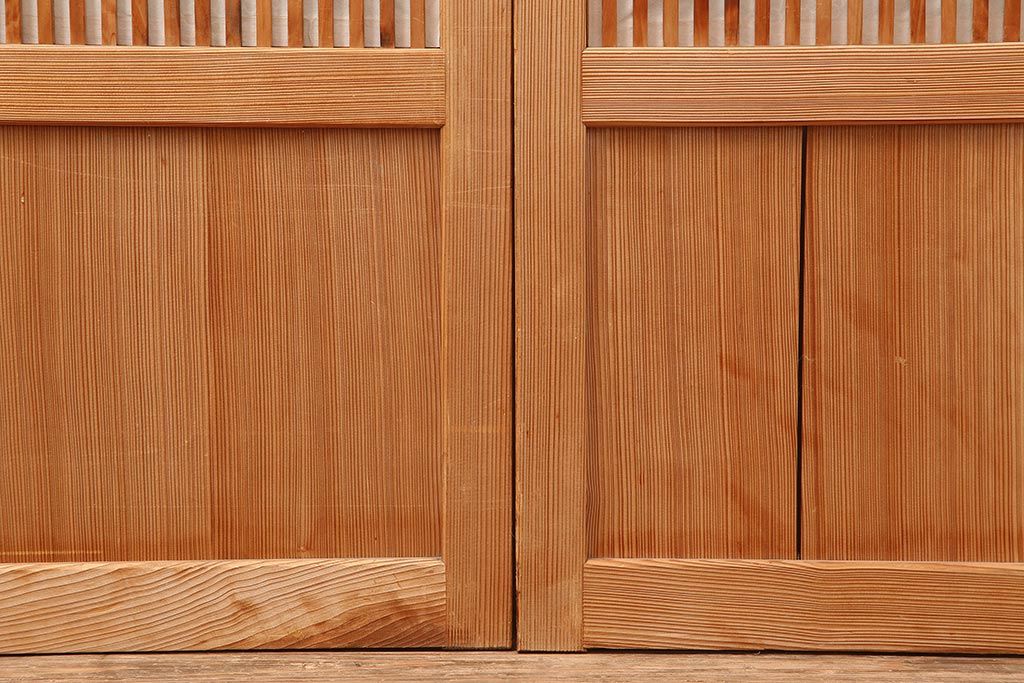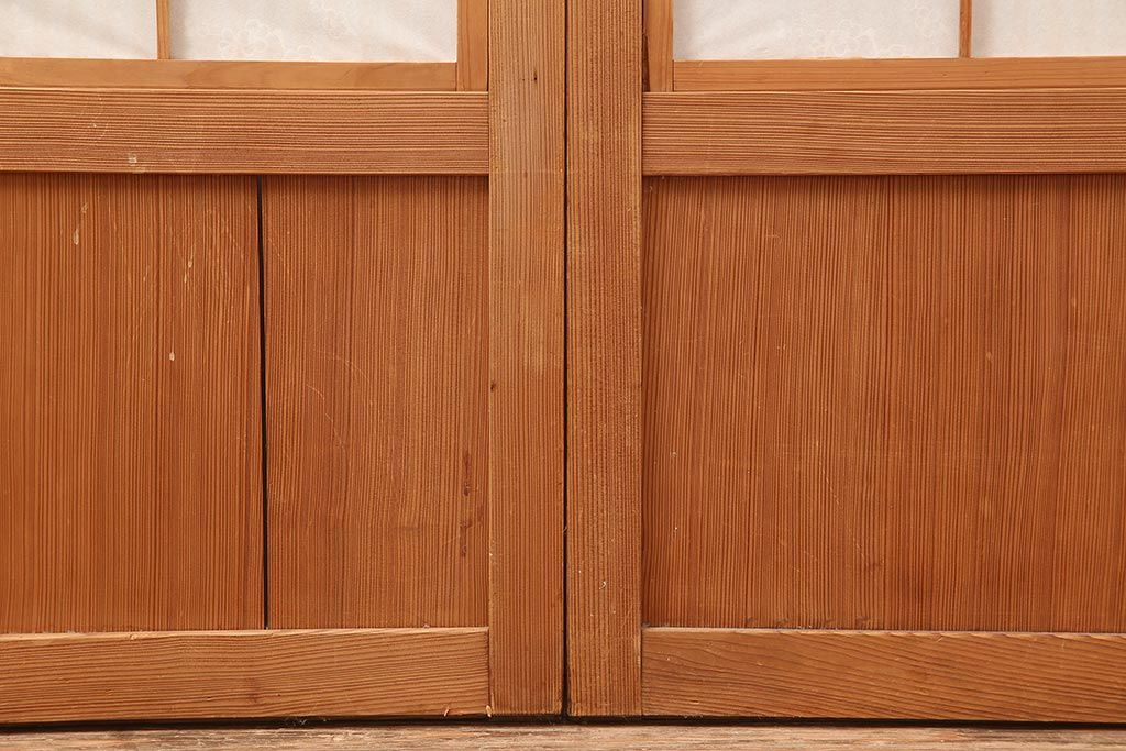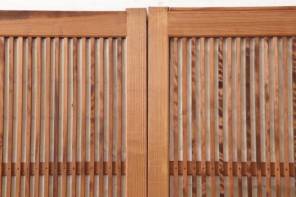 ラフジュ工房> ドア・建具> 板戸・帯戸 > アンティーク建具 昭和中期 裏障子付き 和風スタイルにおすすめな帯格子戸2枚セット(障子戸、引き戸、建具)(R-045839)