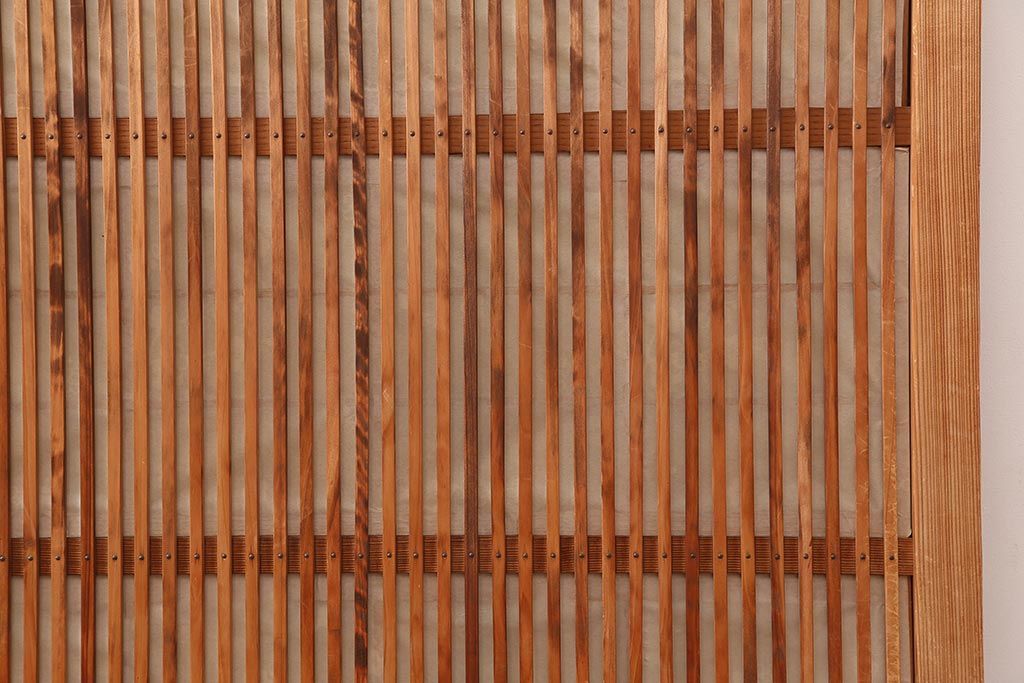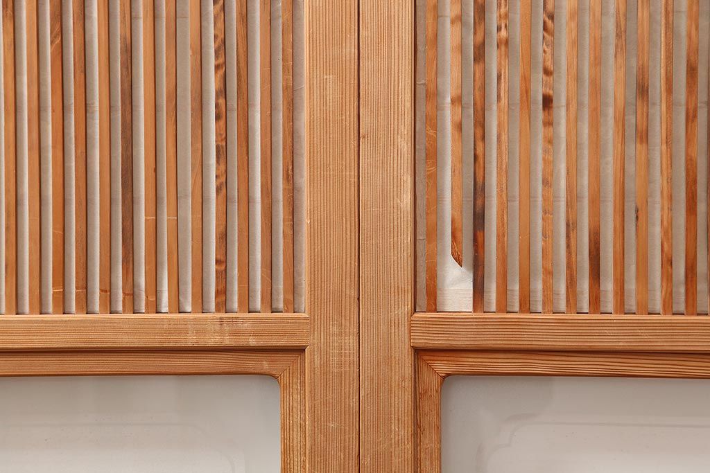 ラフジュ工房> ドア・建具> 引き戸 > アンティーク建具 昭和中期 裏障子付き 和風スタイルにおすすめな帯格子戸2枚セット(障子戸、引き戸、建具)(R-045839)