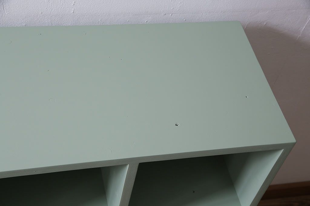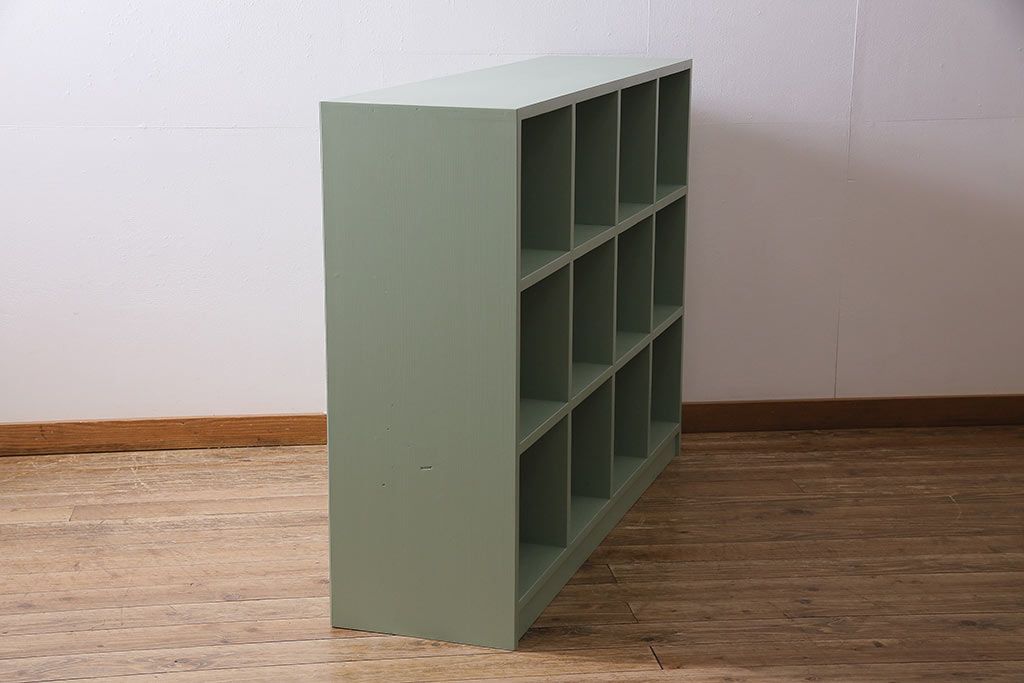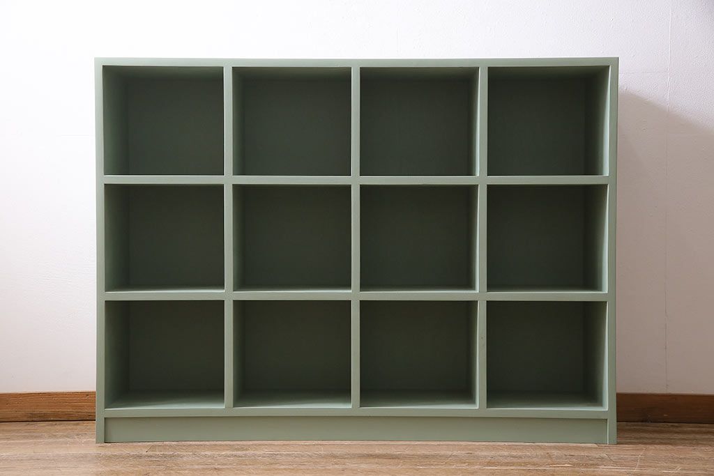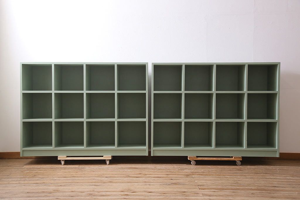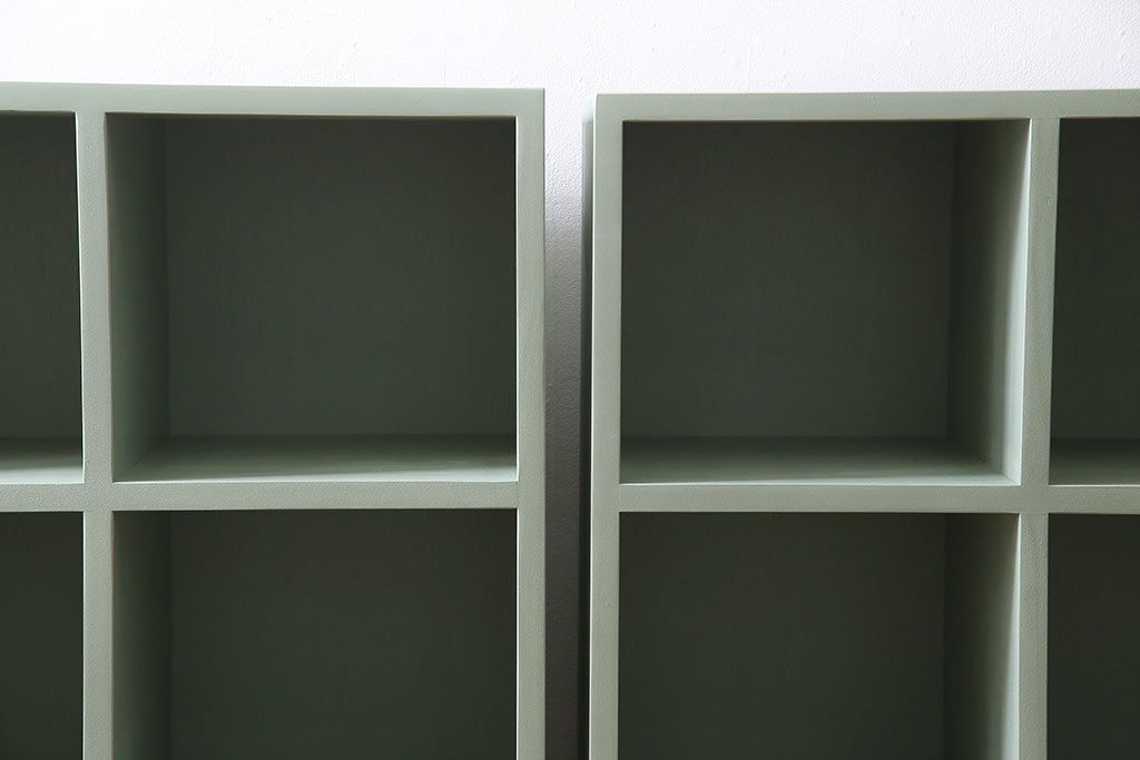 マス目棚2台を新規製作!ヒノキ無垢材を使用。青緑のペイント仕上げ。(子供用ロッカー、収納棚、オープンラック)