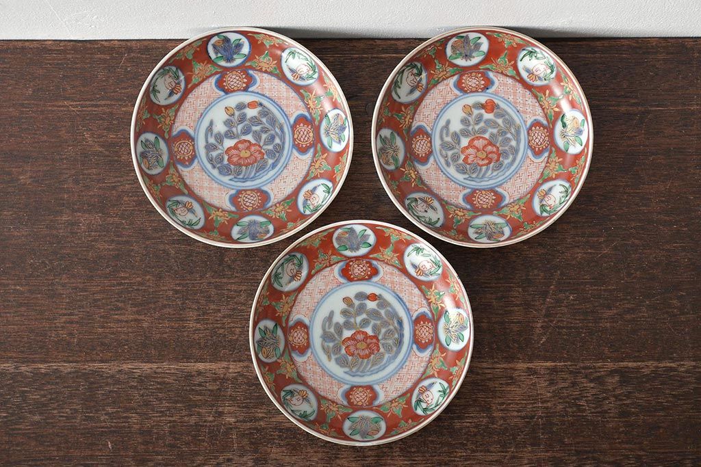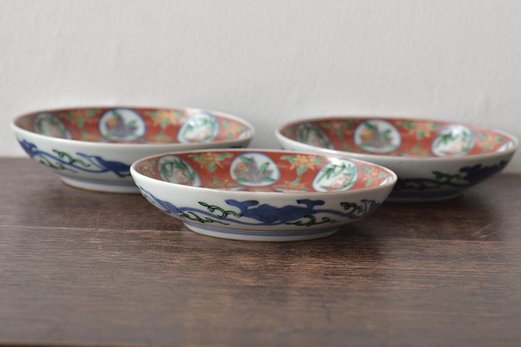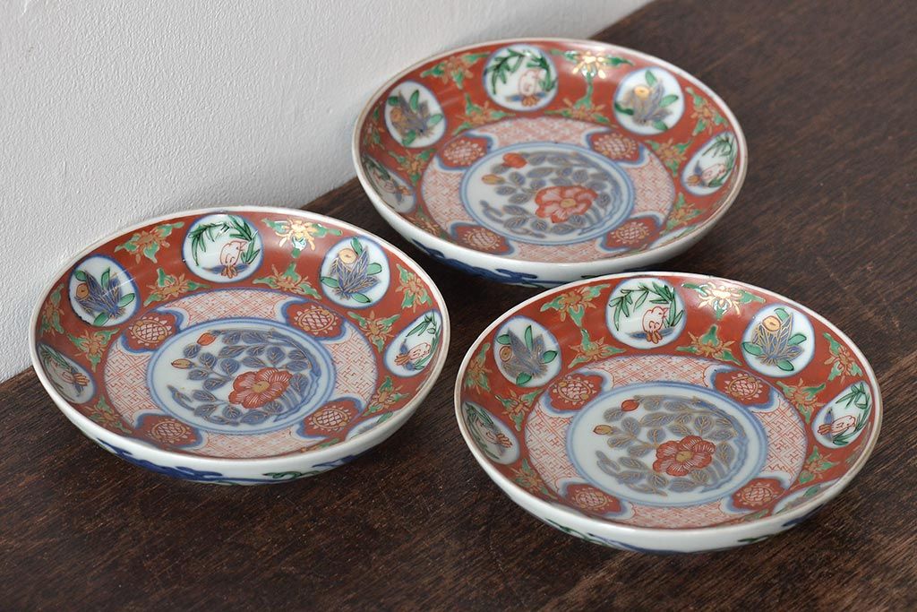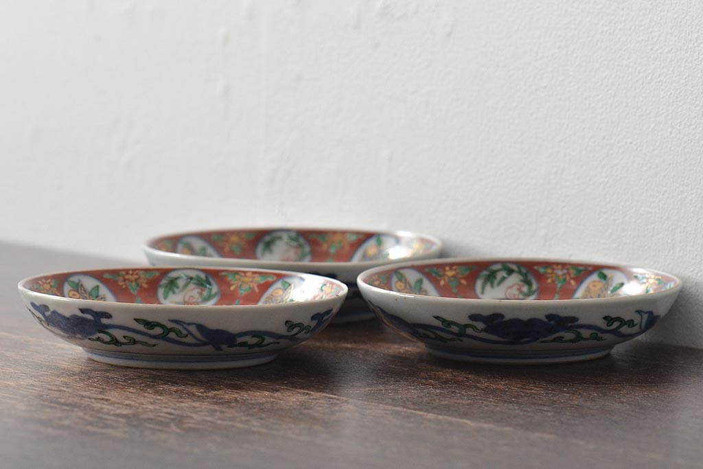 ラフジュ工房> 和食器・茶道具 > 江戸期 古伊万里 大明嘉靖年製 花鳥図 色絵染付小皿3枚セット(R-045685)