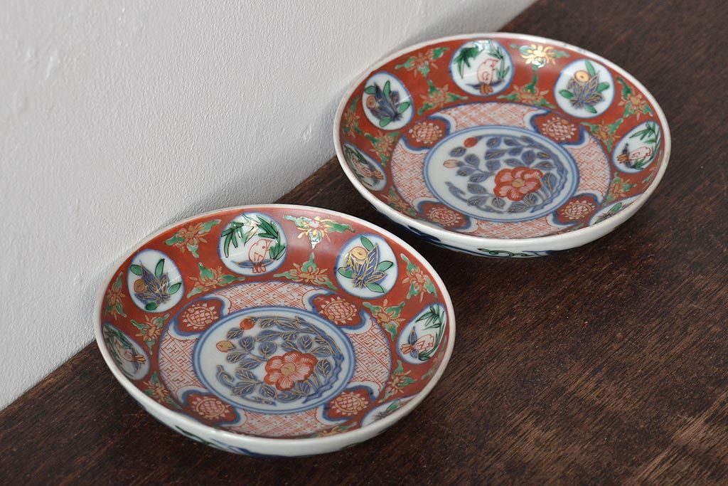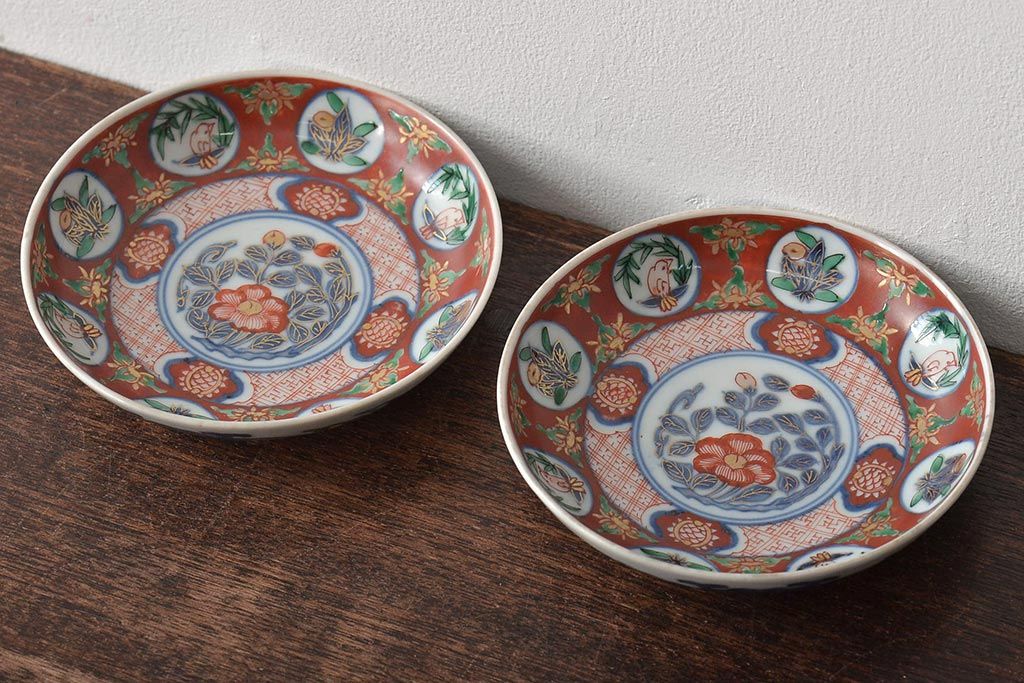 ラフジュ工房> 和食器・茶道具> 皿 > 江戸期 古伊万里 大明嘉靖年製 花鳥図 色絵染付小皿2枚セット(R-045717)