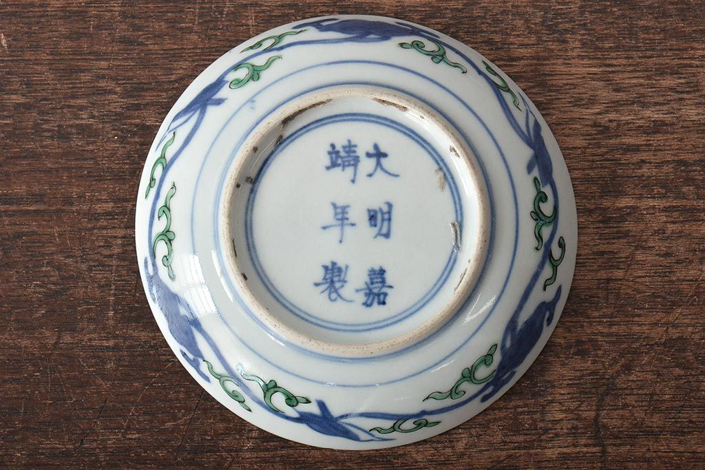 ラフジュ工房> 骨董・美術品> 骨董-陶磁器 > 江戸期 古伊万里 大明嘉靖年製 花鳥図 色絵染付小皿2枚セット(R-045717)