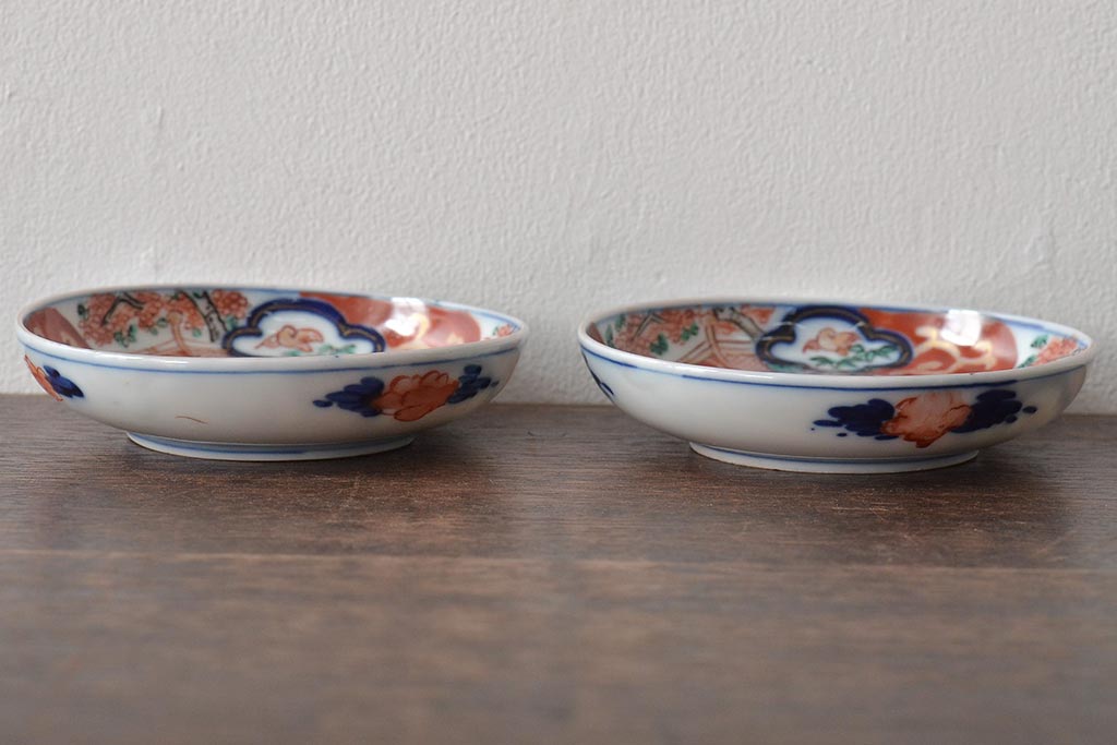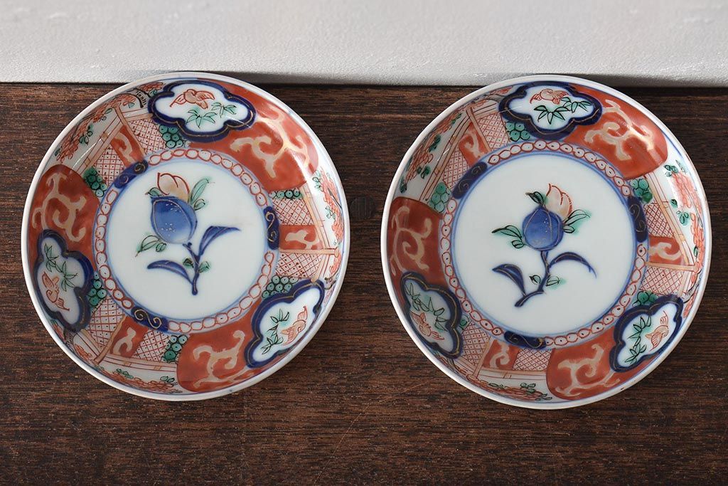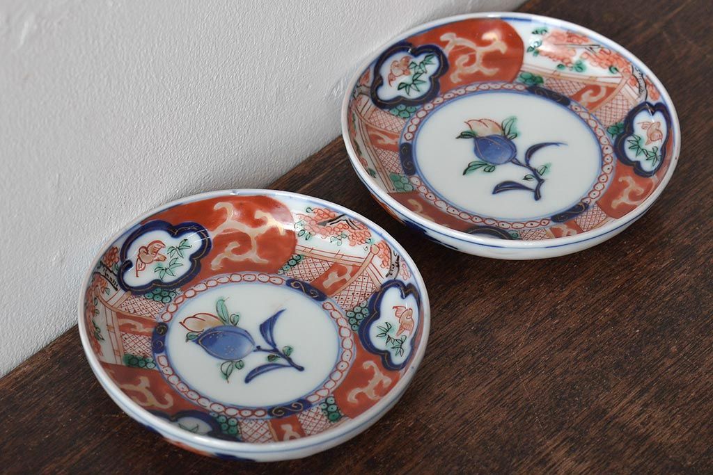 ラフジュ工房> 骨董・美術品> 骨董-陶磁器 > 江戸期 古伊万里 花鳥図 色絵小皿2枚セット(R-045719)