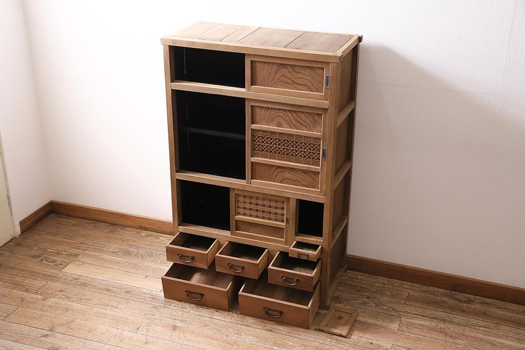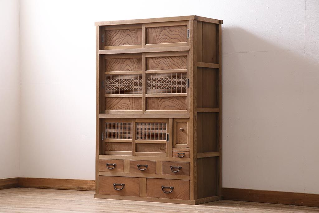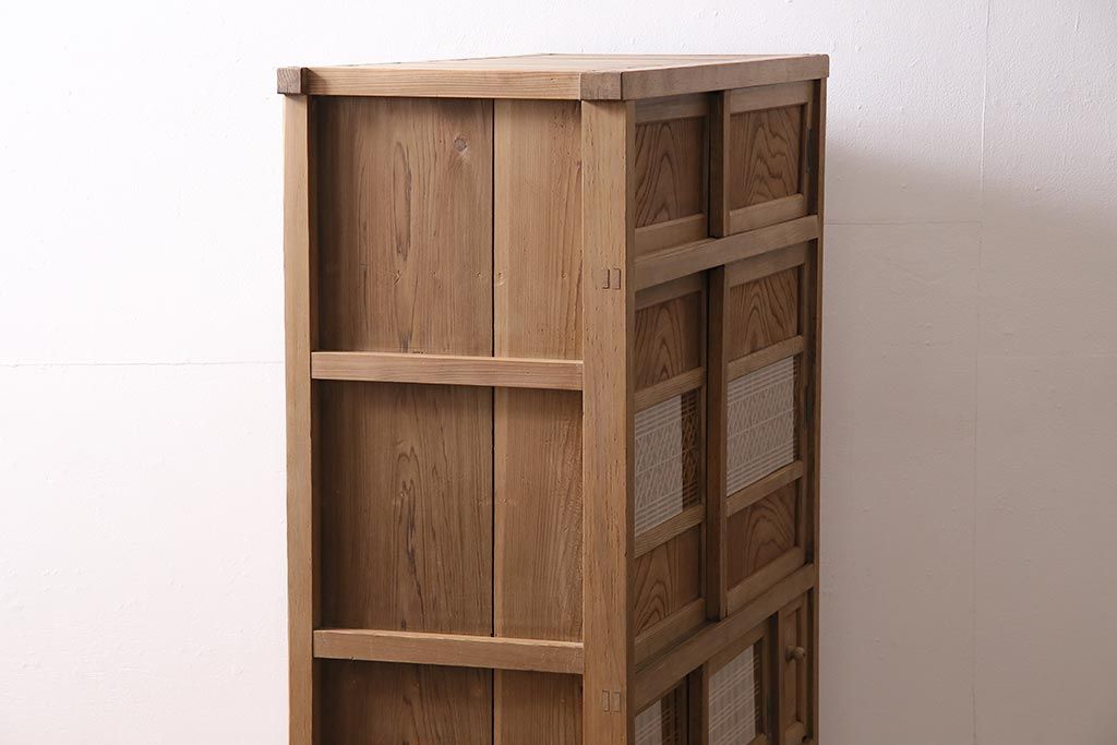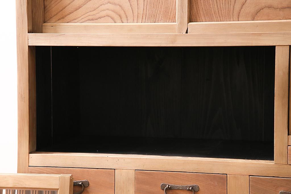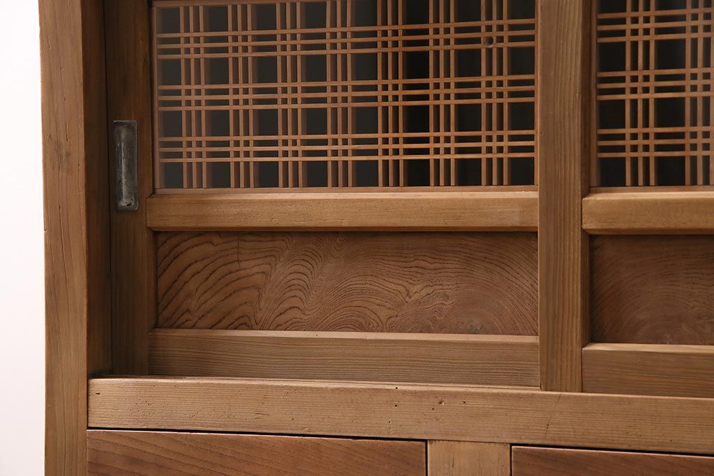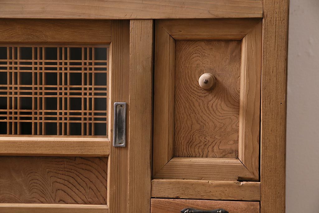 ラフジュ工房> 和箪笥> 水屋箪笥 > アンティーク家具 ストリップド(剥離) 組子がおしゃれな和風の戸棚(収納棚、水屋箪笥)(R-045853)