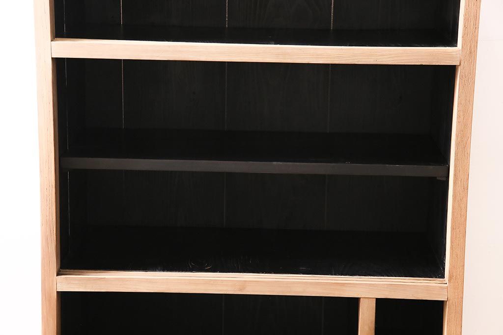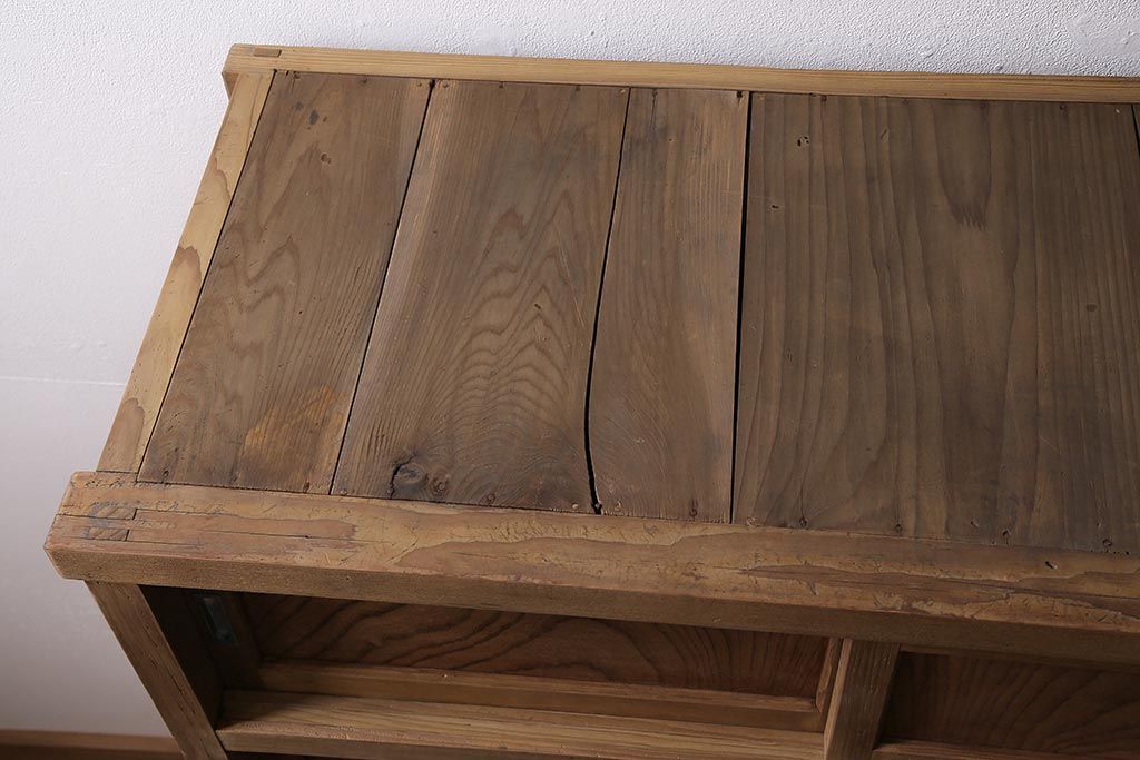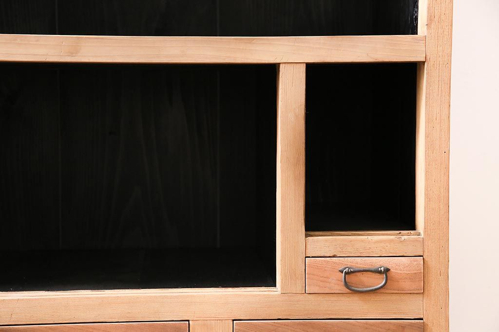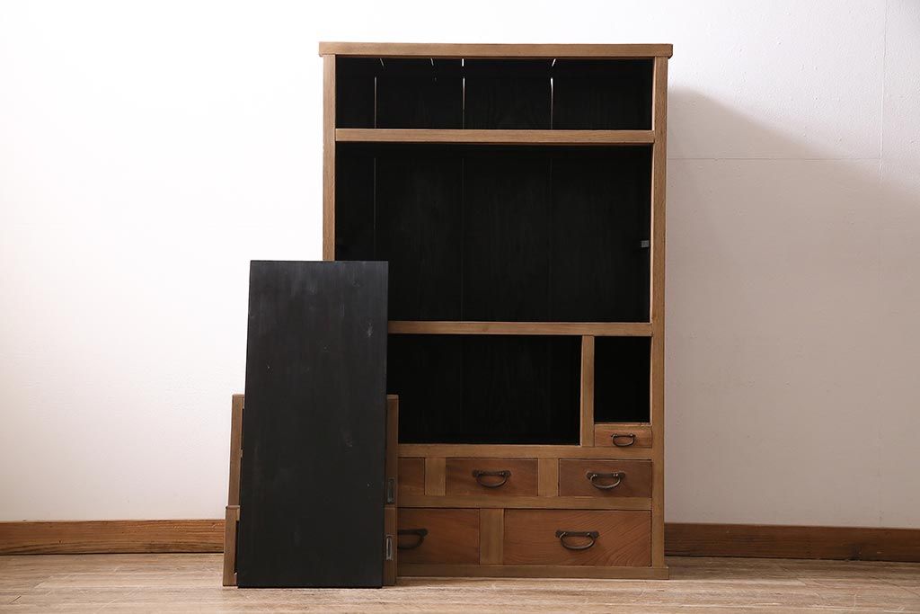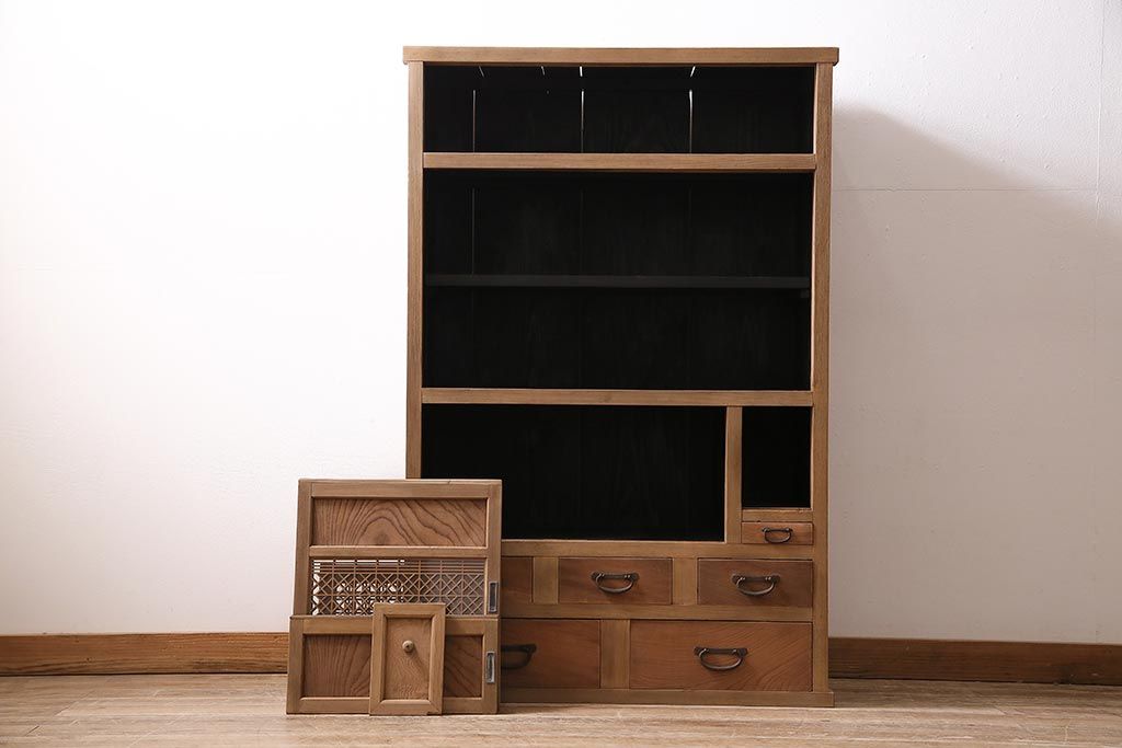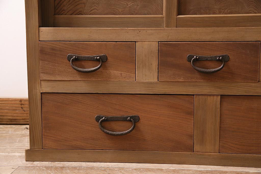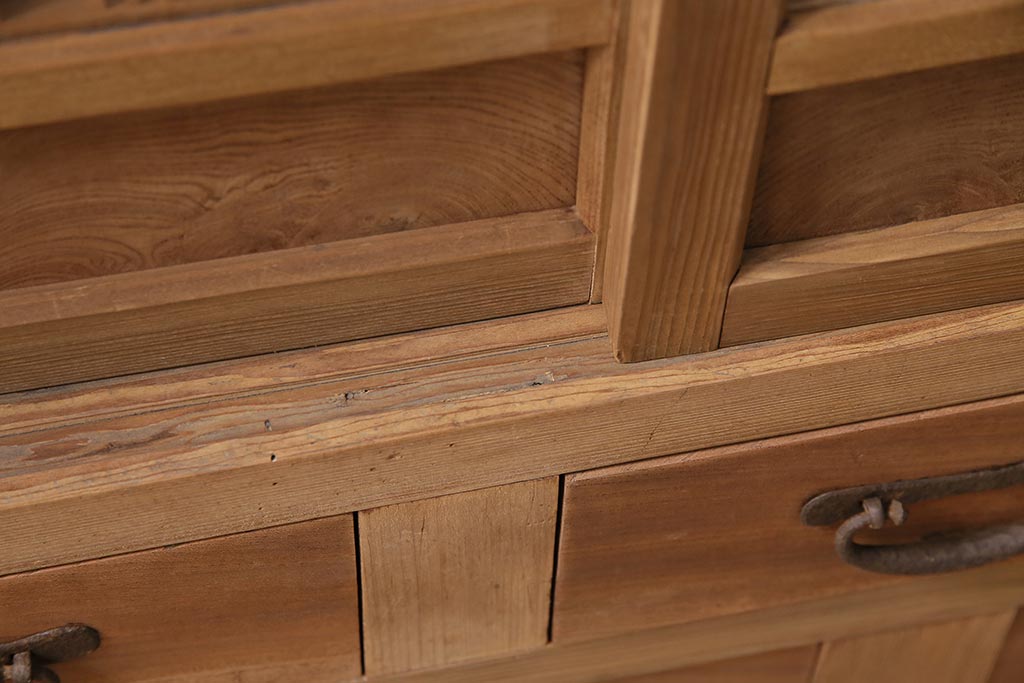 ラフジュ工房> キャビネット・戸棚> 食器棚・カップボード > アンティーク家具 ストリップド(剥離) 組子がおしゃれな和風の戸棚(収納棚、水屋箪笥)(R-045853)
