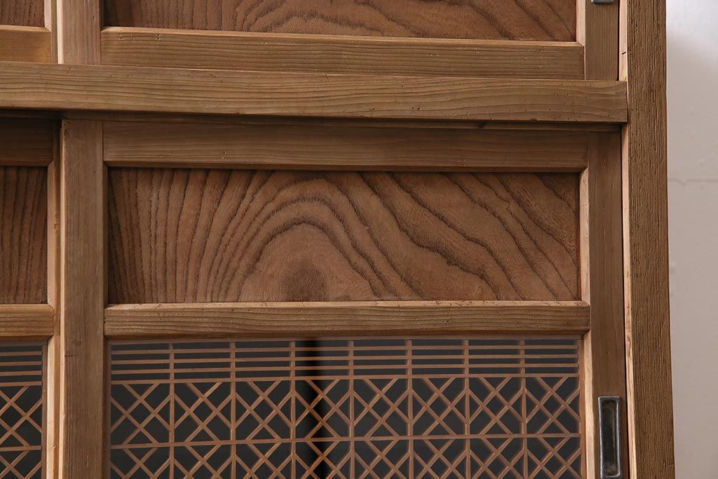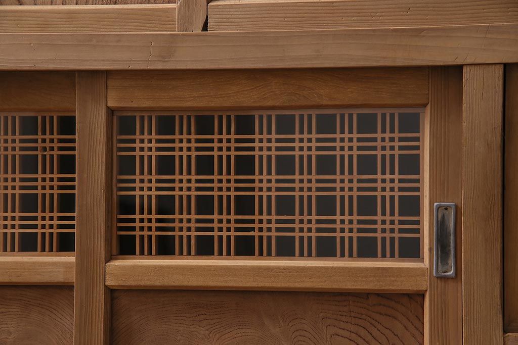アンティーク家具 ストリップド(剥離) 組子がおしゃれな和風の戸棚(収納棚、水屋箪笥)(R-045853)