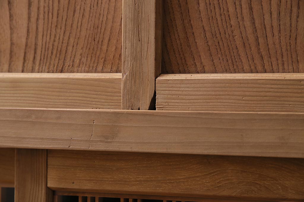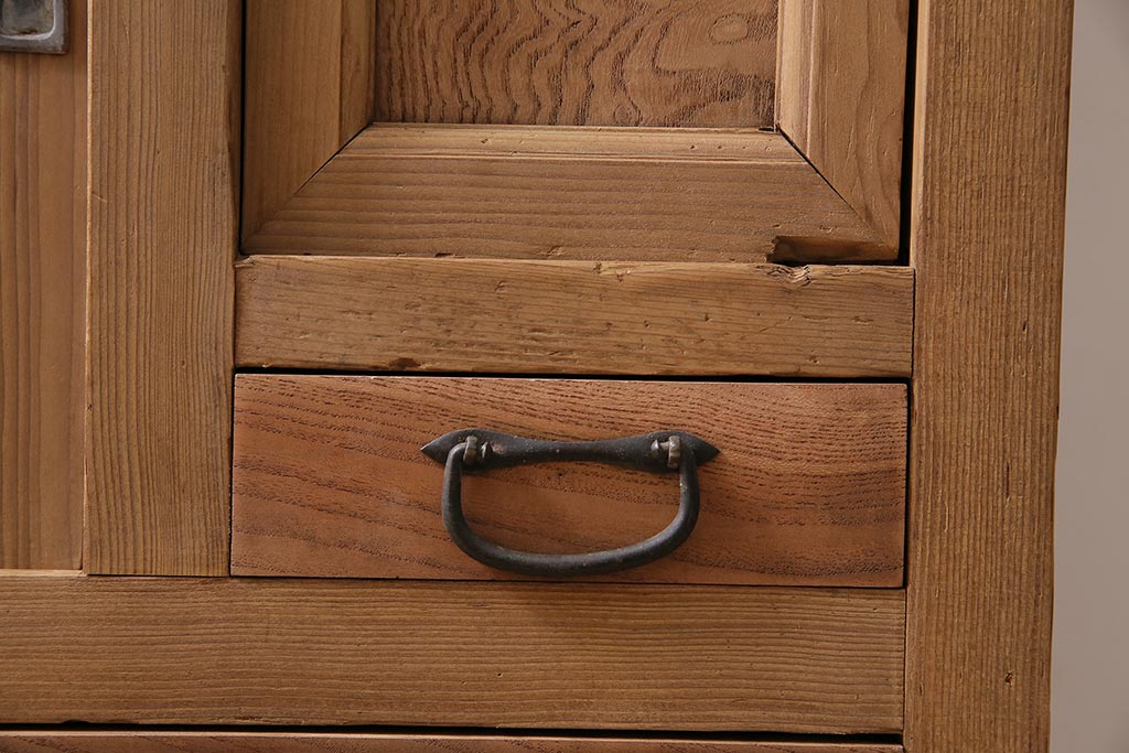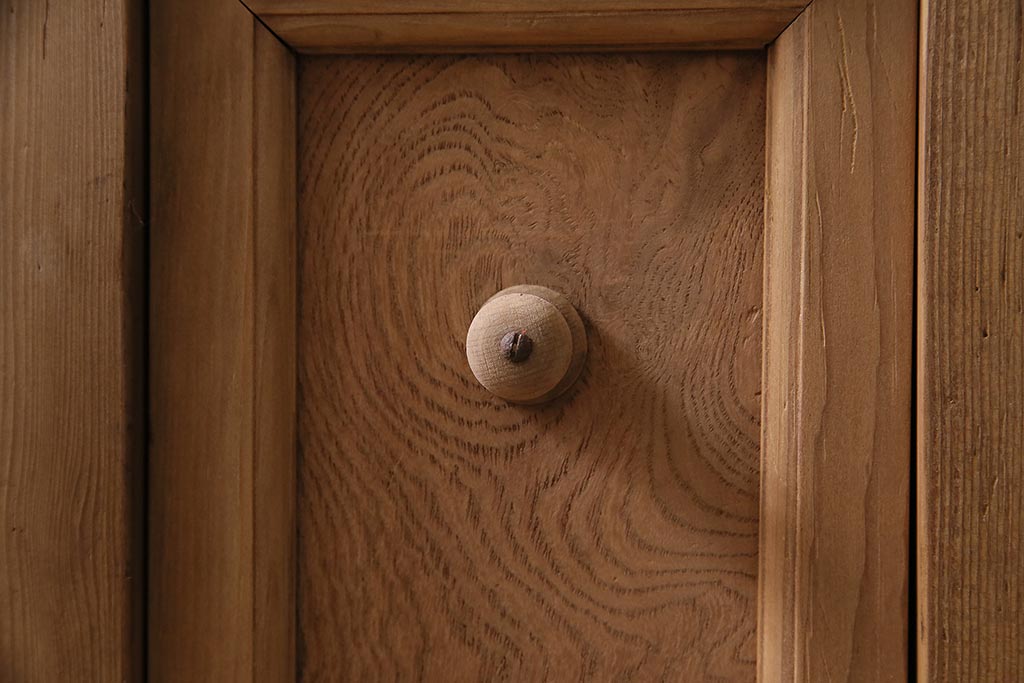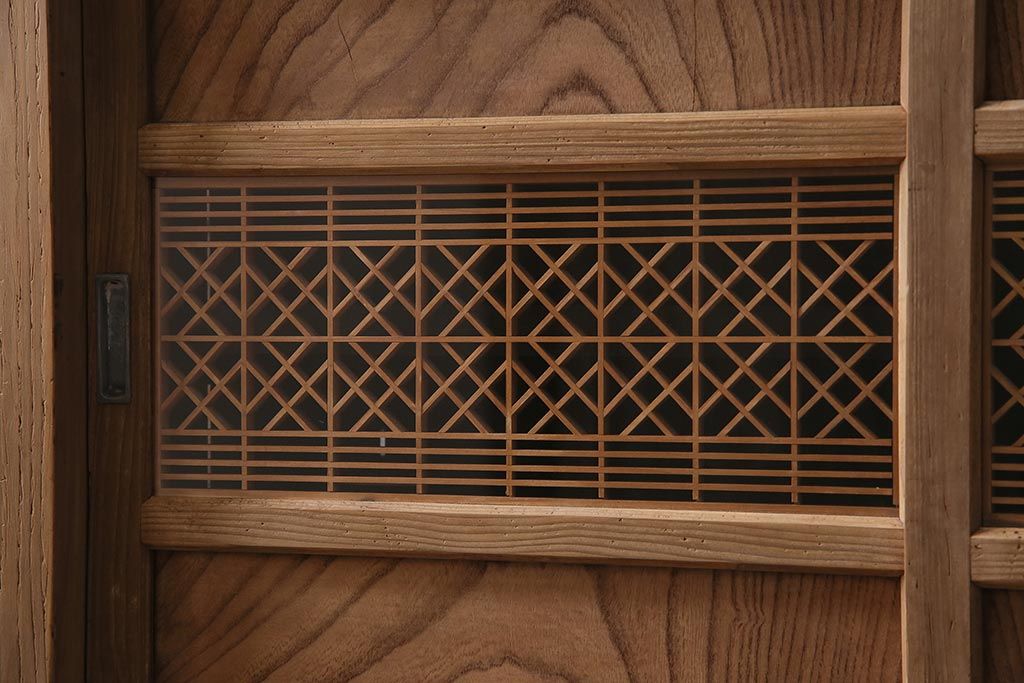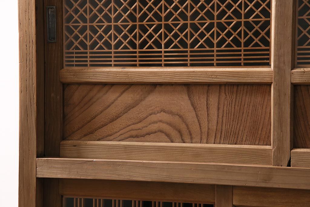 ラフジュ工房> ストリップド(剥離)家具 > アンティーク家具 ストリップド(剥離) 組子がおしゃれな和風の戸棚(収納棚、水屋箪笥)(R-045853)