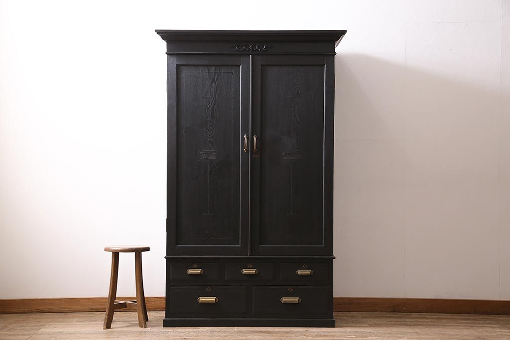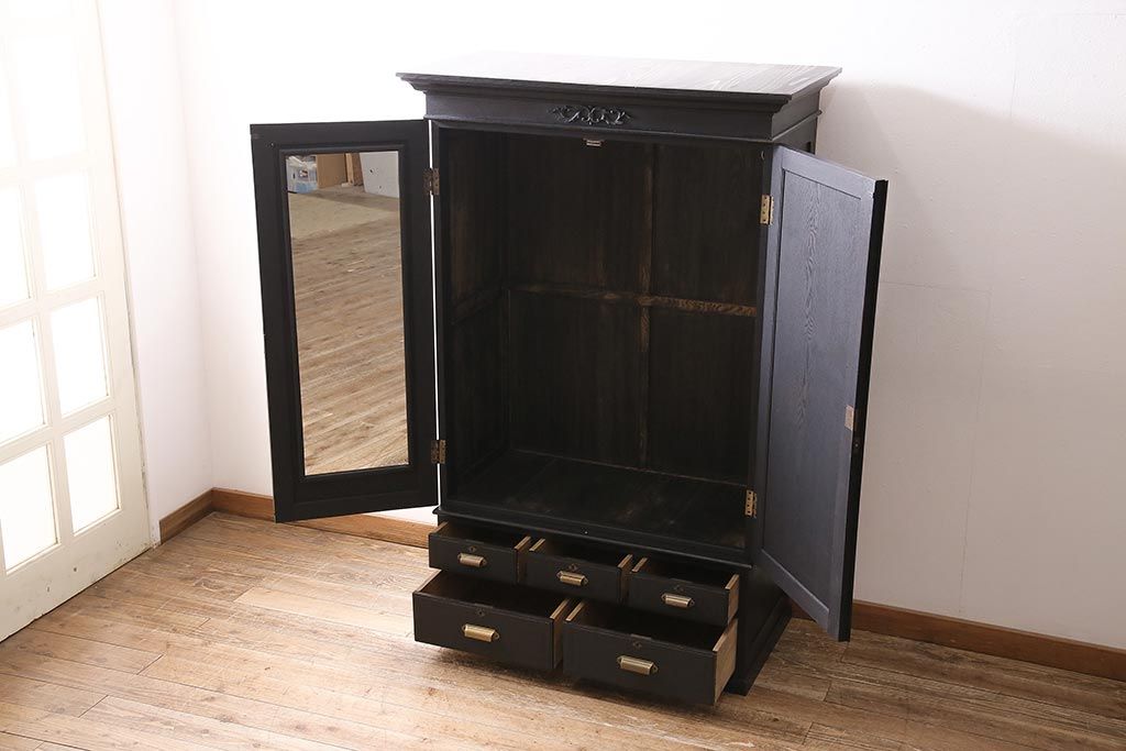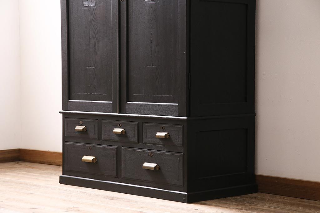 ラフジュ工房> ワードローブ・ロッカー> ワードローブ > アンティーク家具 大正ロマン ナラ材 上手物のシックなワードローブ(クローゼット)(R-045856)