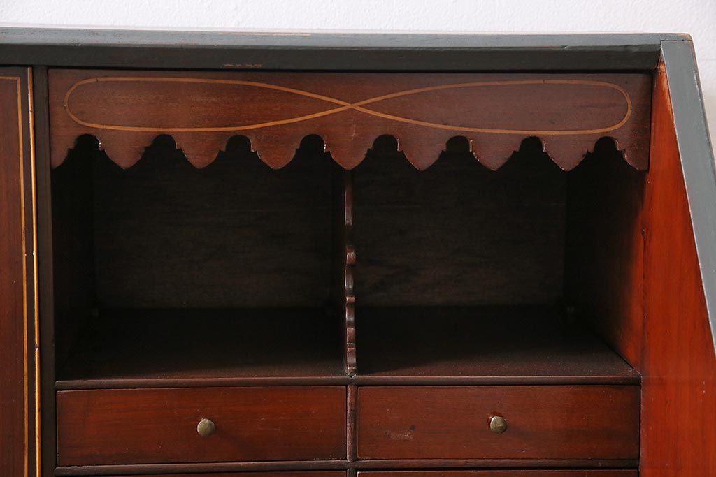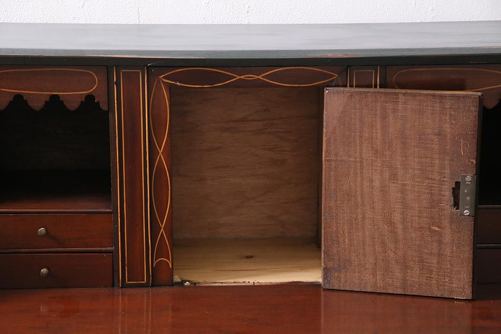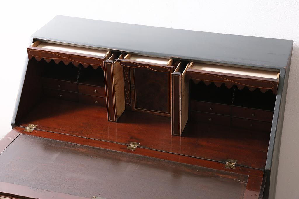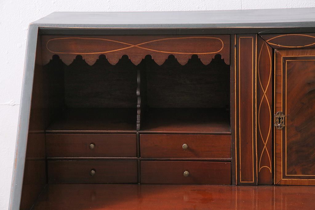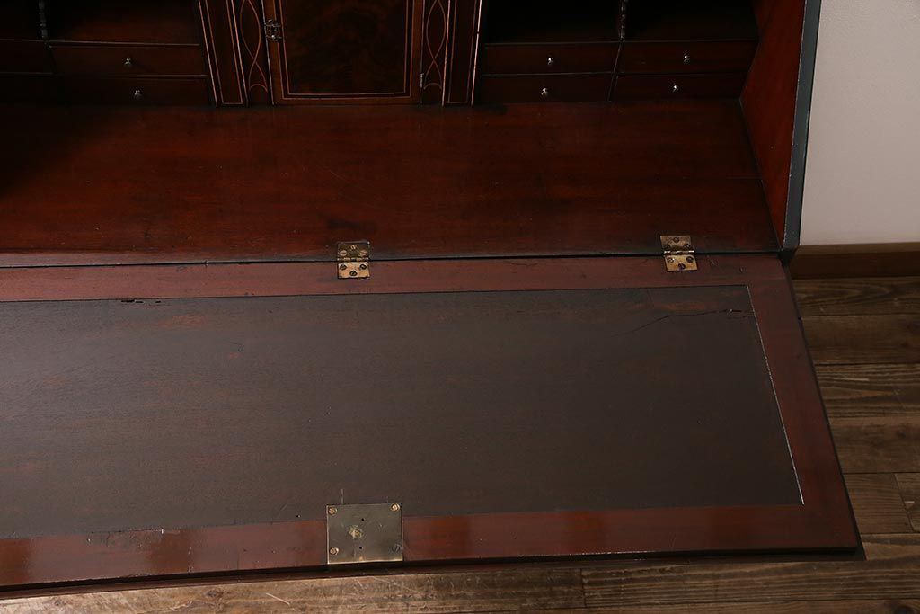 ラフジュ工房> デスク> ワークデスク > アンティーク家具 イギリスアンティーク マホガニー材 内部まで意匠が凝っているおしゃれなライティングビューロー(簿記机、在宅ワーク、在宅用ワークデスク)(R-045806)