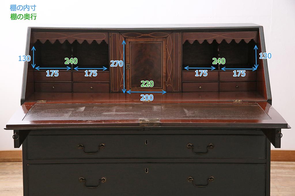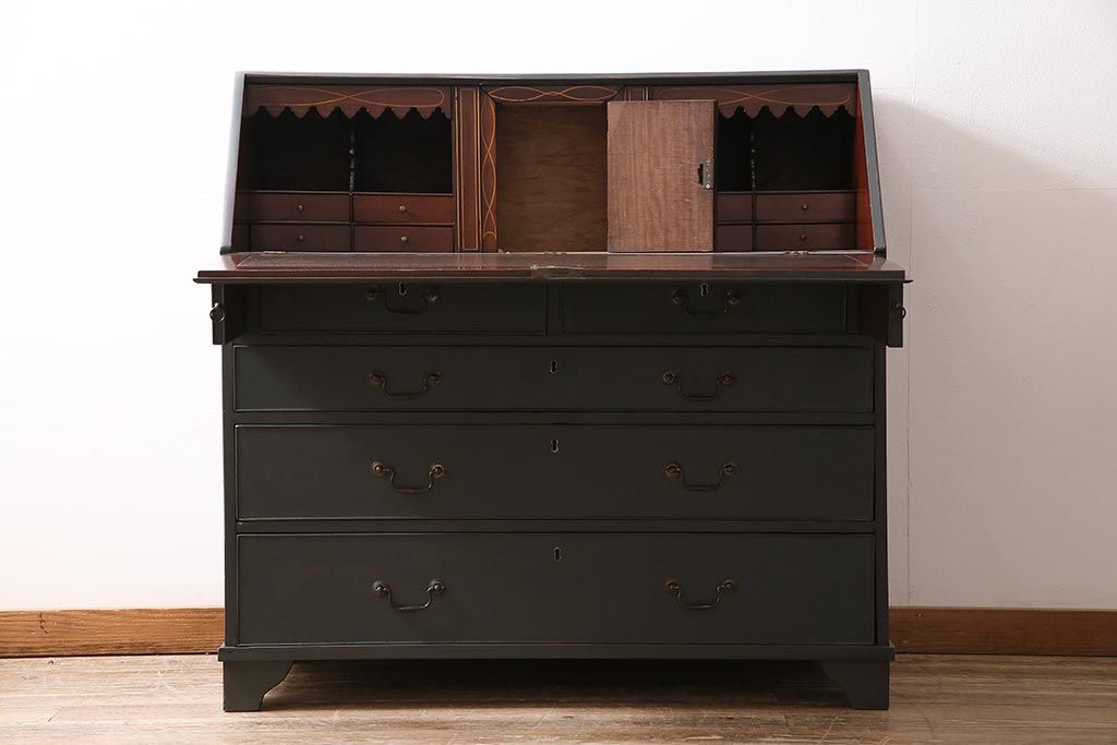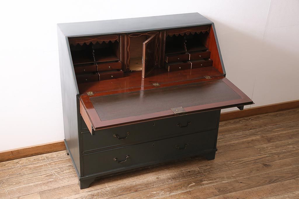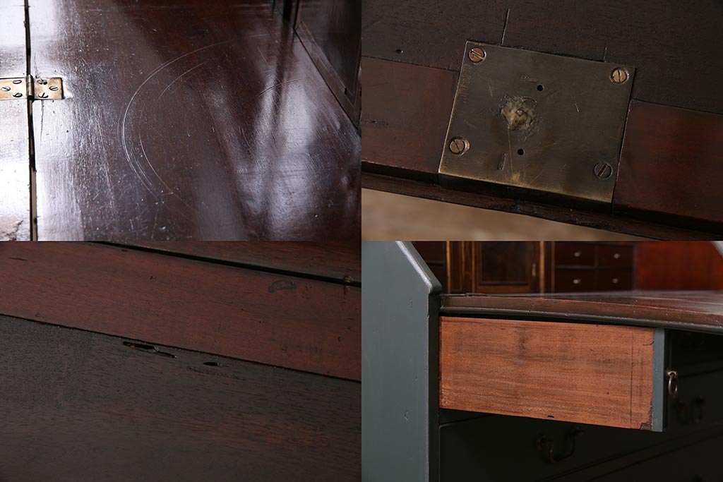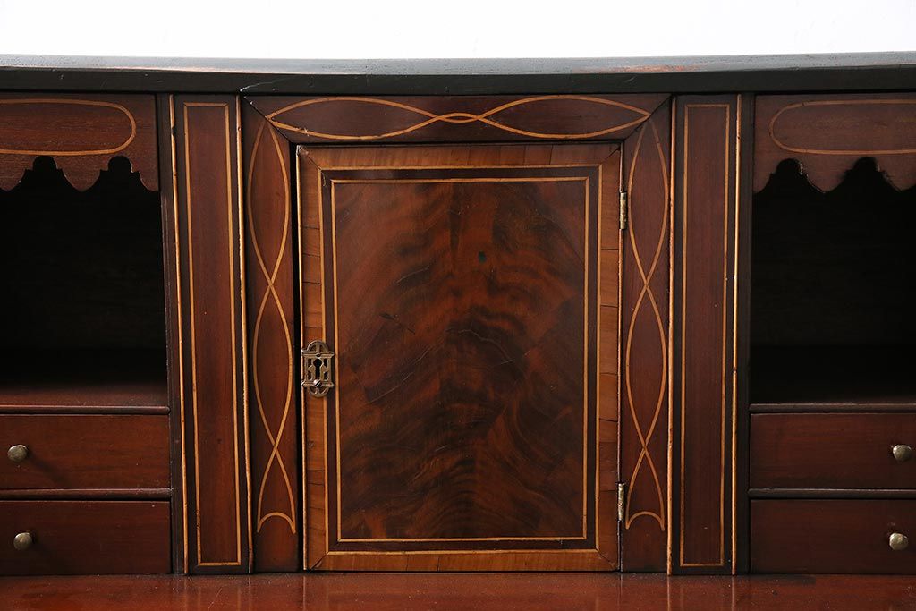 ラフジュ工房> デスク> ワークデスク > アンティーク家具 イギリスアンティーク マホガニー材 内部まで意匠が凝っているおしゃれなライティングビューロー(簿記机、在宅ワーク、在宅用ワークデスク)(R-045806)
