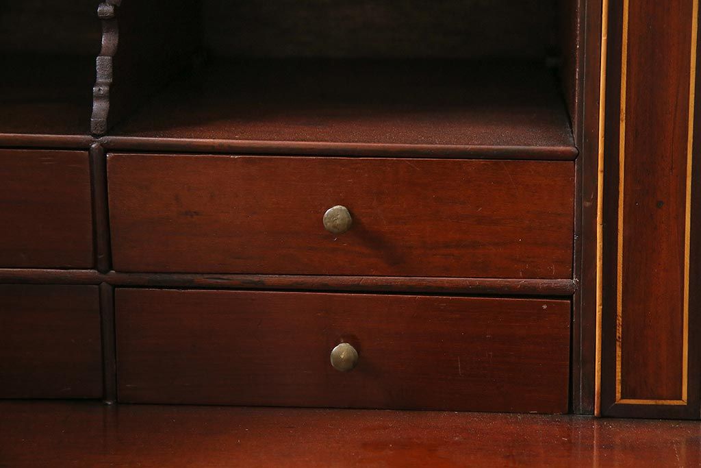 ラフジュ工房> デスク> ライティングビューロー・簿記机 > アンティーク家具 イギリスアンティーク マホガニー材 内部まで意匠が凝っているおしゃれなライティングビューロー(簿記机、在宅ワーク、在宅用ワークデスク)(R-045806)