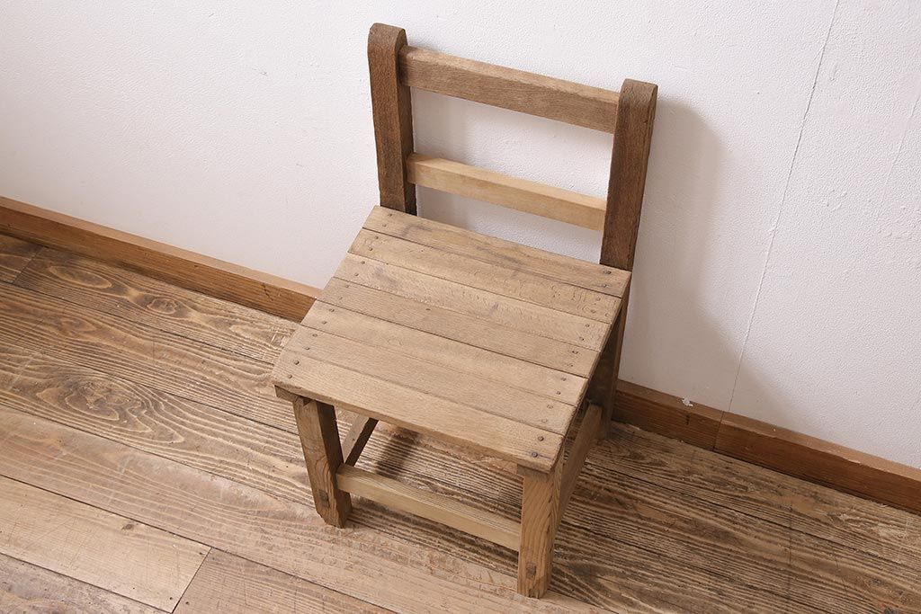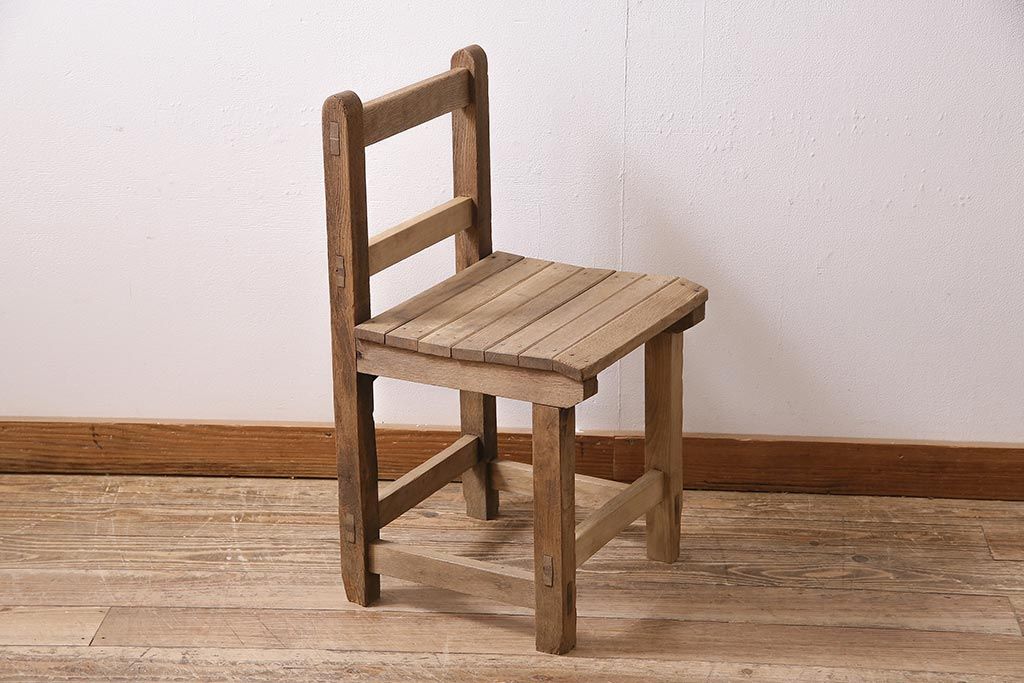 ラフジュ工房> 椅子・ベンチ> キッズチェア・スクールチェア > アンティーク家具 昭和初期 ストリップド(剥離) カシ材 懐かしさ感じるスクールチェア(木製チェア、椅子、板座チェア)(R-045911)