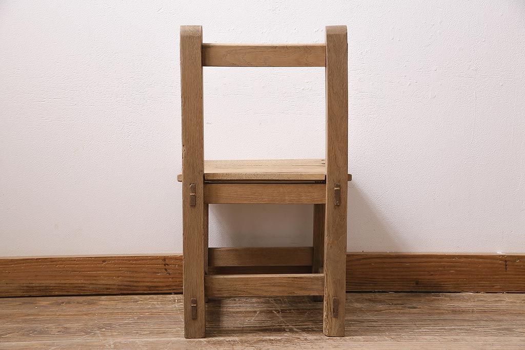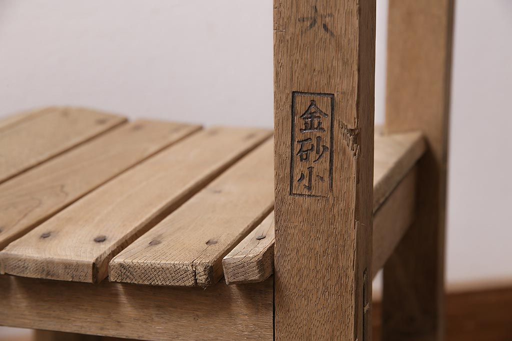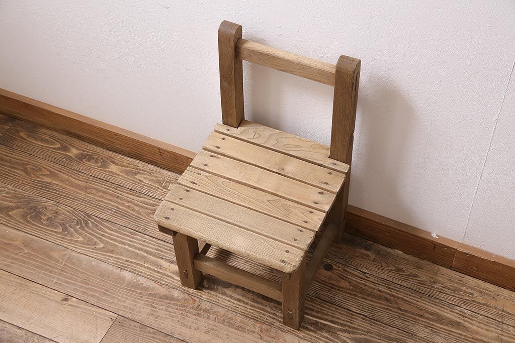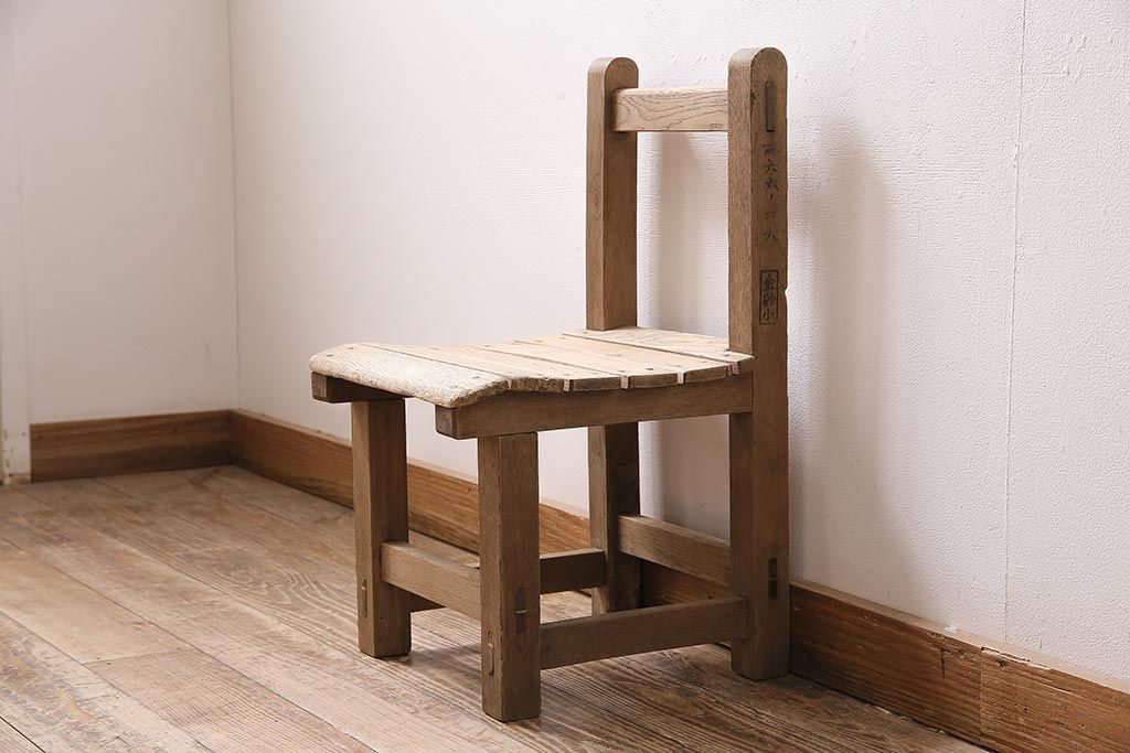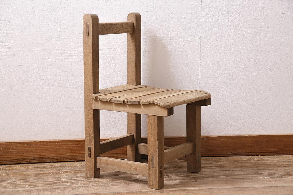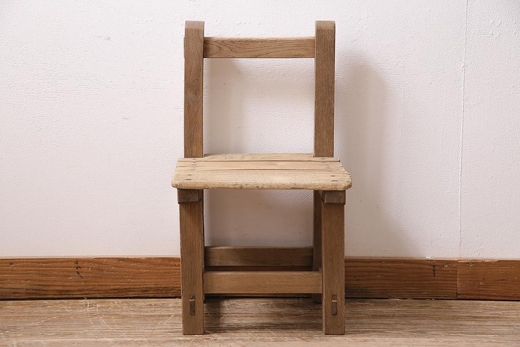 ラフジュ工房> 椅子・ベンチ> キッズチェア・スクールチェア > アンティーク家具 昭和初期 ストリップド(剥離) カシ材 懐かしさ感じる小振りなスクールチェア(木製チェア、椅子、板座チェア)(R-045912)