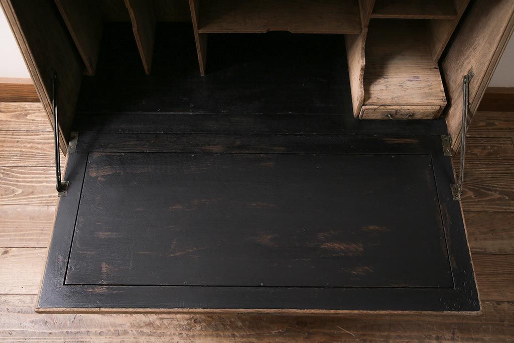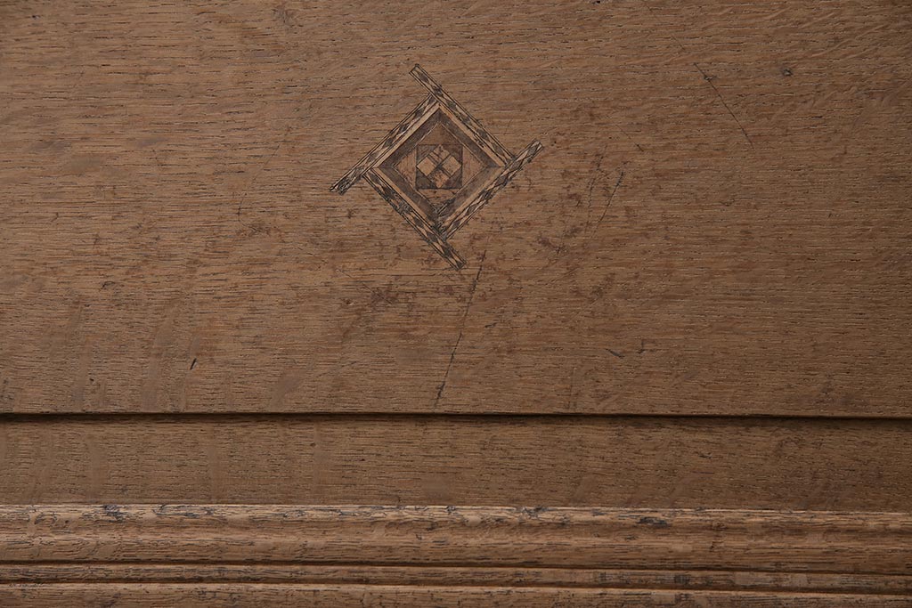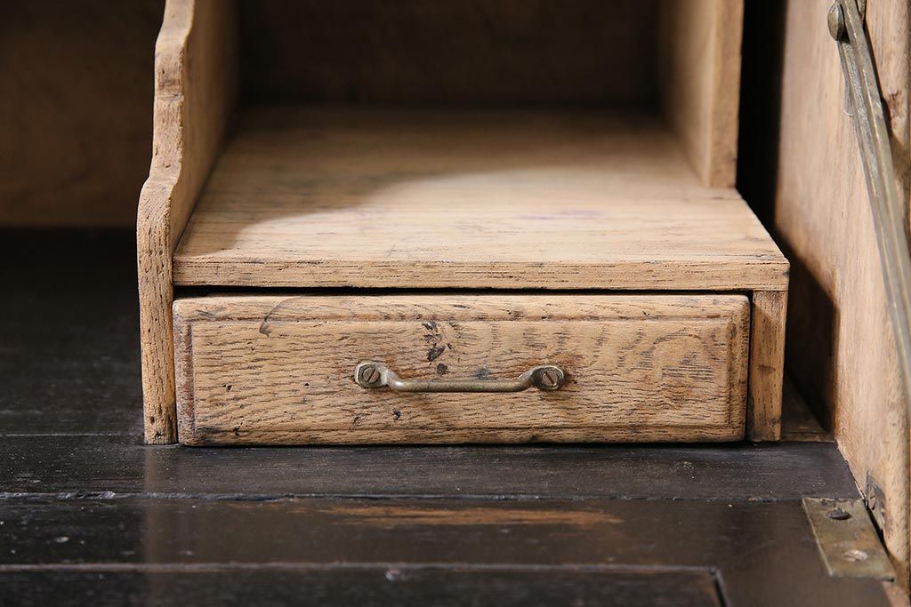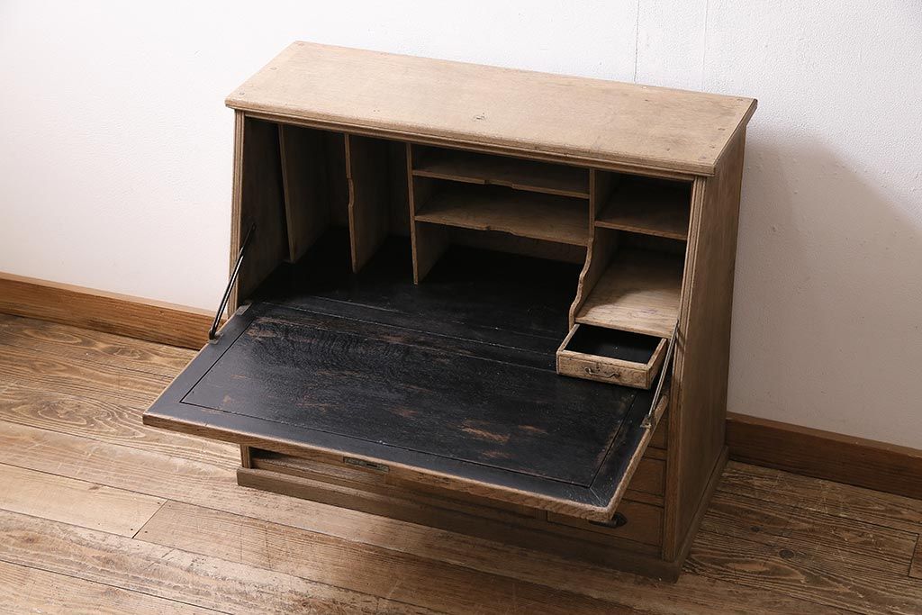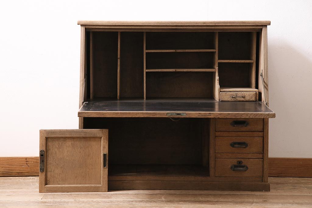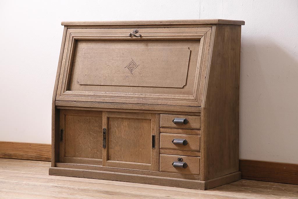ラフジュ工房> ストリップド(剥離)家具 > アンティーク家具 昭和初期 ストリップド(剥離) ナラ材 象嵌入り 和と洋どちらのお部屋にも合うライティングビューロー(簿記机、在宅ワーク、在宅用ワークデスク)(R-040307)