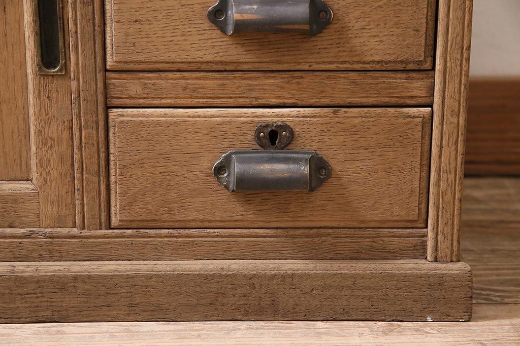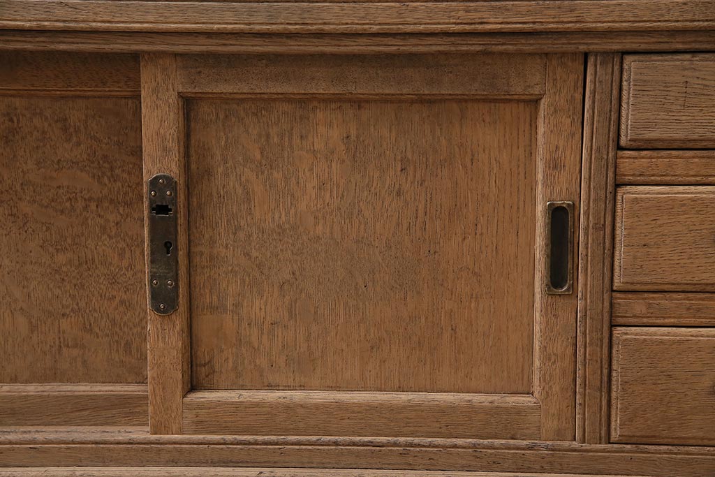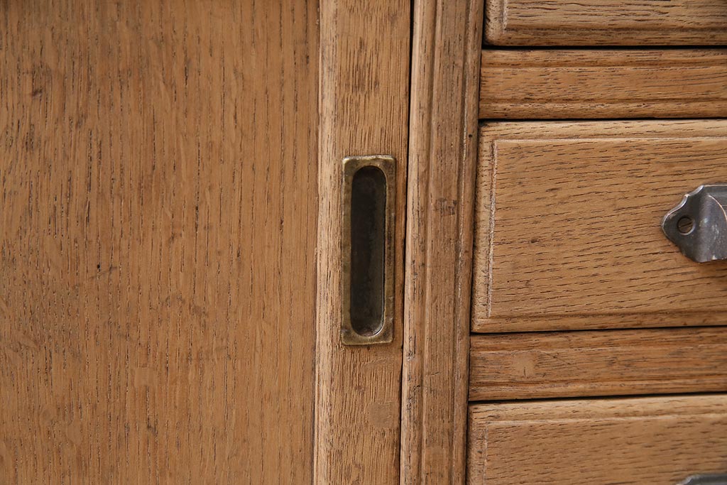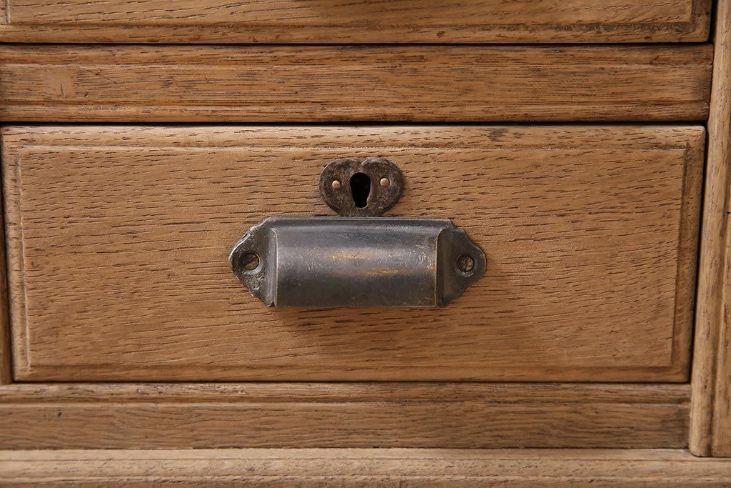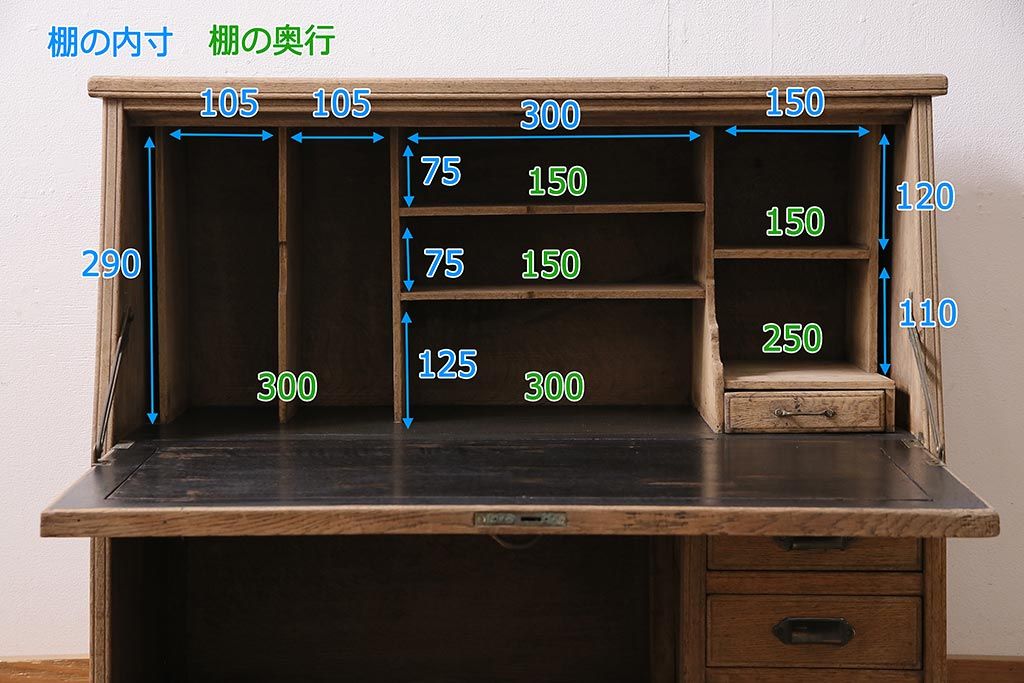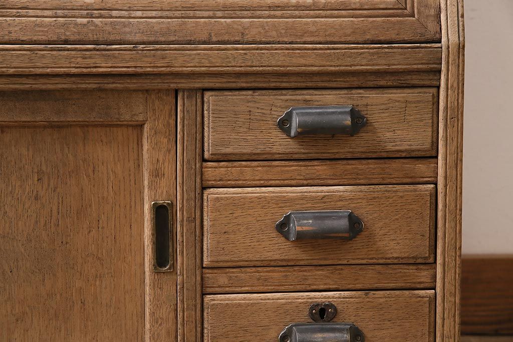 ラフジュ工房> ストリップド(剥離)家具 > アンティーク家具 昭和初期 ストリップド(剥離) ナラ材 象嵌入り 和と洋どちらのお部屋にも合うライティングビューロー(簿記机、在宅ワーク、在宅用ワークデスク)(R-040307)