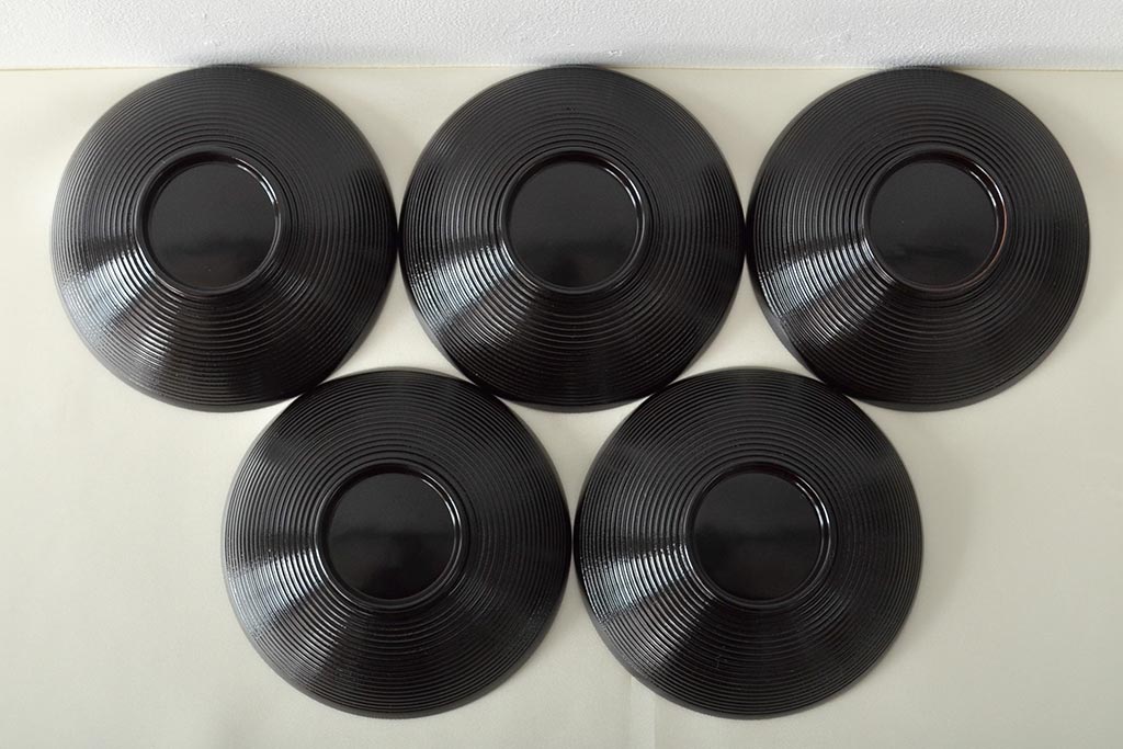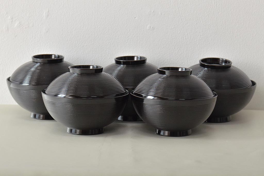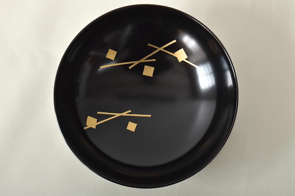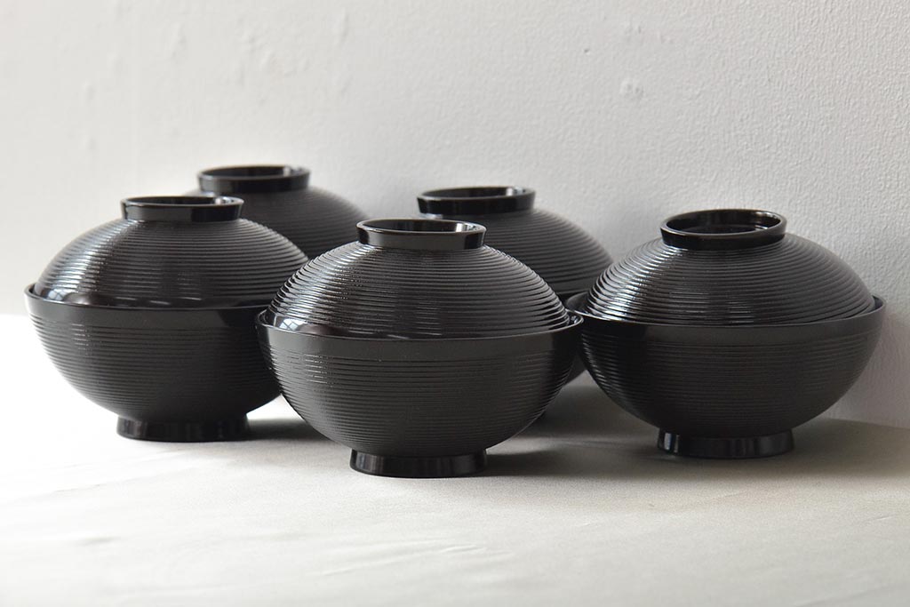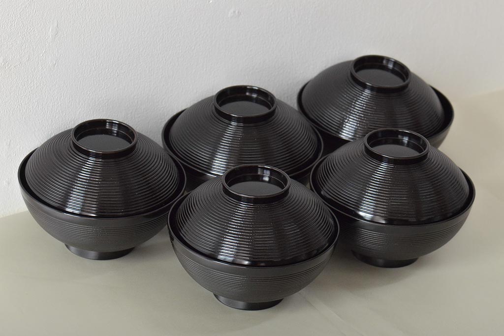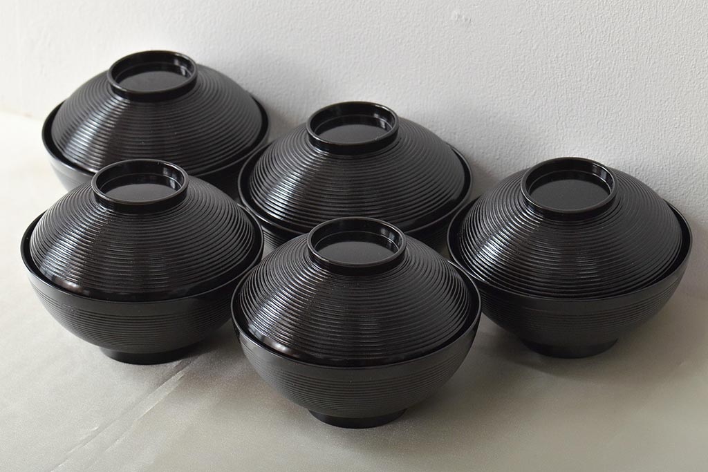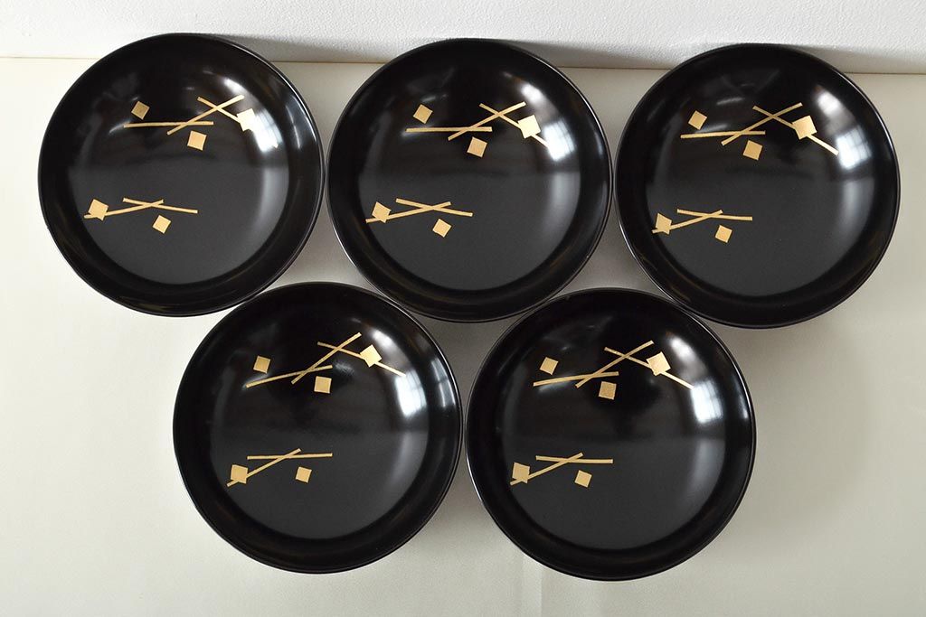初瀬川柳庵 糸目黒塗 切箔絵 木製 吸物椀5客(漆器)(R-045754)