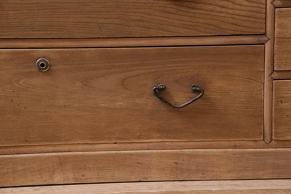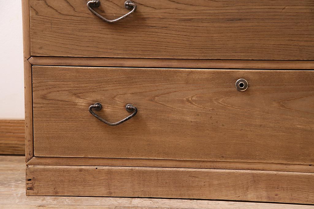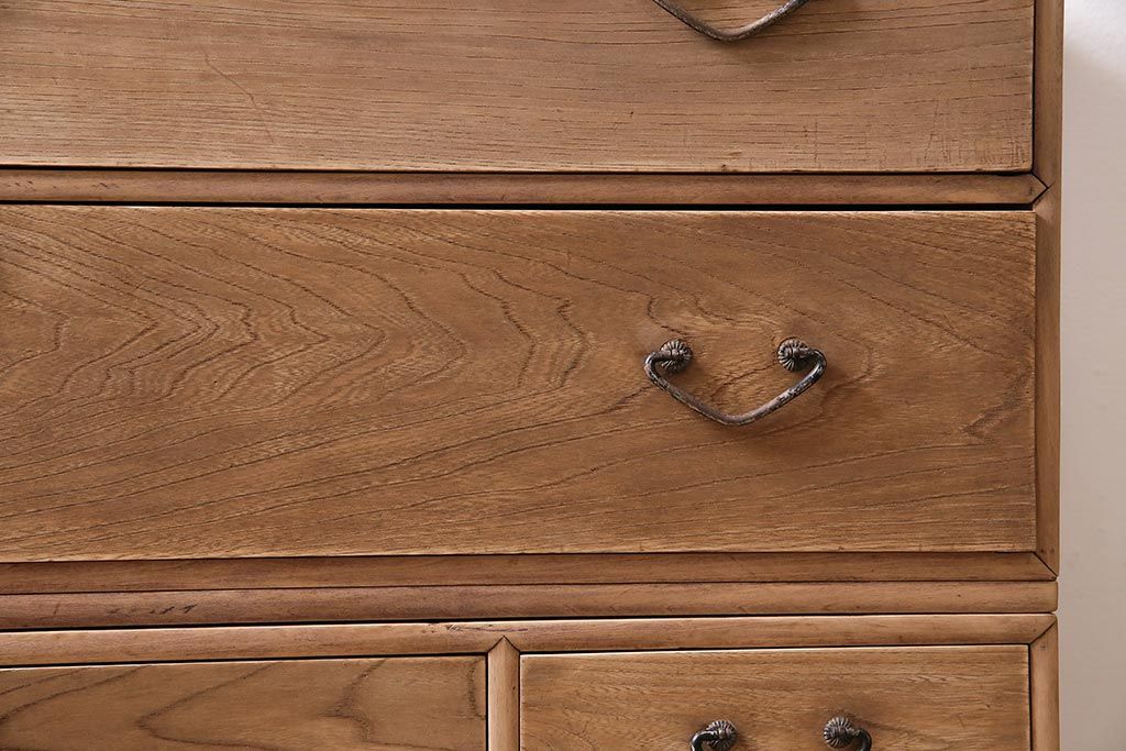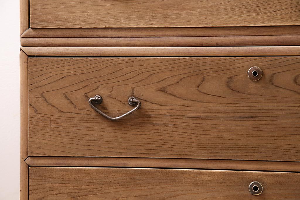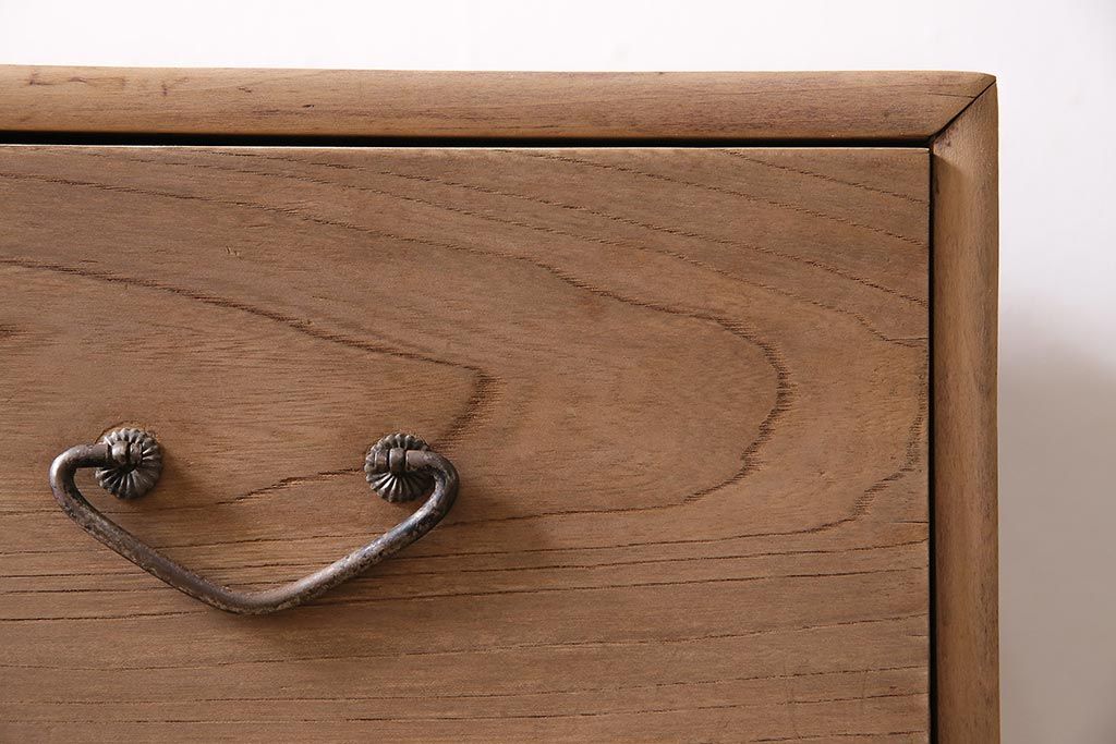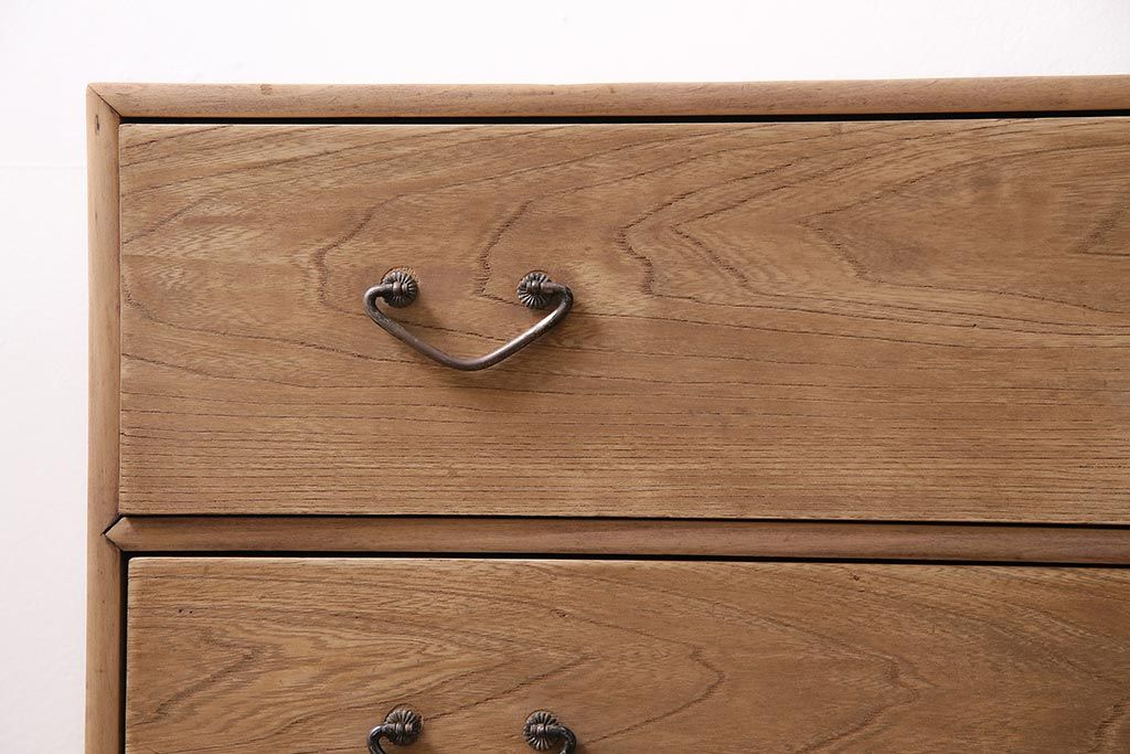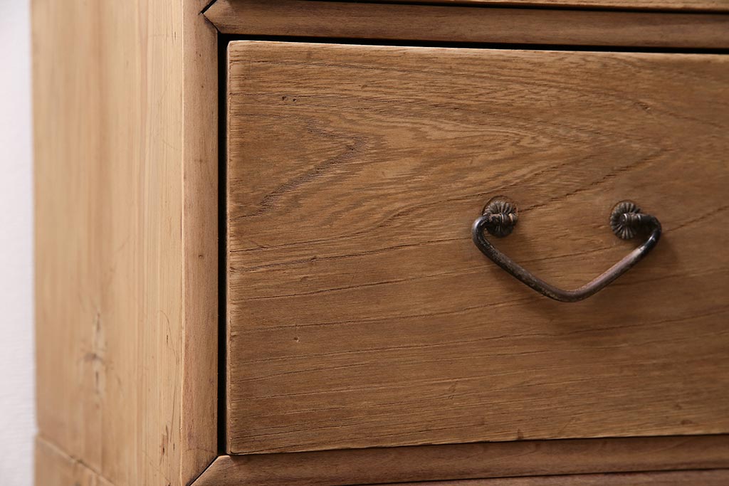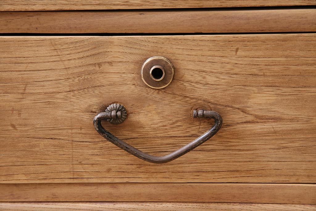 アンティーク家具 ストリップド(剥離) 栓材 細身の取っ手がモダンなチェスト(タンス、衣装箪笥)(R-045915)