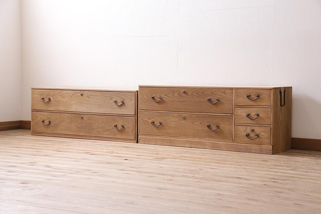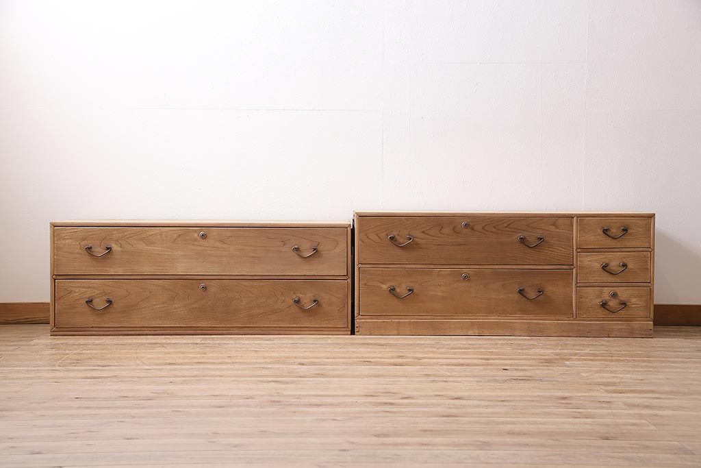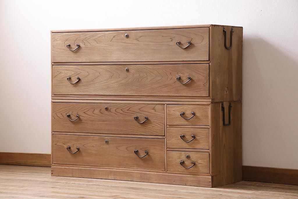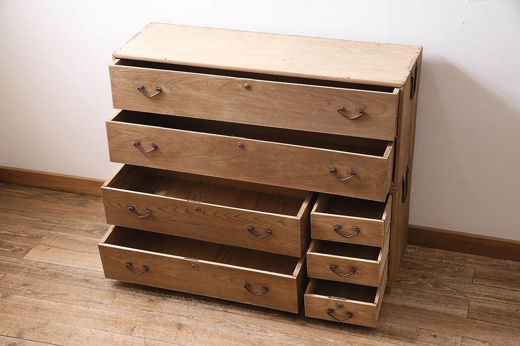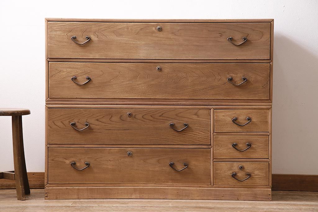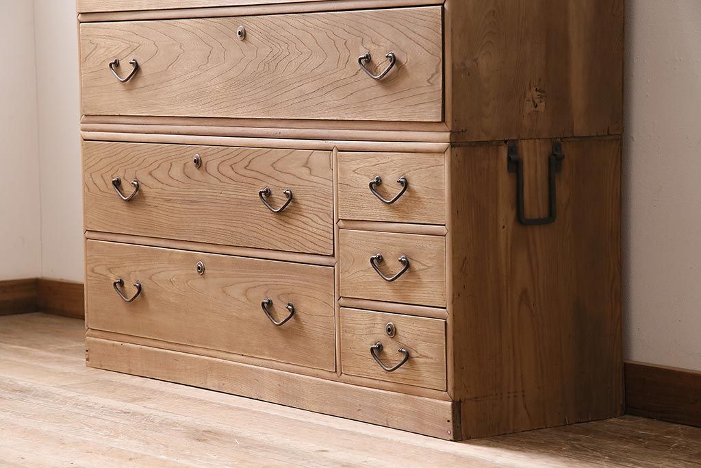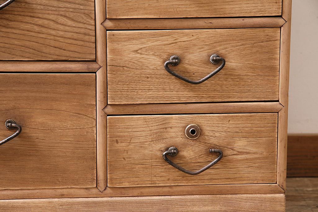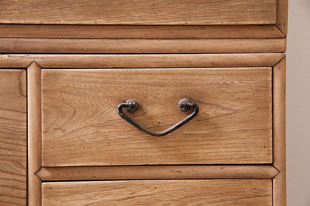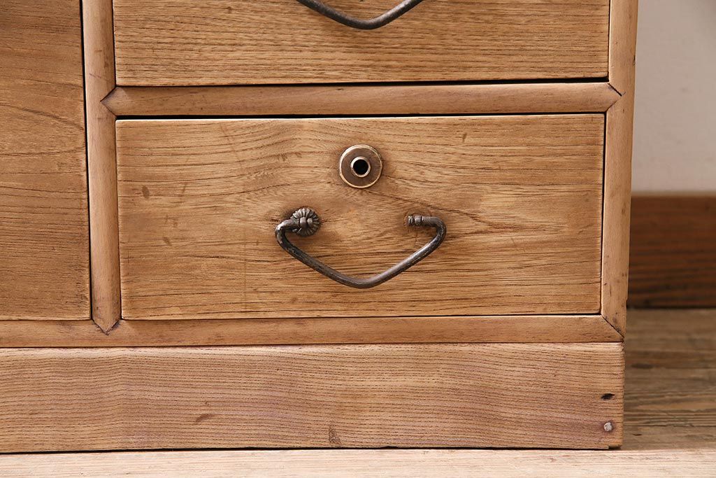 アンティーク家具 ストリップド(剥離) 栓材 細身の取っ手がモダンなチェスト(タンス、衣装箪笥)(R-045915)